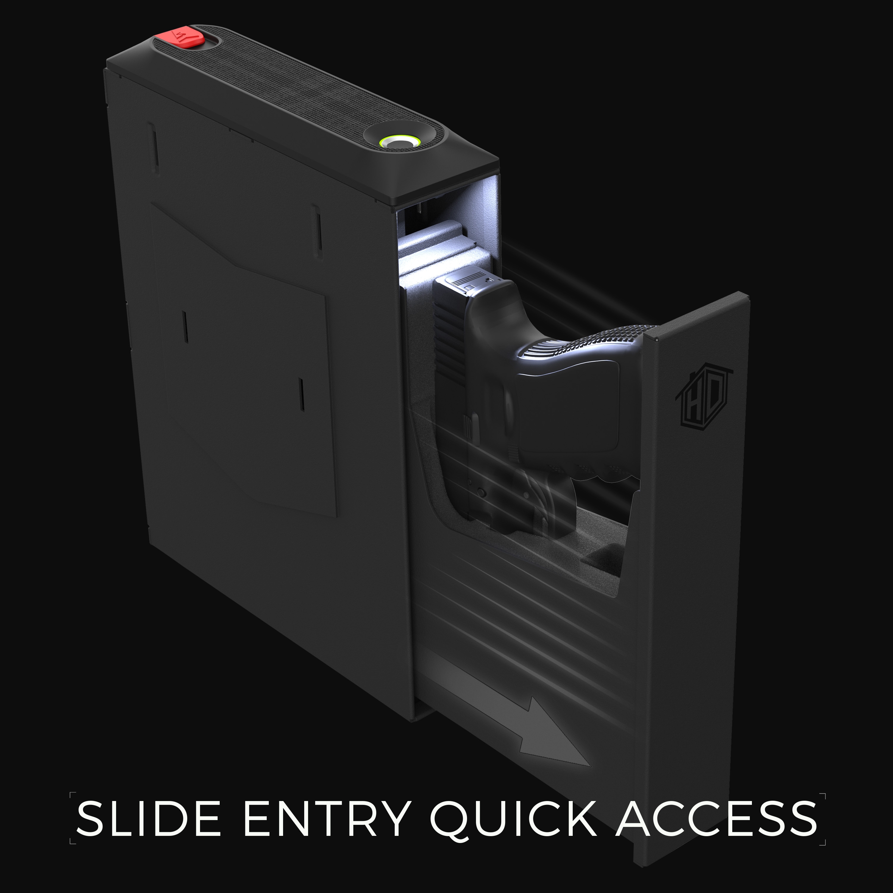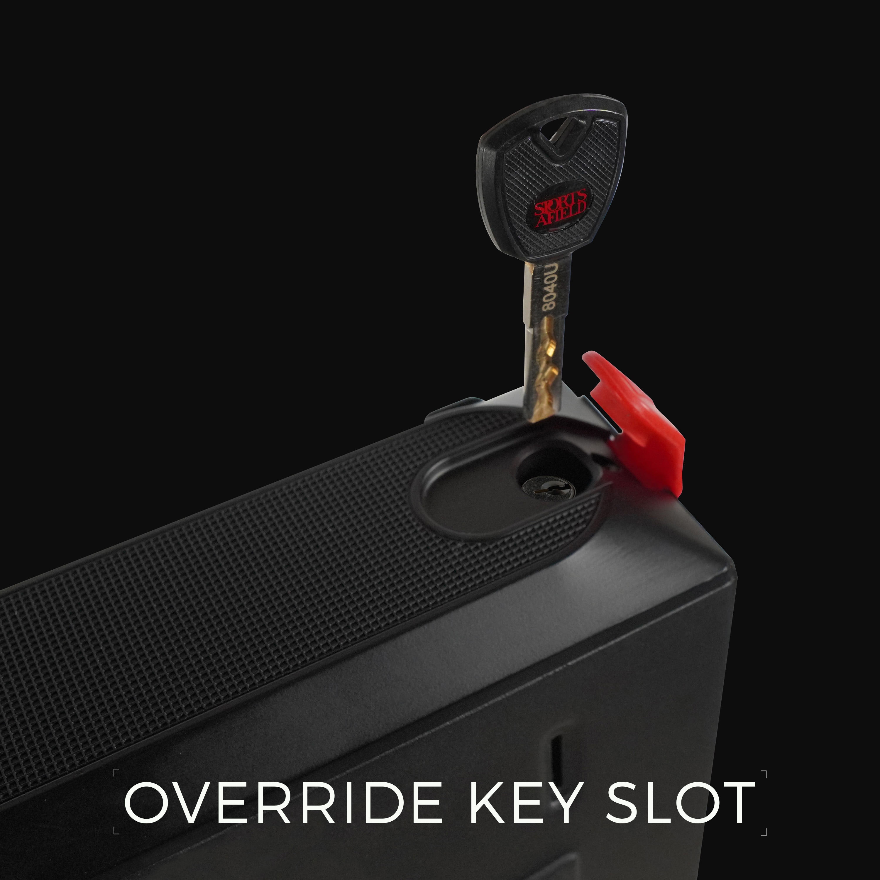 Keep your handgun securely stored and by your side with the Sports Afield Quick Access Handgun Vault. This vault uses your fingerprint as the passcode to your firearm. It quickly deploys your firearm in a smooth and rapid motion, in a ready-to-grip position. The vault can be mounted on the left or right-side of a desk, nightstand, or anywhere you see fit. The interior has soft foam padding and is brightly lit so you can see in low light situations. Mounting hardware and 2 manual override keys are included.