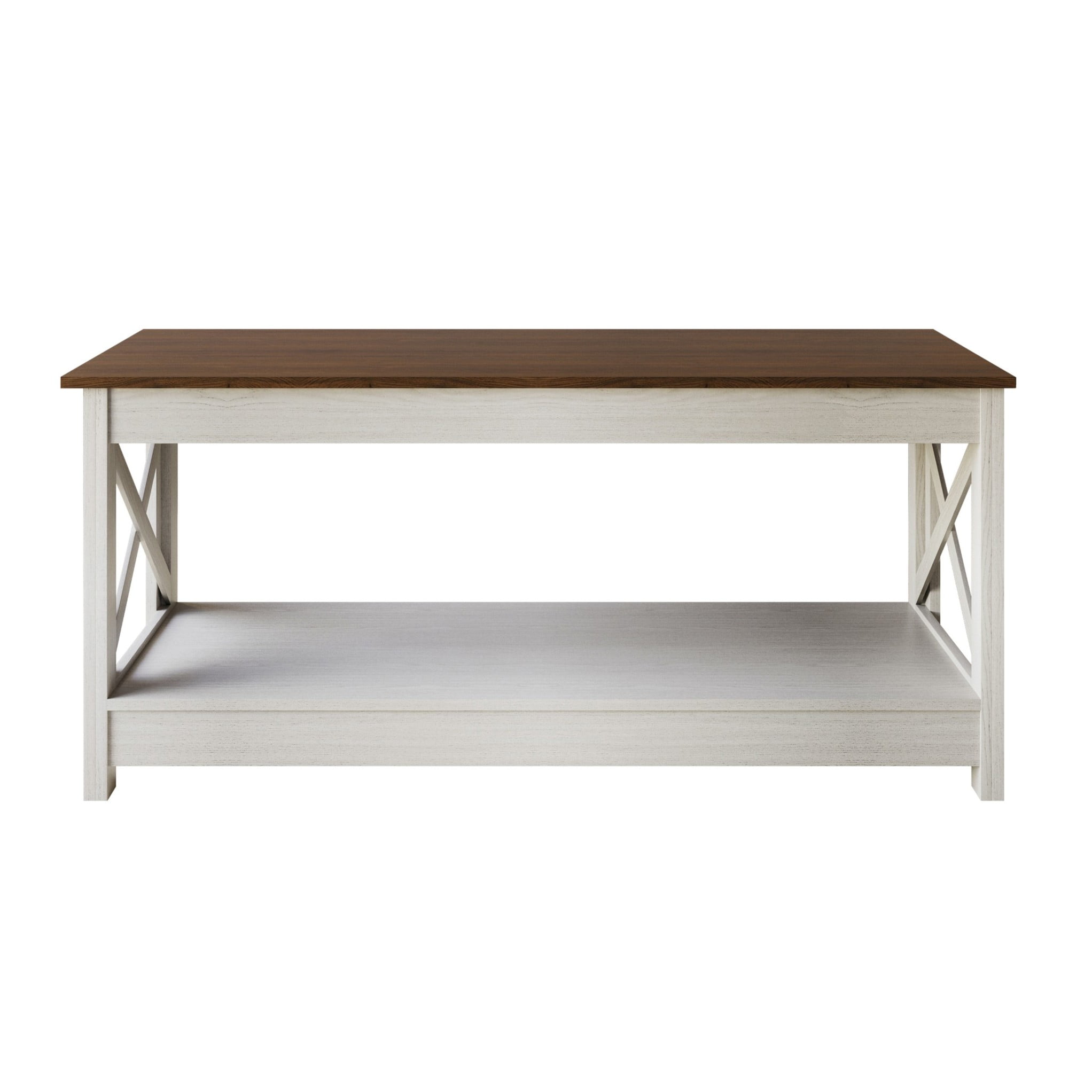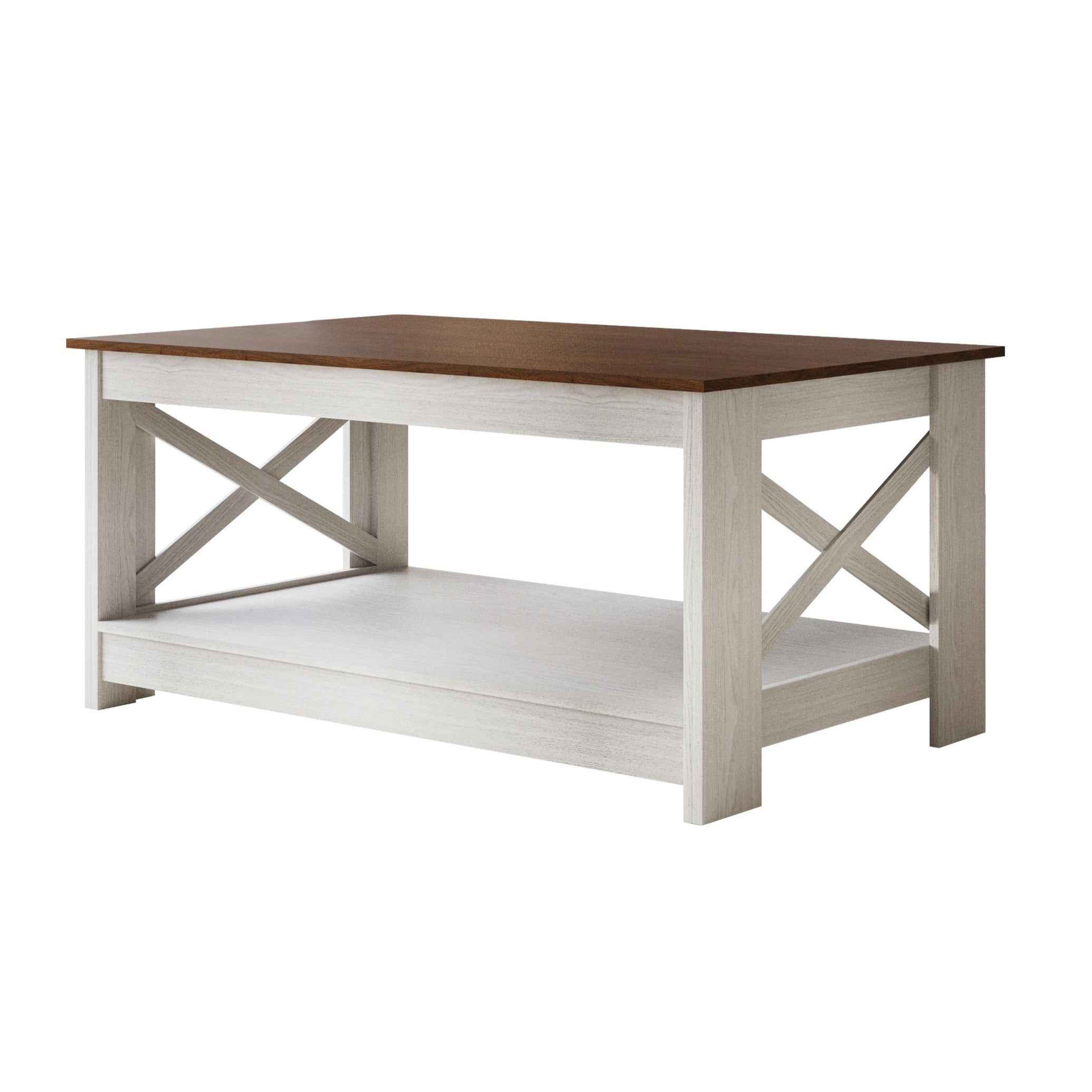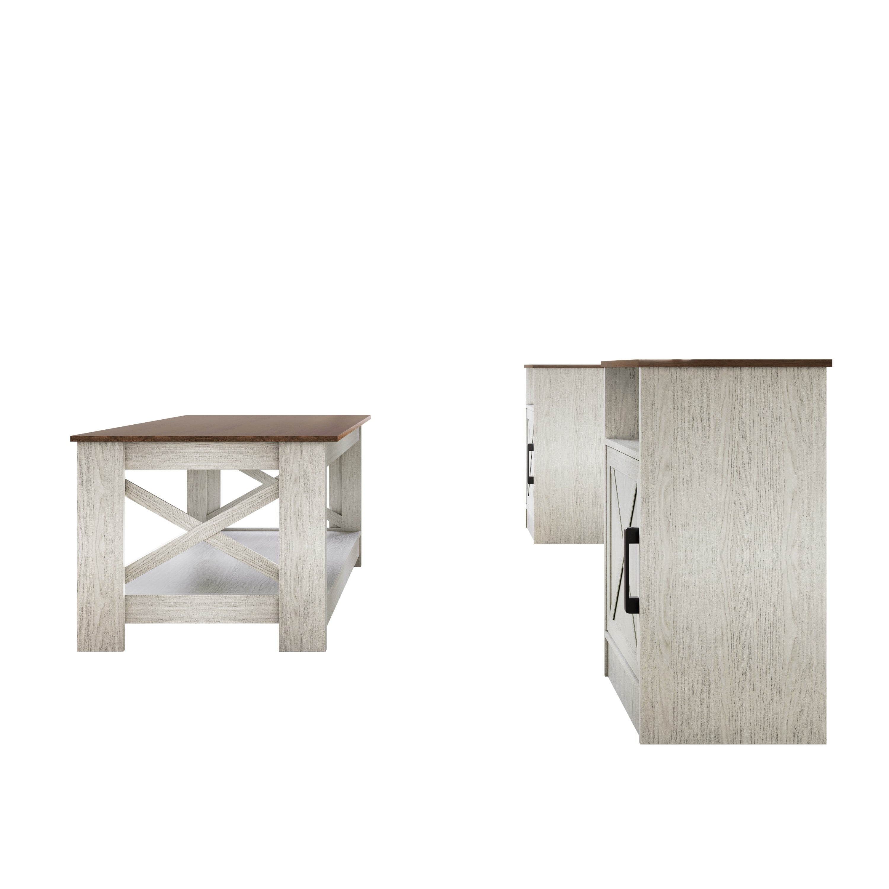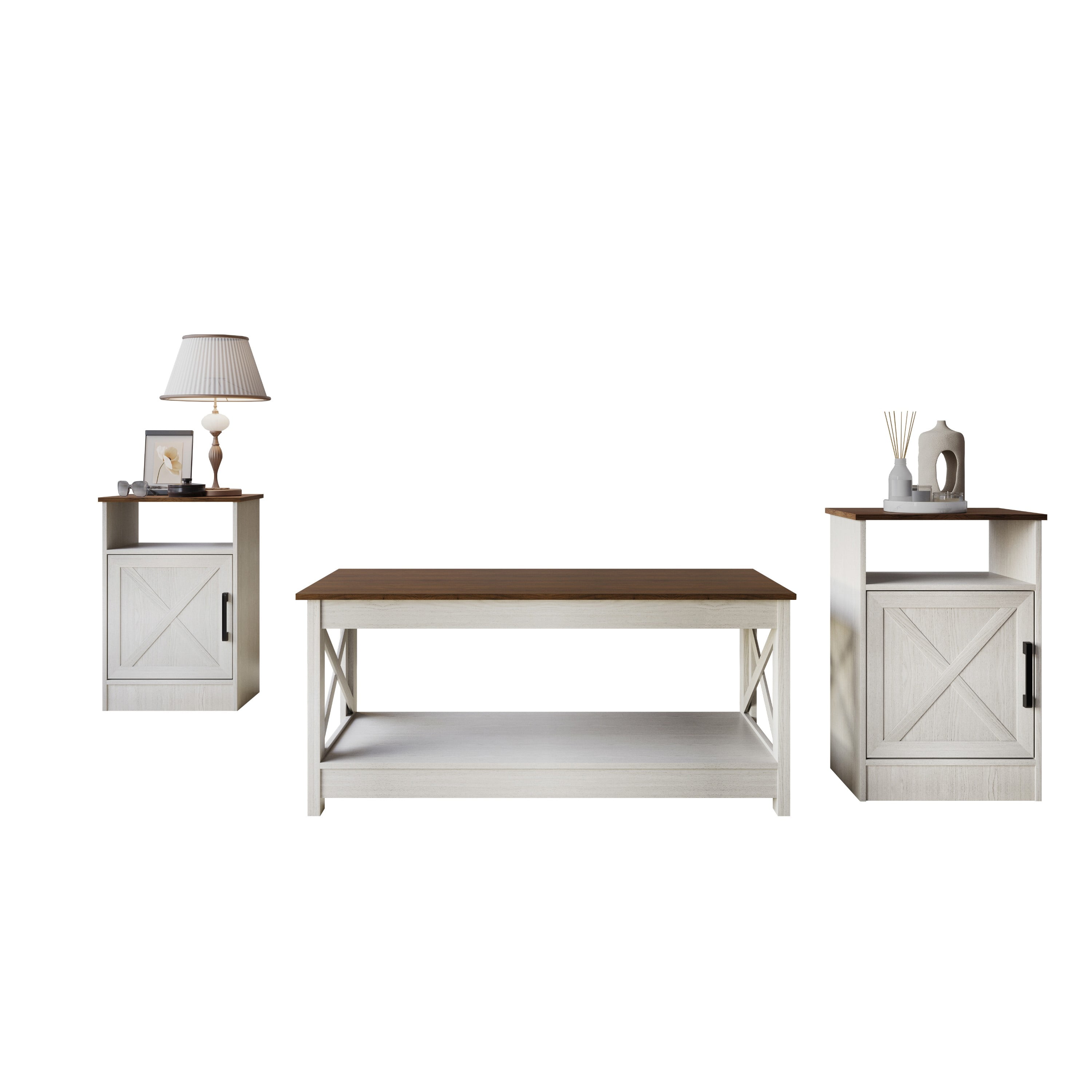 Bring warmth and style to your living room with this modern farmhouse coffee table set, blending rustic charm with functional design. The centerpiece coffee table is crafted with a sturdy wood frame and features decorative X-frame side panels that enhance both its structural support and visual appeal. Available in two color options—a classic full brown finish or a trendy mix of light gray and brown wood top—this table easily complements a variety of home décor styles. The set includes compact end tables, each measuring 15.7″ W x 11.8″ L x 23.8″ H, designed with a single cabinet, swing-open door, and wooden hinges for discreet storage. With its cozy, clean-lined design, this set creates a welcoming and practical addition to any living space.