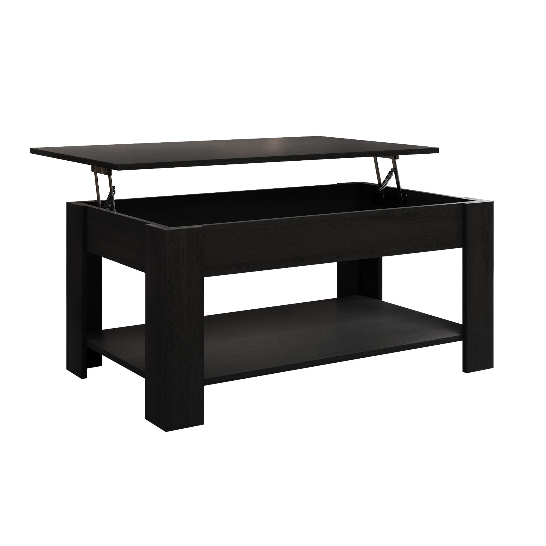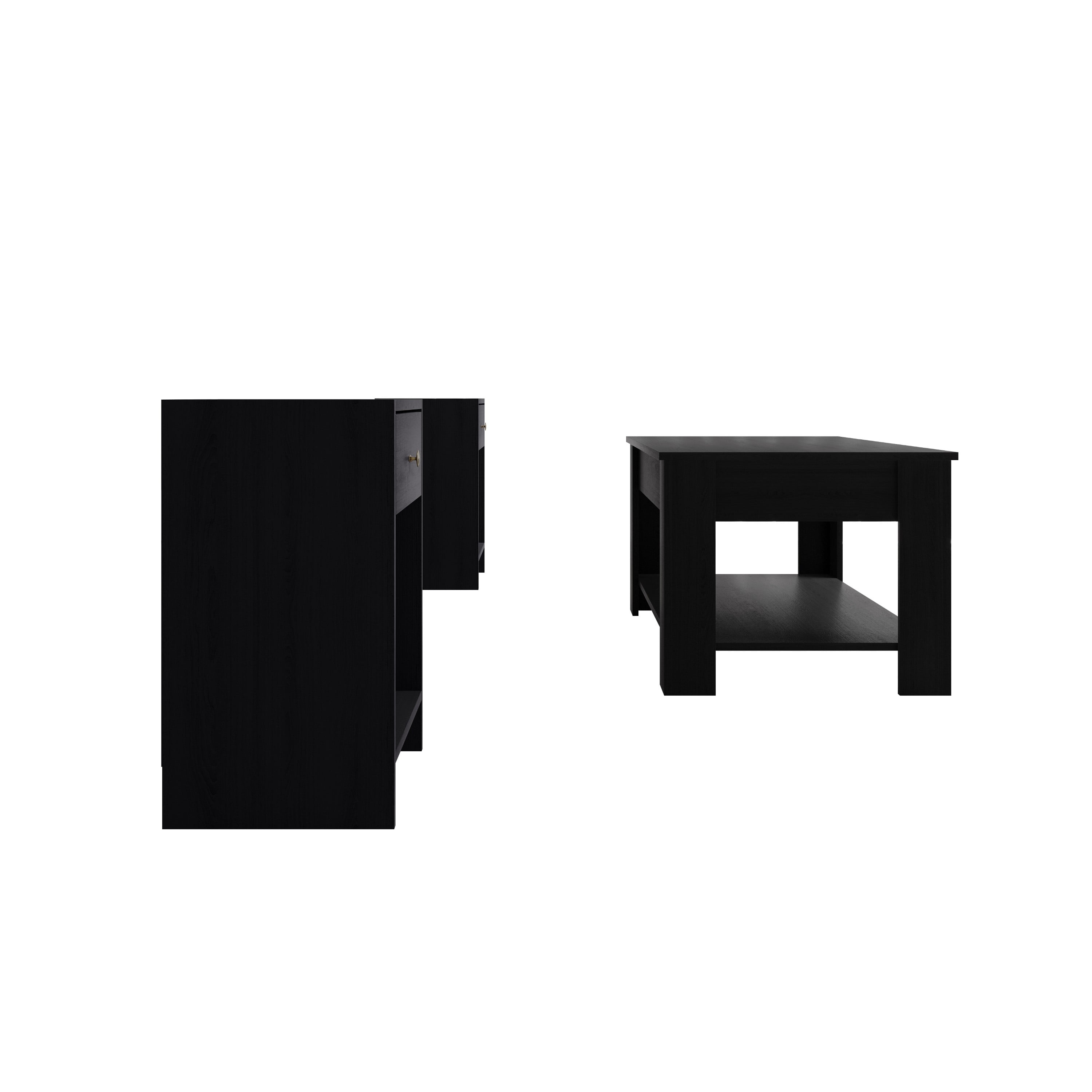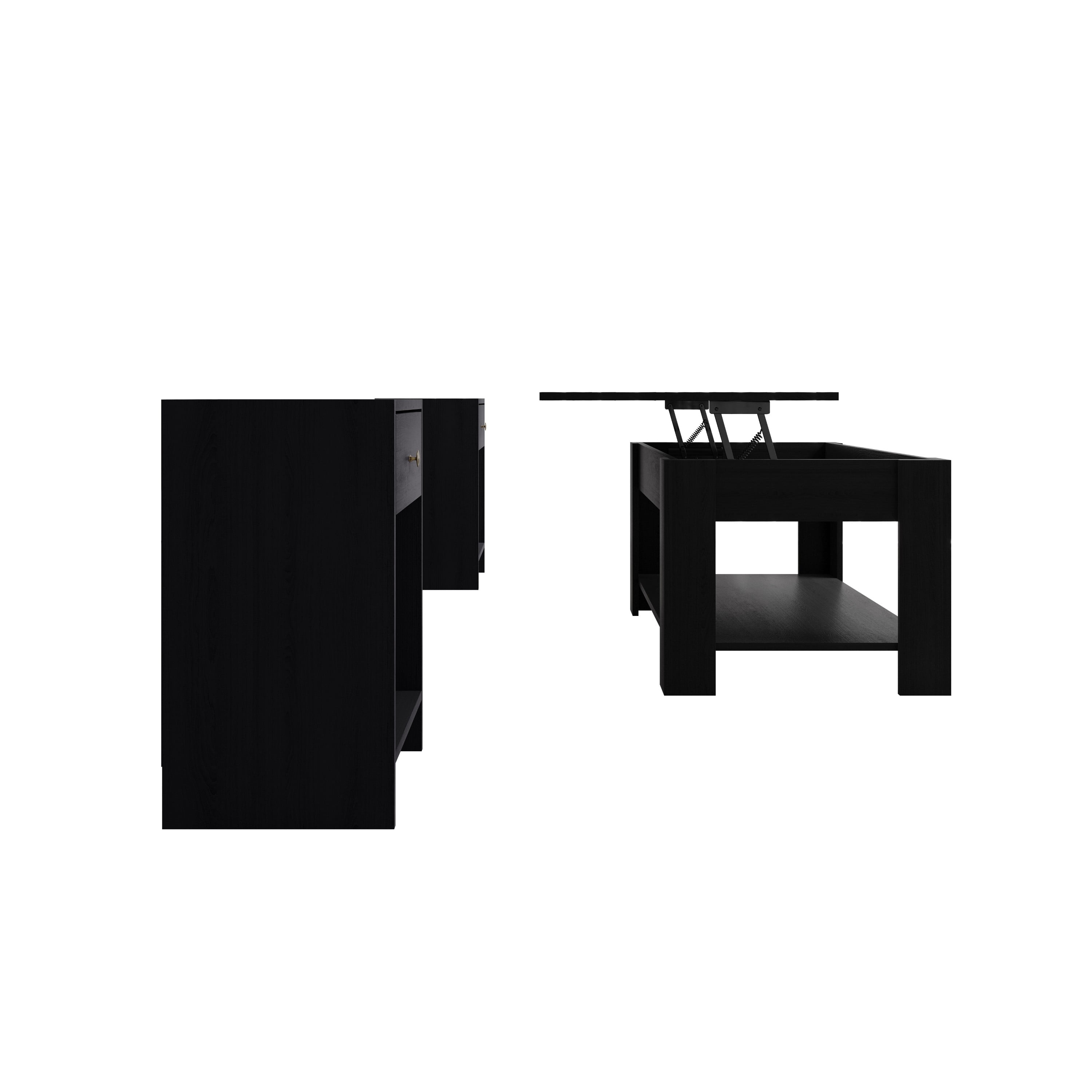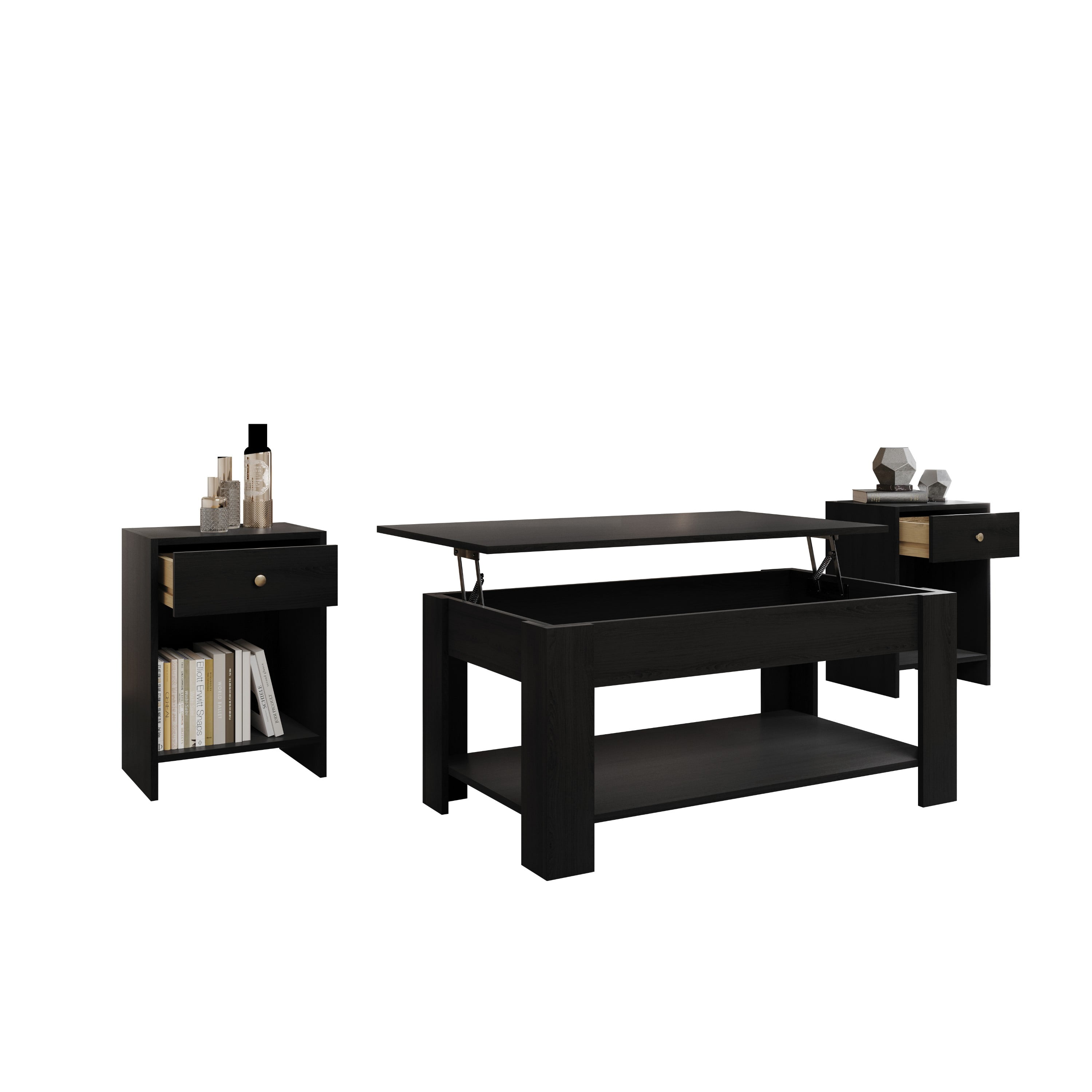 Home Design Magnolia 3-Piece Coffee Table Set with Lift-Up Rectangular Coffee Table and 2 End Tables, Hidden Storage and Modern Design for Living Room, Black