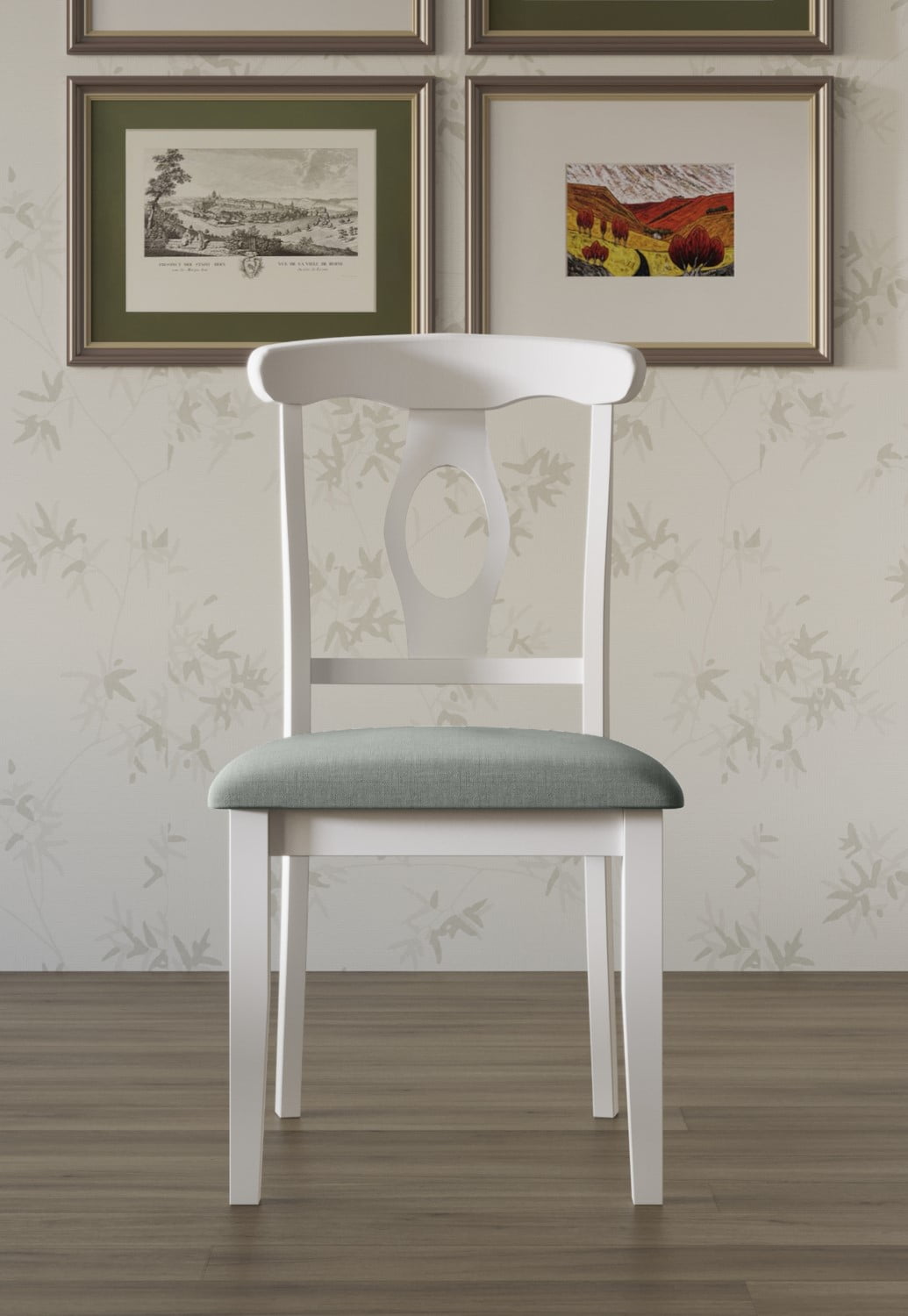 Home Design Olivia 5-Piece Dining Set, Round Table with 4 Cushioned Chairs, Mid-Century Modern Style, White, Gray/White