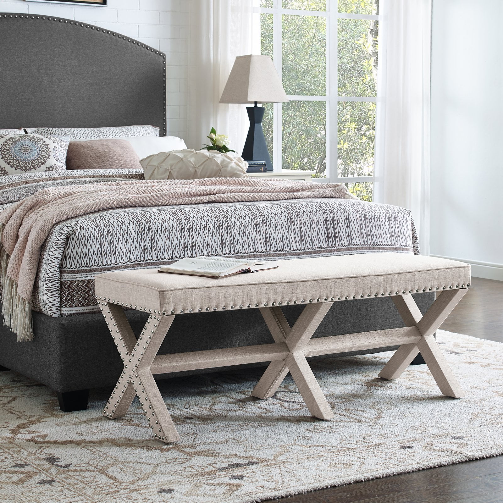 Home Fare Beige Upholstered ‘X’ Base Bed Bench