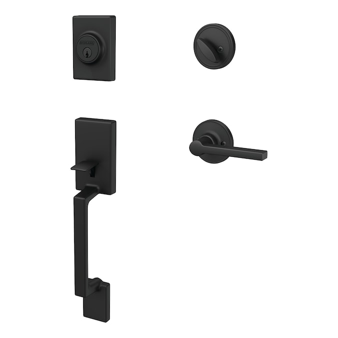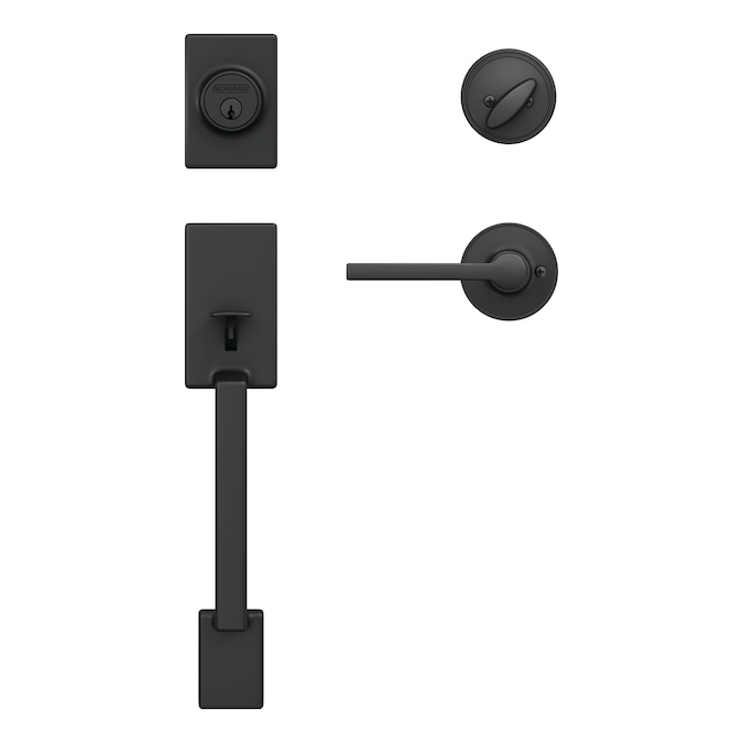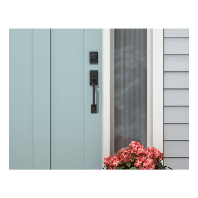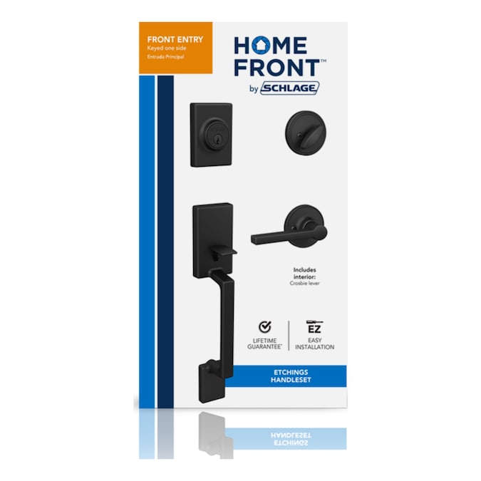 Home Front by Schlage Etchings-Crosbie Matte Black Single Deadbolt Keyed Entry Door Handleset with Crosbie Lever