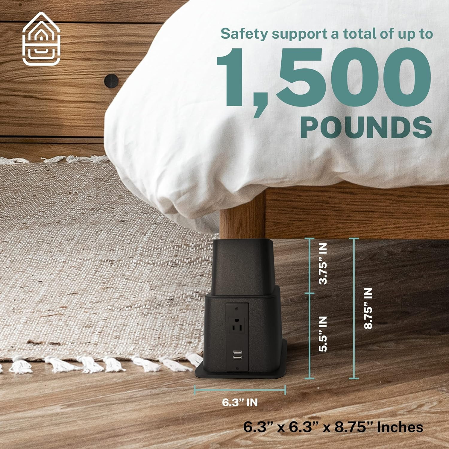 Compatible with All Bed sizes Including Twin, Queen, King and California King. Raise your Bed between 3 Adjustable Sizes 3″, 5″ and 8″ High Bed Riser Can support up to 1200 Pounds of weight without damaging Floors Bed Lifters or Casters fit securely into the recess cup built into the top of the Bed Risers and instantly creates extra under bed storage space. Bed Frame Risers are great for any home or apartment lifting furniture and beds to create additional organizing space. The Risers can even Elevate your tables so you can stand without bending your back