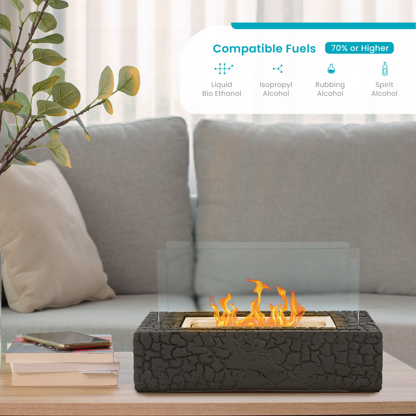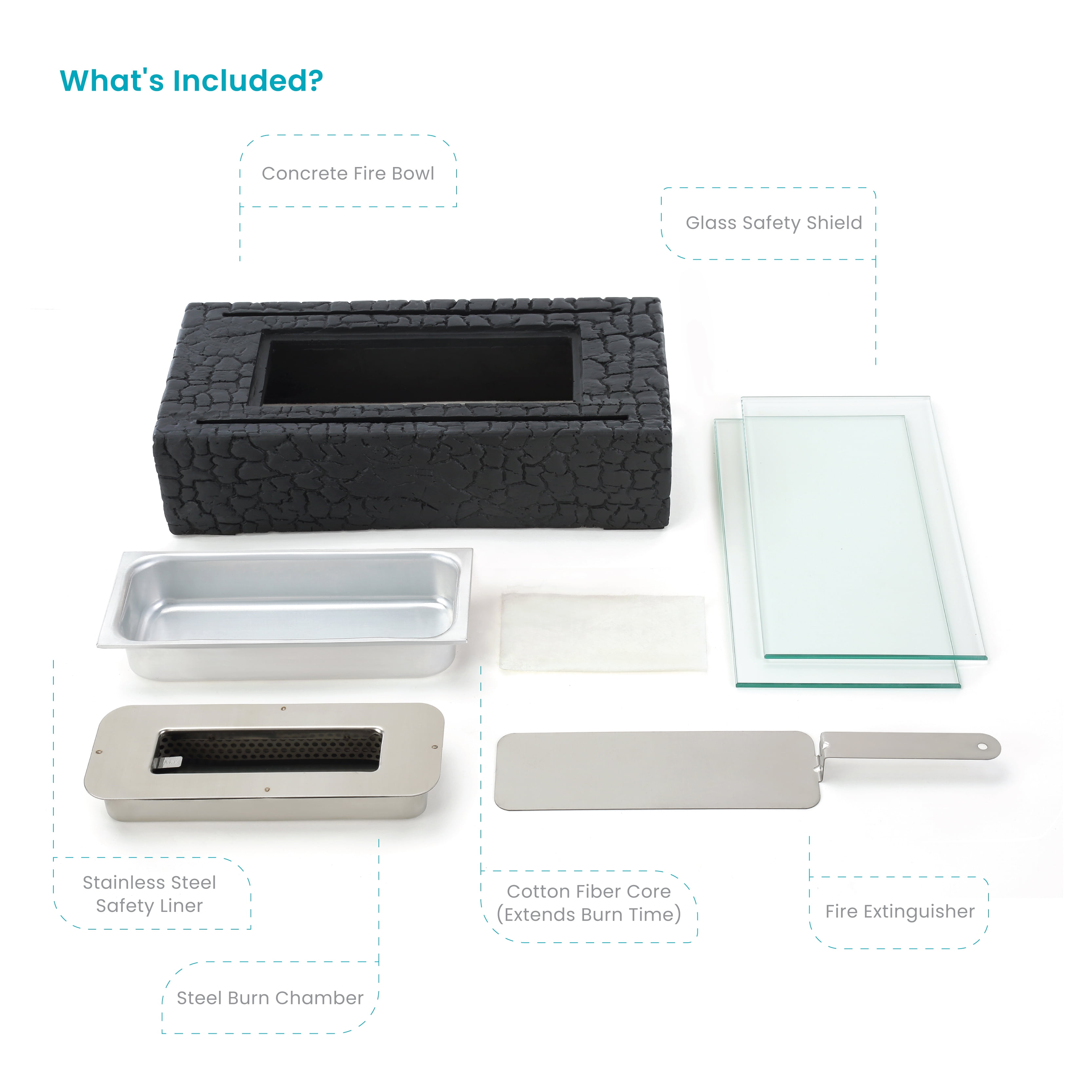 [INDOOR & OUTDOOR READY: SMOKE, SCENT & CARBON MONOXIDE FREE] – This stylish fire pit burns without emitting carbon monoxide, soot, smoke, or odors. Great as a main dining table centerpiece, living room side table décor piece, apartment balcony or a patio table focal point. [S’MORE TIME: SAFE TO COOK OVER] – Just like a full-sized fire, enjoy s’mores with all the fixings. Great for fondue. Constructed from high-quality micro cement indistinguishable from natural stone. [MULTI-FUEL COMPATIBLE, FUEL CAN OPENER INCLUDED] – Compatible with liquid Bio-Ethanol, Isopropyl, rubbing, and spirit alcohol. We recommend using only 71% concentration or greater liquid Isopropyl or Bio-Ethanol alcohol as fuel. [LONG RUN TIME] – Over 1-Hour runtime compared with 30–40-minute runtime for similar sized tabletop fire bowls. Get an even longer runtime when using the included optional wick sponge that prevents fuel evaporation and allows for more efficient fuel delivery. Burns clean without any dirty ashes to clean up once extinguished. Get the ambiance of a wood fire without the cleanup! [SAFETY FIRST: BACKUP LINER, GLASS SHIELD & EXTINGUISHER INCLUDED] – Includes an optional safety glass shield for an added layer of safety. Helps prevent children and pets from getting fingers and paws in harm’s way. Safety liner prevents fuel leakage from main chamber in the unlikely event of a fuel leak. Once the party’s over, extinguish the fire in seconds with the included extinguisher. [WHAT’S INCLUDED?] – Includes (1) Concrete Fire Bowl, (2) Glass Safety Shield, (1) Extinguisher, (1) Steel Burn Chamber, (1) Stainless Steel Safety Liner & (1) Ceramic Fiber Pad. [LIFETIME USA SUPPORT] – Whether you’re kickin’ it with a cold one on the patio after a long day, hosting a dinner party or relaxing by the pool; Home Zone Living support is standing by in Atlanta, Georgia to help keep your outdoor space pristine.