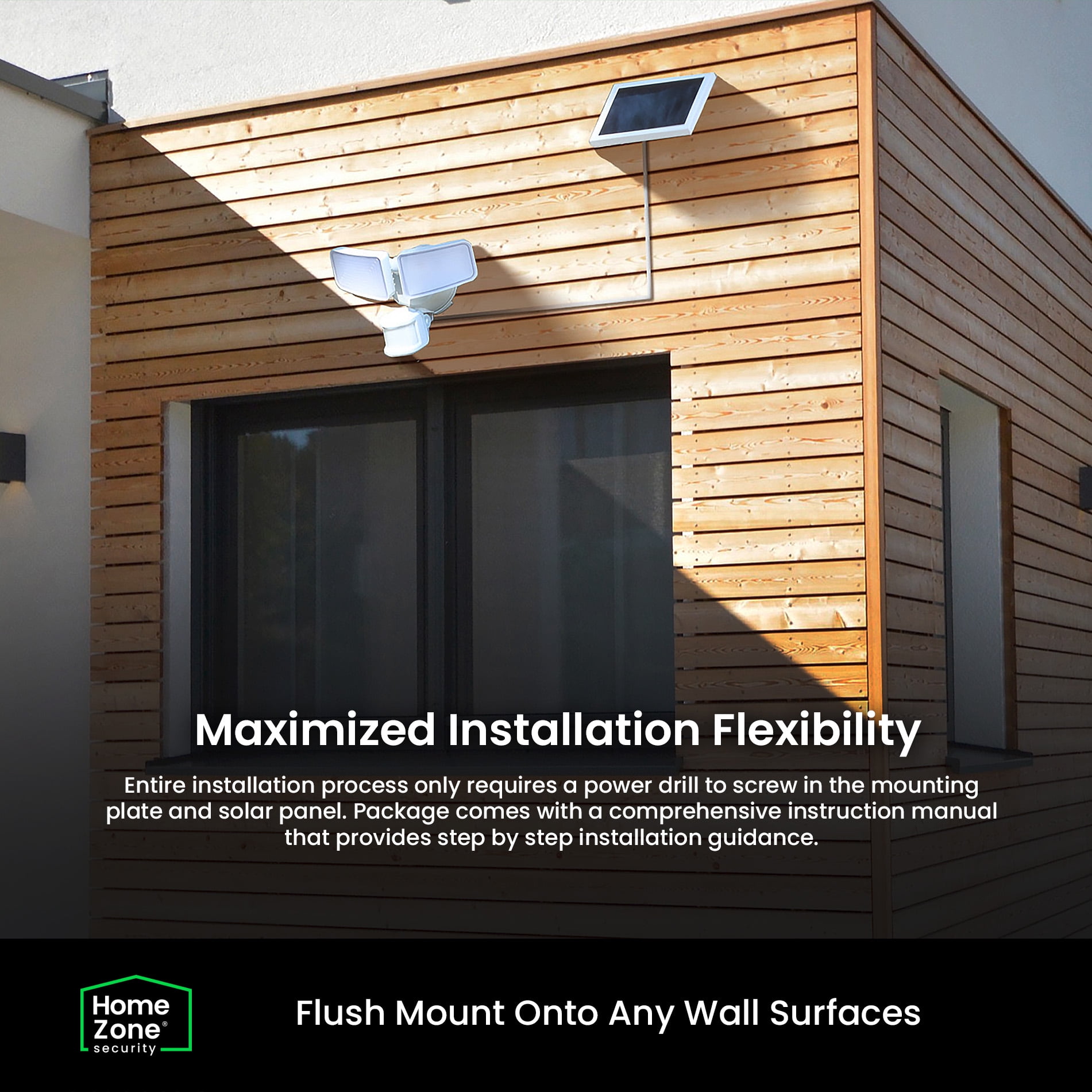 Home Zone Security Solar Flood Light w/ Mini Solar Panel – 1500 Lumens, 5000K, Linkable, White, 2-Pack