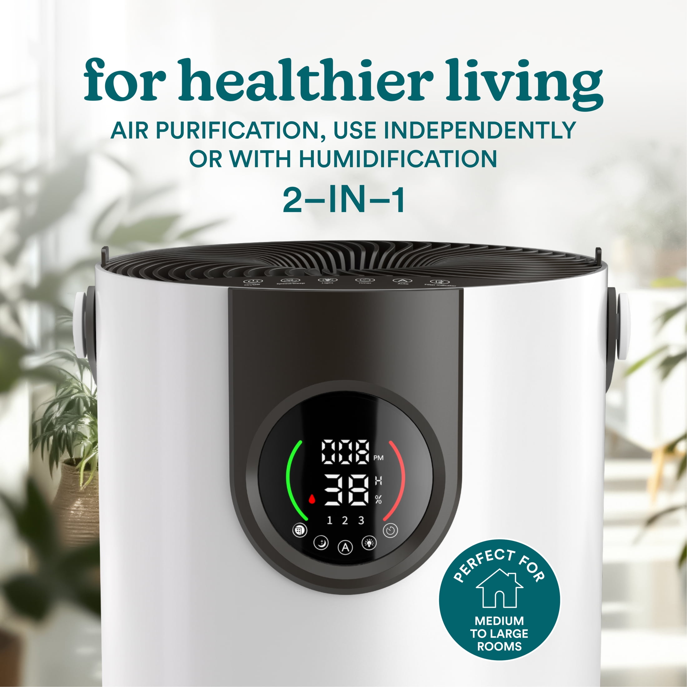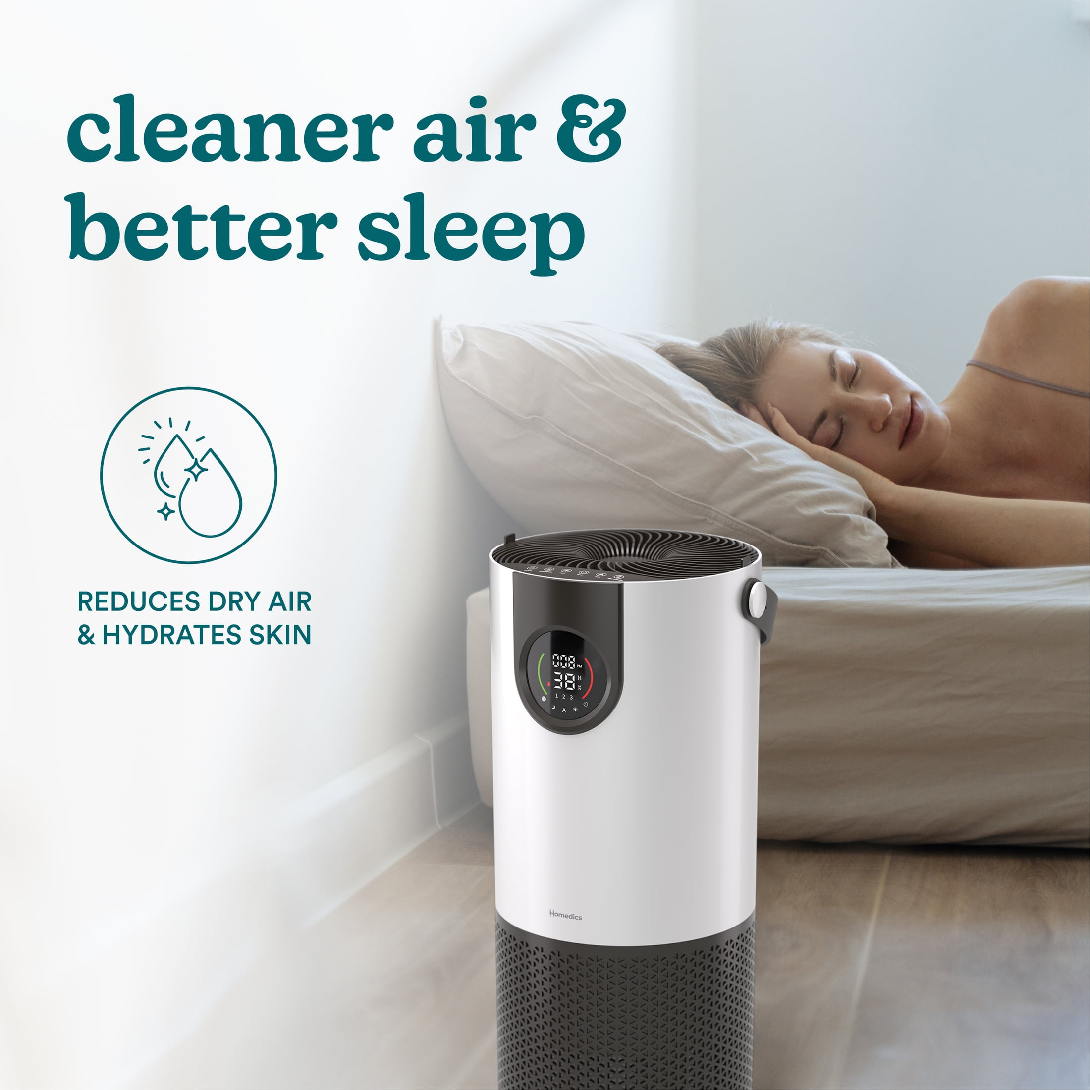 Homedics® 2-in-1 Air Purifier & Humidifier, with Digital Particle Sensor, Color-Coded Indoor Air quality