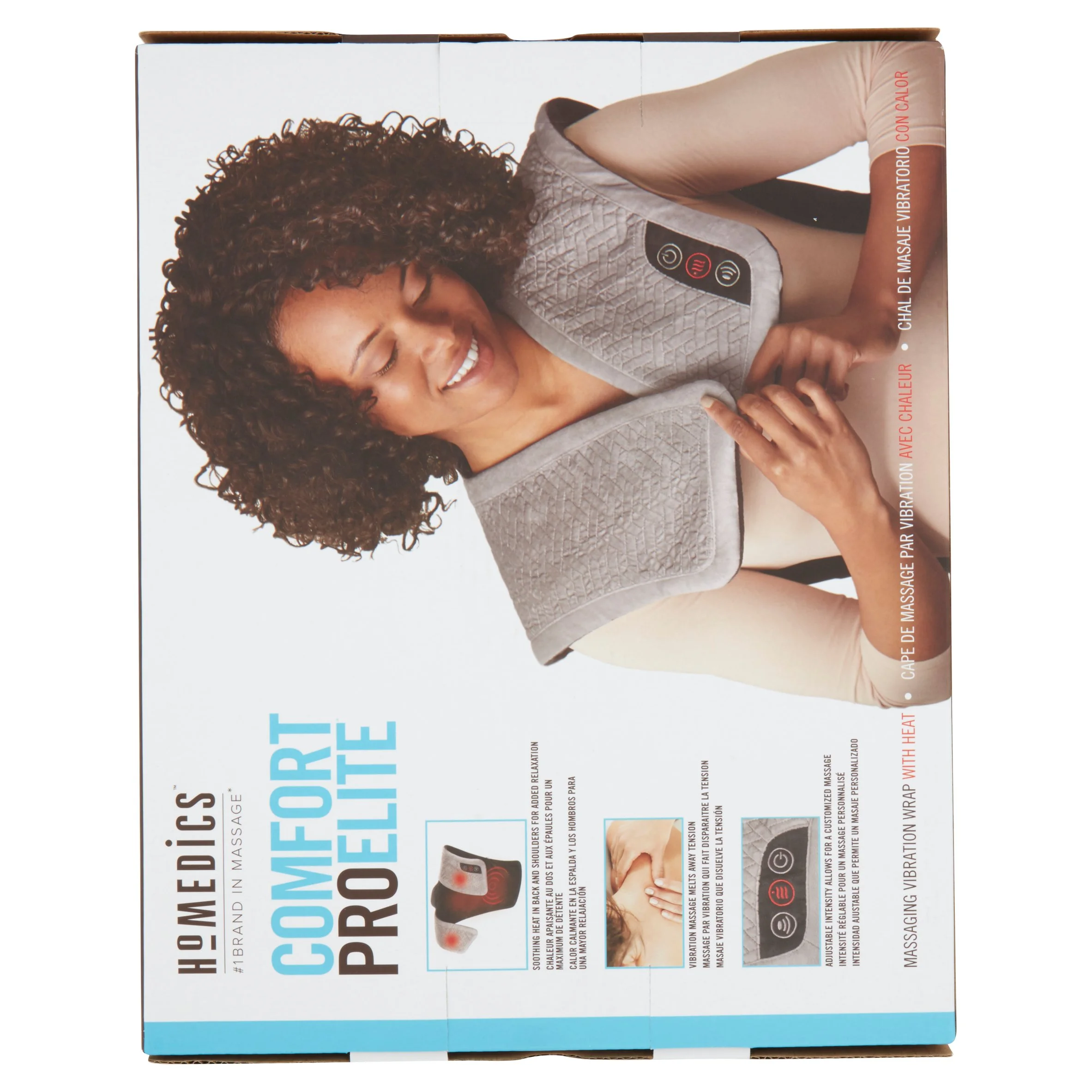 The HoMedics Comfort Pro Elite Massaging Vibration Wrap with Heat is a smart choice for anyone who wants to experience the positive effects of a massage without having to leave home. It helps to loosen tired muscles and assist you in feeling relaxed after a long day. Using this massage therapy equipment is intuitive and easy. Simply plug it in and set it to your preferred level of intensity. This massaging neck and shoulder heat wrap offers soothing heat in the neck and shoulder areas. Other specialized massage tools from HoMedics are also available. Each is sold separately.