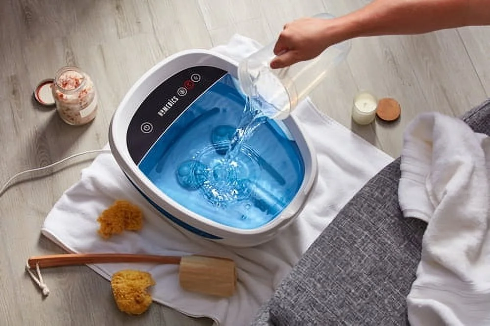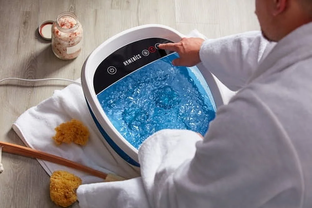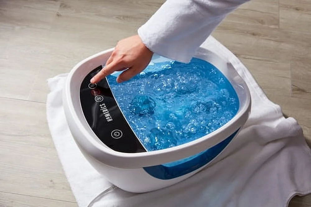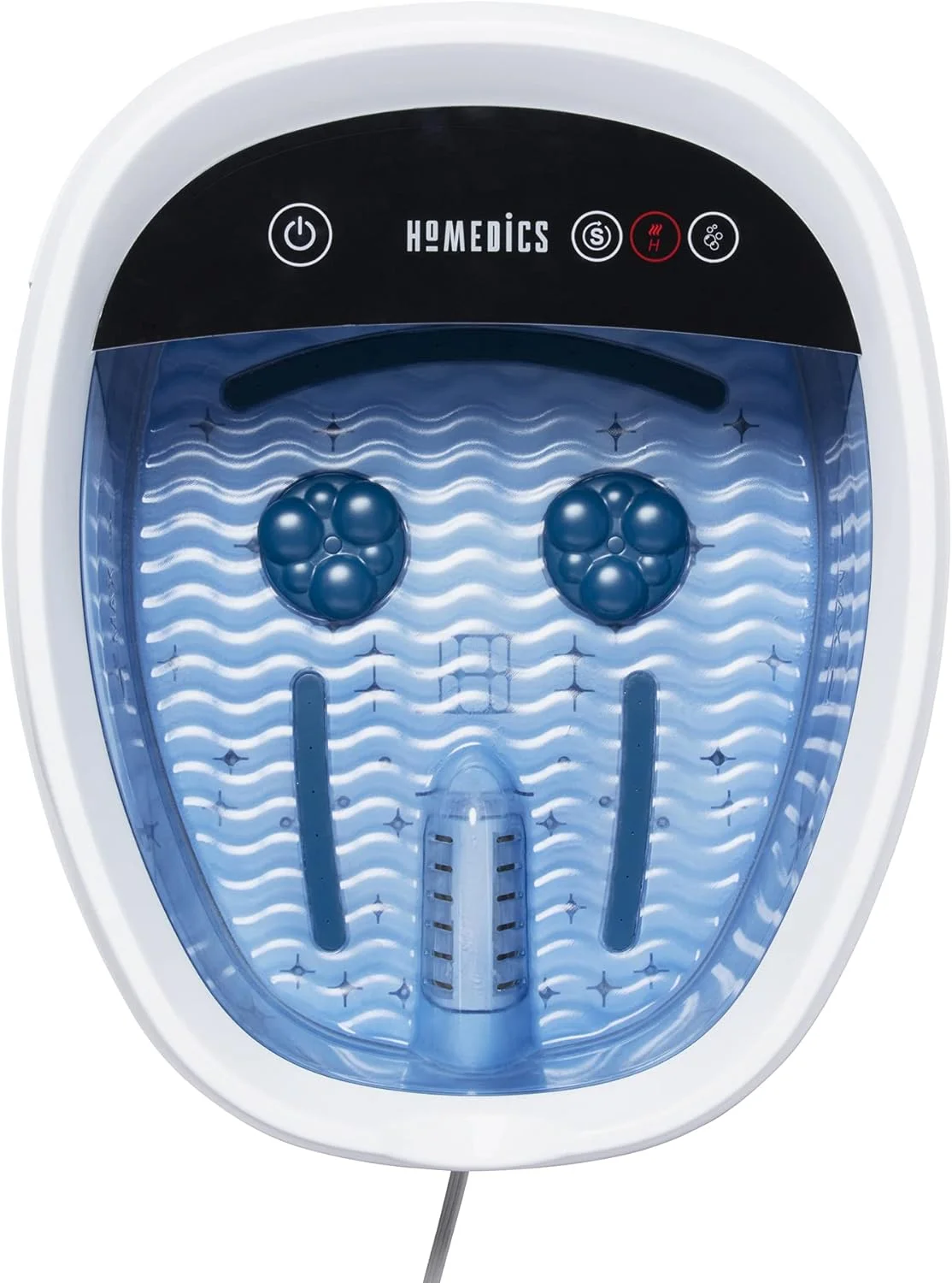 The HoMedics Shiatsu Footbath with Heat Boost offers sore, tired feet some much-needed heat relief after a long day. Encourages healing and stimulates blood flow for a quick recovery with the rippled massage floor and combined shiatsu and bubble massages. Avoid splashes and bending over thanks to the integrated splash guard and toe-touch controls. Just add Water — Or Don’t! the Shiatsu setting can be used with or without water for a deep – kneading, heated massage experience unlike any other. Our heat Boost technology keeps the water warm so you can melt the stress away for as long as you want.