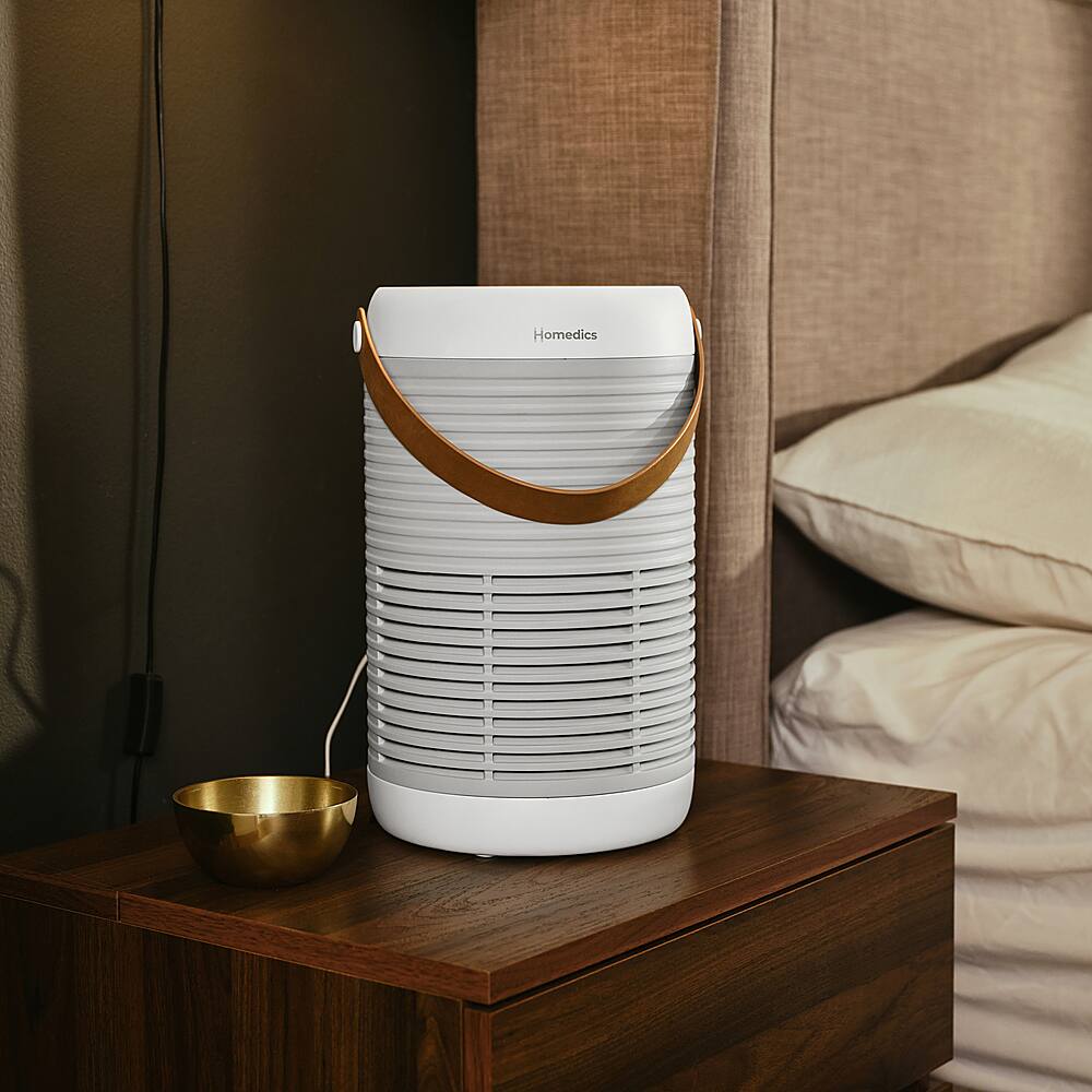 Improve the air quality in large rooms with the Homedics Smart Wi-Fi Enabled Air Purifier T100. 3-in-1 filtration with a built-in prefilter, an activated carbon filter that reduces odors and VOCs, and True HEPA filtration to remove up to 99.95% of airborne allergens. Choose from 3 speed options, quiet operation, and a convenient carry handle. Use the aroma slot with 3 pads to add a unique scent whenever you feel like it.