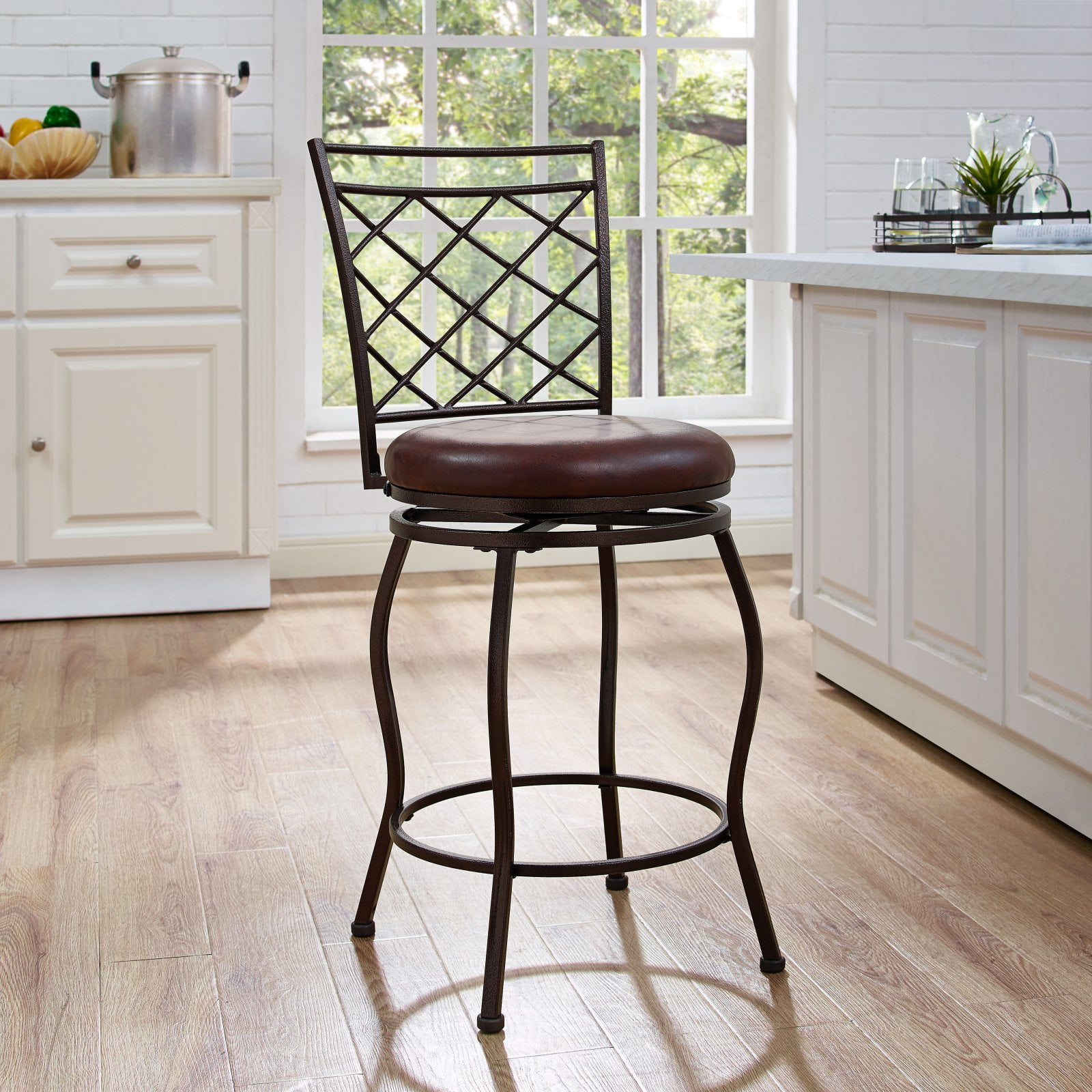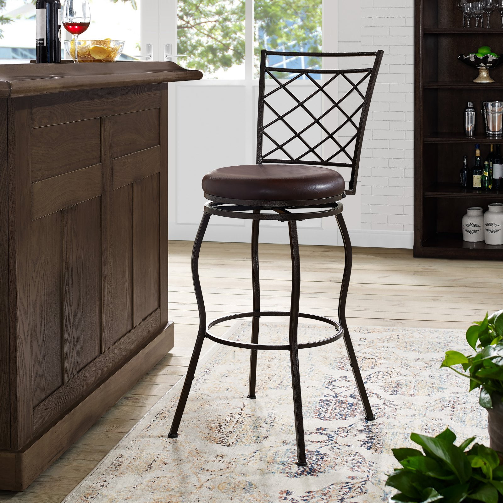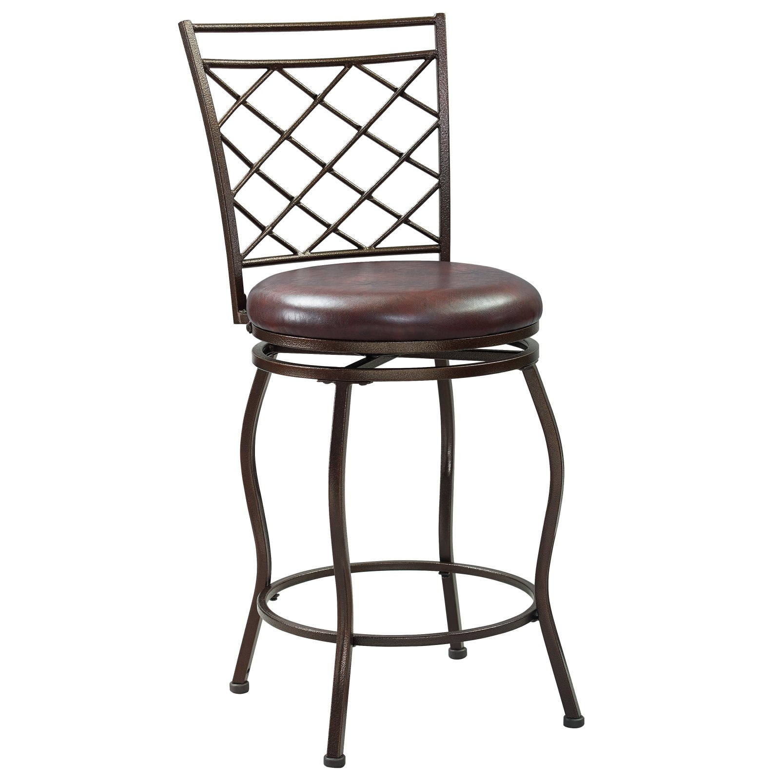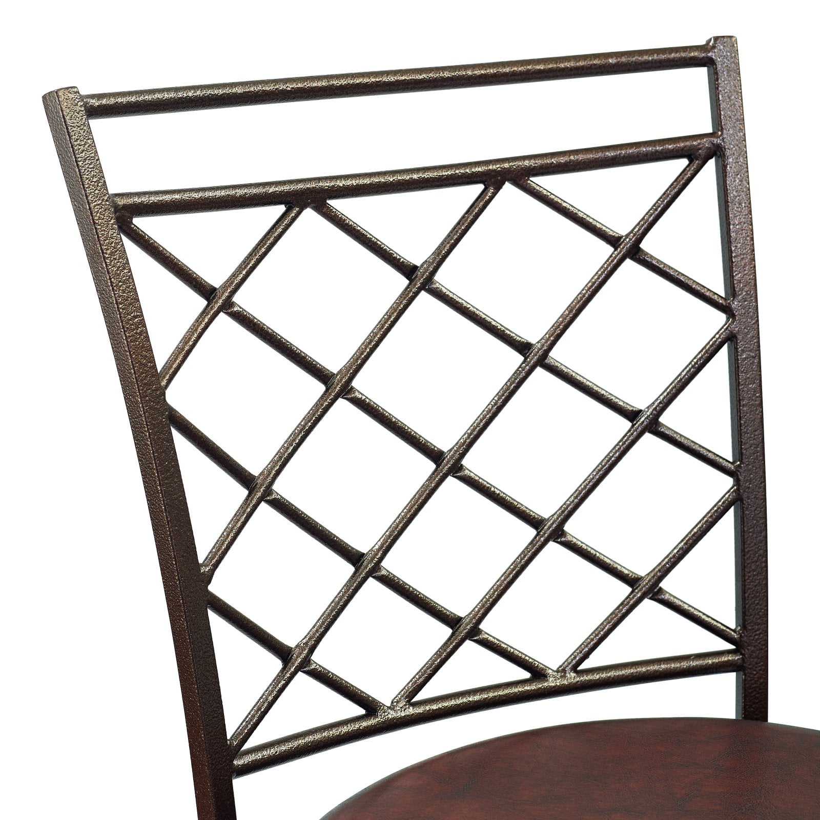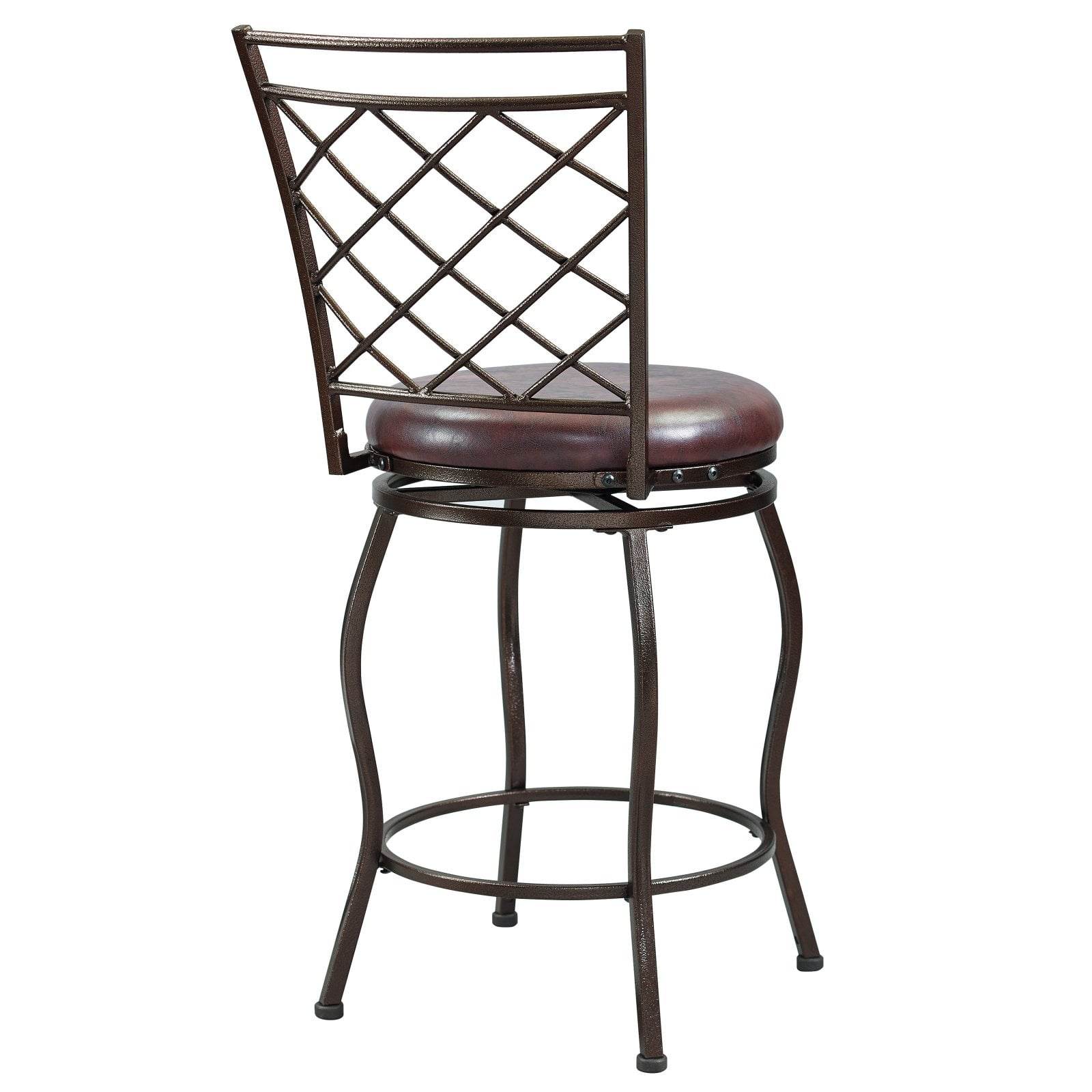 Add a touch of outdoor patio style to your indoor dining area or bar with the HomeFare Lattice Back Adjustable Swivel Barstool. Made with a powder-coated metal frame in an espresso finish, this bar stool features a trellis-like design on the chair back. You can use this stool for bar or counter seating. Simply use the adjustable 6 inch bolt-on legs to take the chair height from 24 to 30 inches. You don’t have to worry about scratching your floor thanks to special non-marking inserts on the feet, and there is a metal ring footrest. You and your friends can turn a full 360° thanks to the ball-bearing plate under the seat, so you’ll never miss part of the conversation when entertaining friends or family.