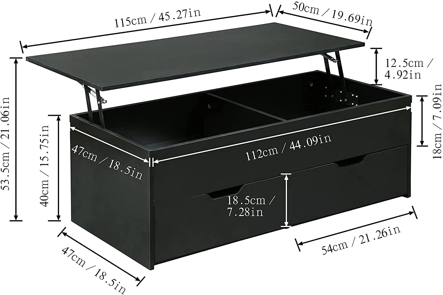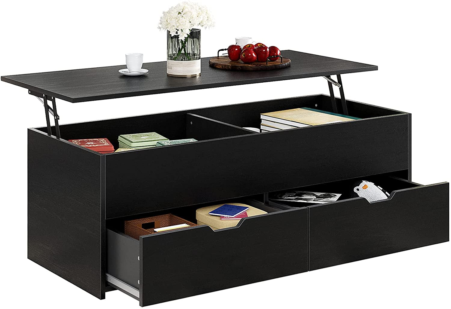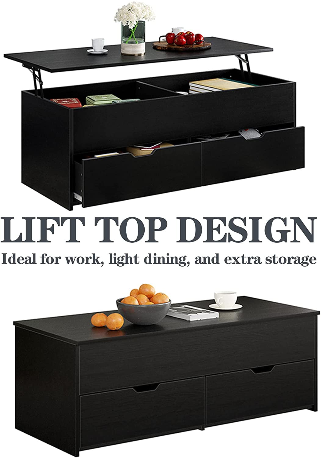 HOMEFORT 45.3″ Wood Lift Top Coffee Table with 2 Drawers and Hidden Compartment, Cocktail Table, Black