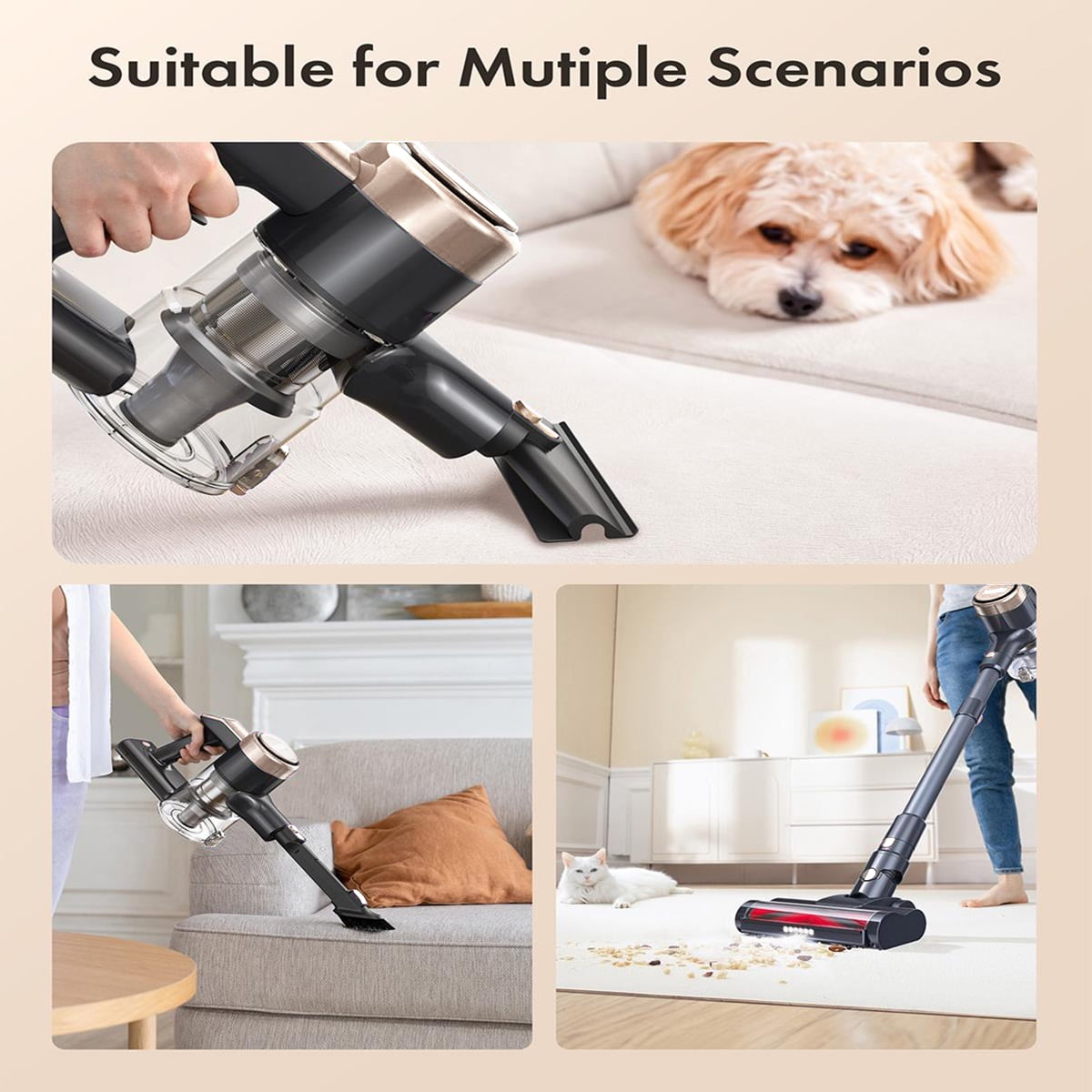 ????[23 Kpa Powerful Suction] Homeika vacuum cleaner is equipped with 300W power motor and has 3 suction:12Kpa/18Kpa/23Kpa, so you can tailor it for specific tasks. ????[Real-time Readouts Display] Get the information of cordless vacuum cleaner performance in real time. ✨[Long-lasting Runtime] The cordless vacuum cleaner can clean an entire house on a single charge, Energy-saving mode:48 minutes, Mid mode:25mins, Max mode:20mins. ✨[Detachable Battery] With the rechargeable 7*2200mAh battery pack, rather than having to charge frequently. ????[Lightweight] 3.17lb lightweight is ideal for cleaning curtains and high places,can meet different cleaning needs, even in one-hand use. ????[Advanced System Filters] With the 4 stage advanced filter system, it efficiently captures 99.99% of dust particles as small as 0.1um to avoid secondary pollution. ????[1.4L XL Dust Cup] Homeika stick vacuum cleaner is equipped with a 1.4L big dust cup and one-click emptying of the dustbin after cleaning, never need to touch the mess. ????[LED Floor Brush Head] The stick vacuum cleaner has LED lights on the floor brush head for cleaning under furniture and bed. ✅[De-tangle Design] The cleaner head with an de-tangle comb can lift all the long hair and dirt from carpets or hard floors. ????[All in 1 Wall Mount] All in 1 Wall Mount stores all accessories and vacuum cleaner in one, save more space. ❤️[Wonderful Gift for Friends & Family] The unique pink appearance makes the vacuum cleaner not only clean the floor and furniture, but also become an ornament for home decoration.