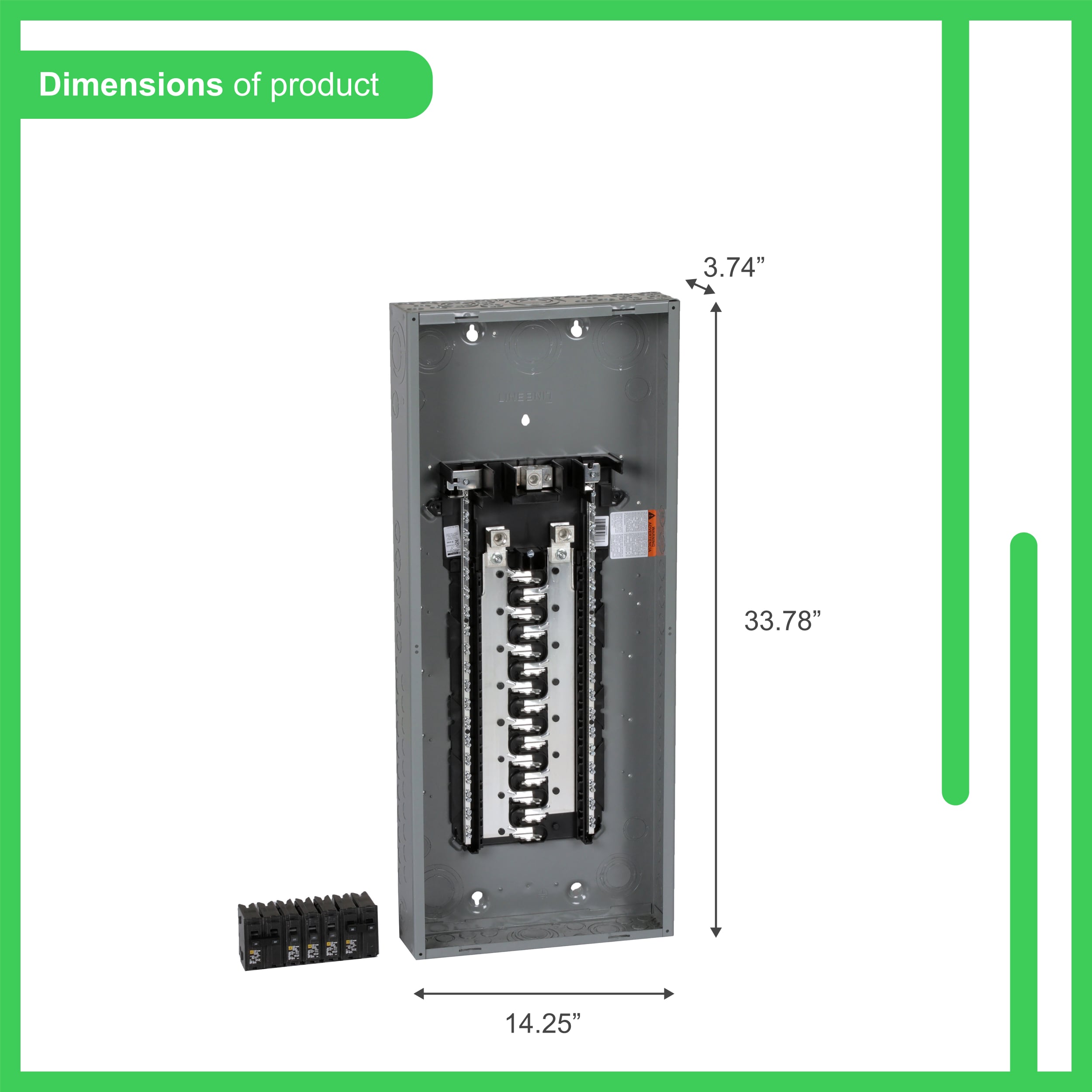 Value Pack Contents: Includes (3) HOM120 Homeline 20 Amp single-pole circuit breakers, (2) HOM230 Homeline 30 Amp double-pole circuit breakers and a combination flush/surface cover
