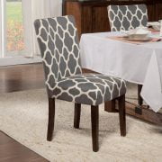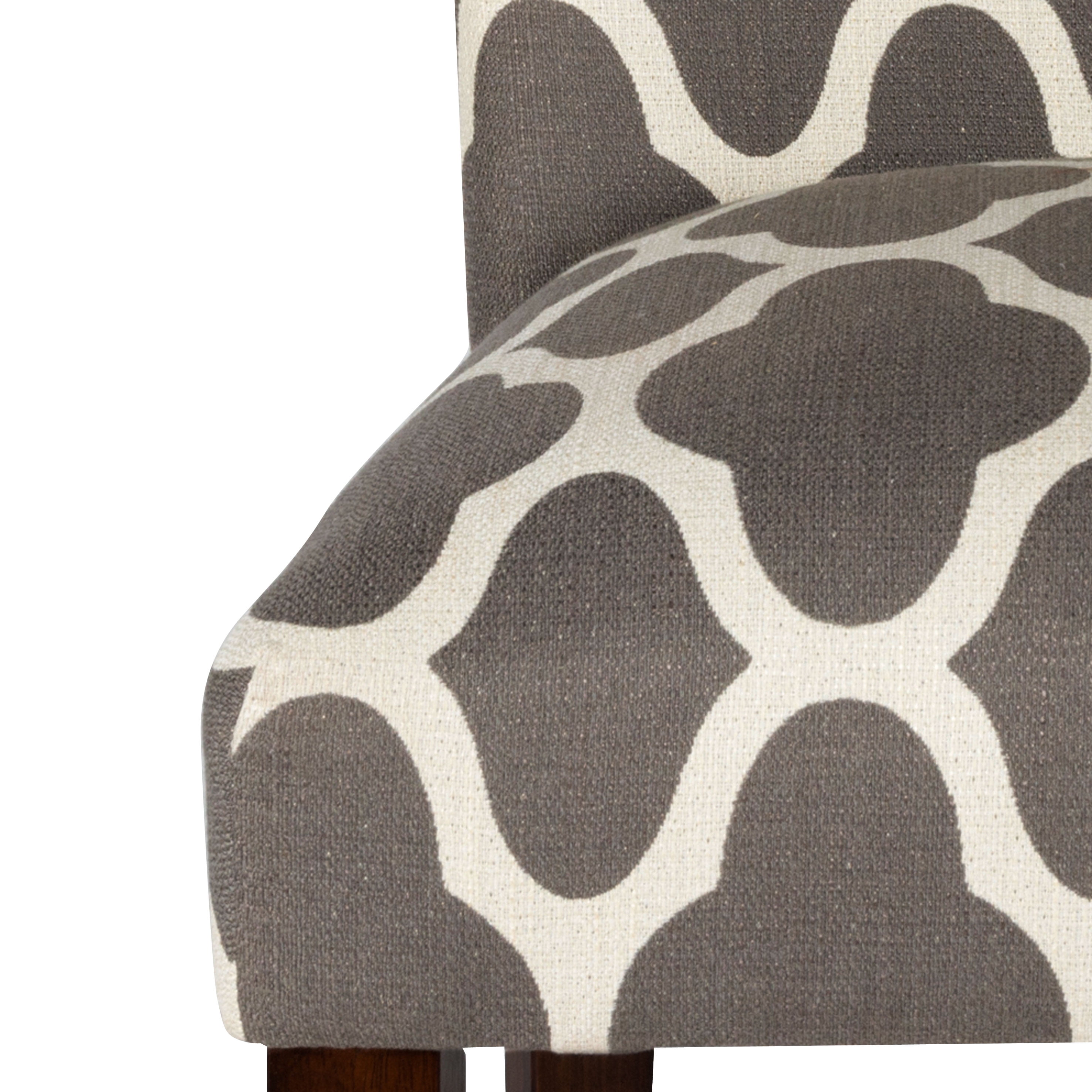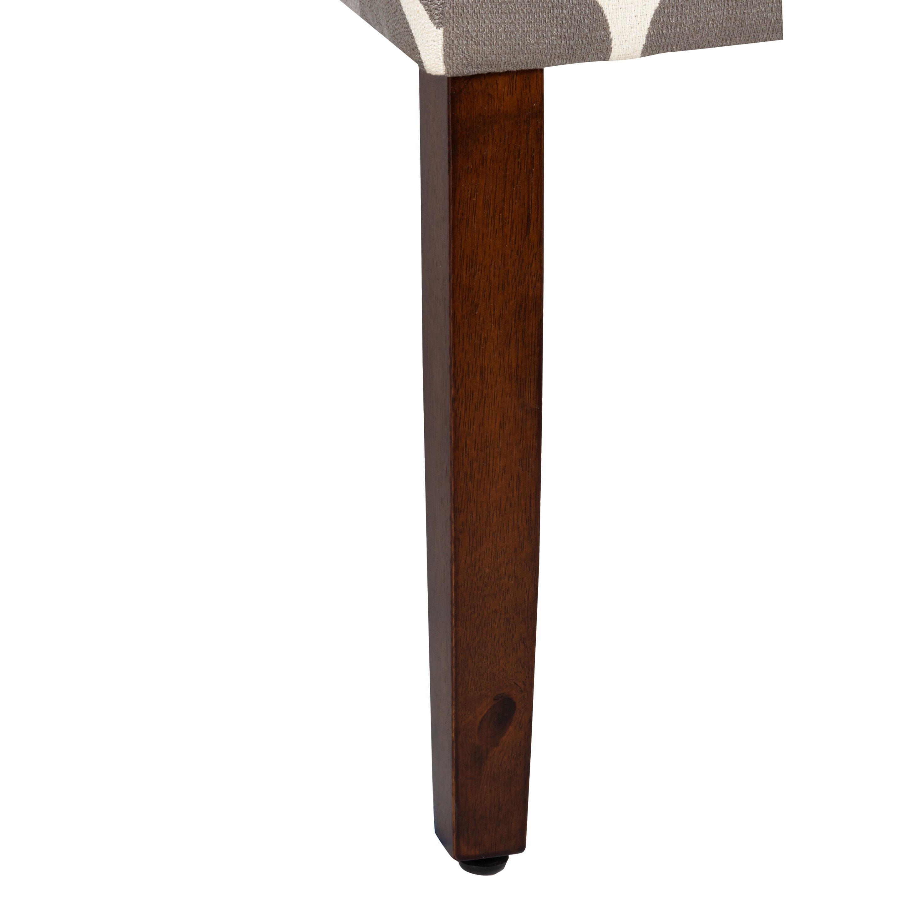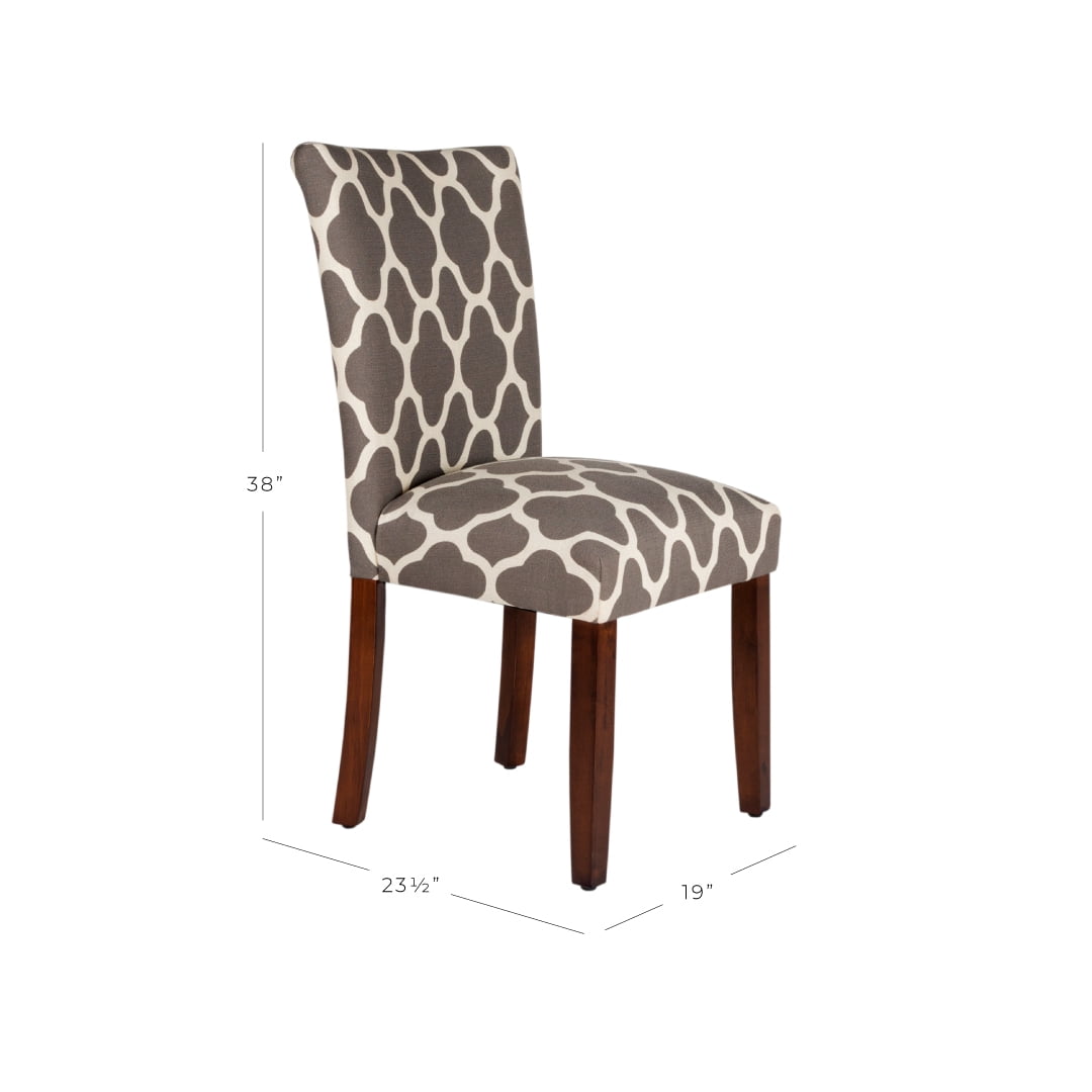 20.5 Inch Dining Chair Seat Height Medium Firm Cushion for Comfort and Durability Dark Gray and Cream Geometric Pattern Wood Legs with a Dark Walnut Finish Sold as a Set of 2 Dimensions: 38 inches high x 19 inches wide x 23.5 inches deep Seat Dimension: 19″W x 17.5″D Seat back height: 17.5″ Seat back width: 18″