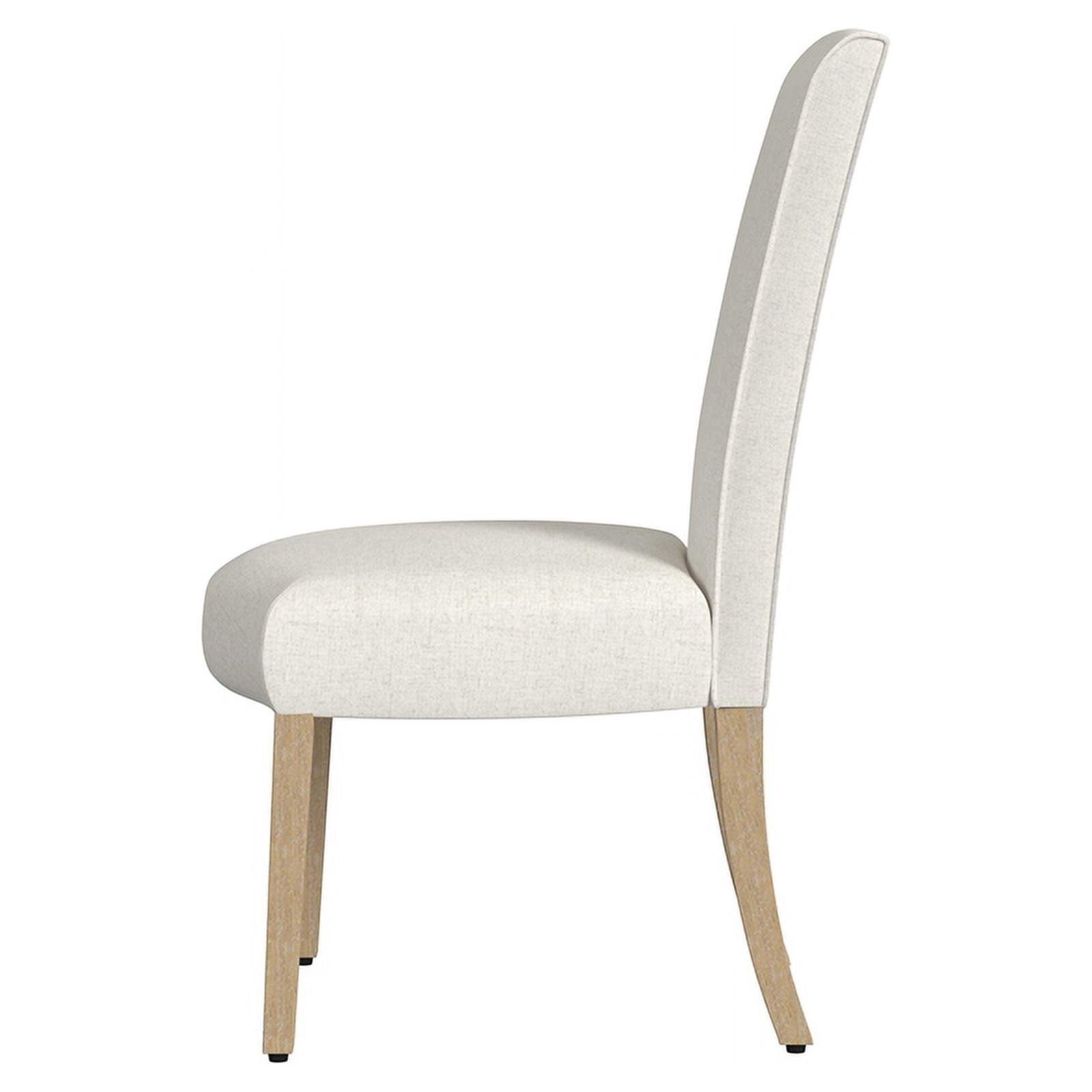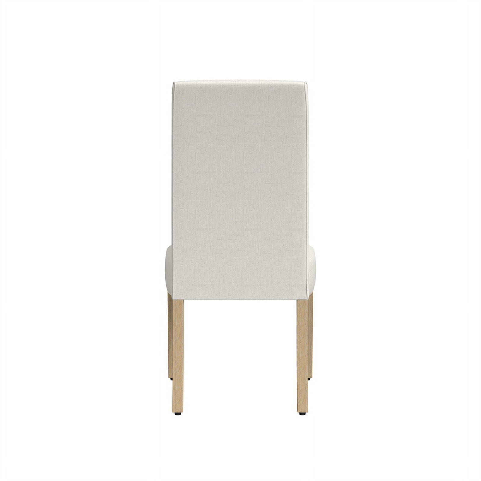19.7 inch seat height Medium firm cushion for comfort and durability Cream textured woven fabric Wood legs in a white washed finish Sold as a set of 2 Dimensions: 19″wx24.5″dx38″h Material: wood and polyester Capacity: supports up to 250 pounds Care and cleaning: spot clean only Weight: 17.6 pounds