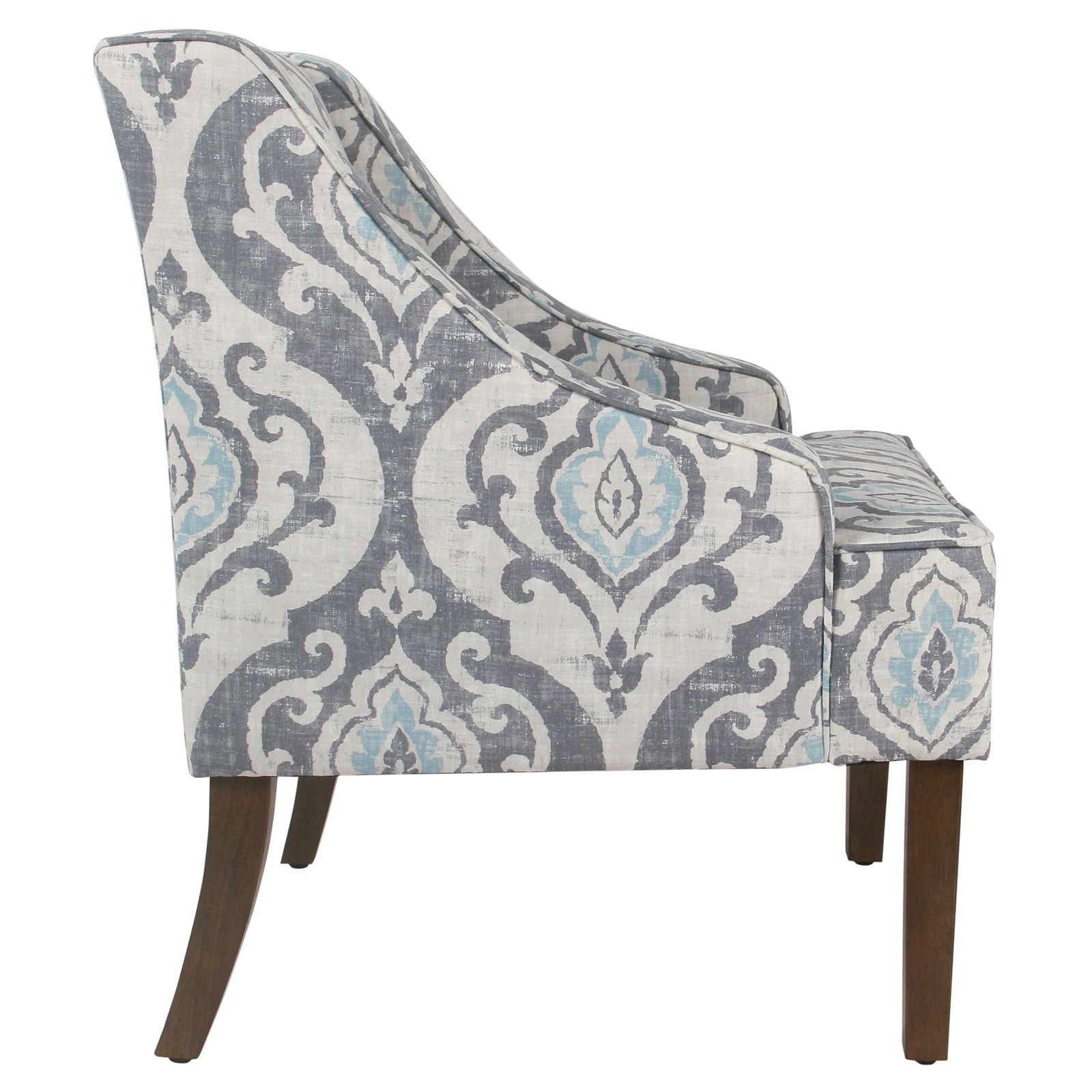 We paired our best-selling HomePop Classic Swoop Accent Chair with our popular Suri slate blue patterned fabric to create the perfect seating solution for any room of your home. Featuring a global-inspired damask pattern, our swoop chair’s subtle mix of grays, off-white and Suri blue helps it work well with a range of design styles. Pair this intriguing accent chair with other neutrals or grays in the same space and allow it to be the speaking point of the room. Increase your modern style impact by pairing multiple Classic Swoop Accent Chairs together. Easy to assemble and maintain. Spot clean only when needed.