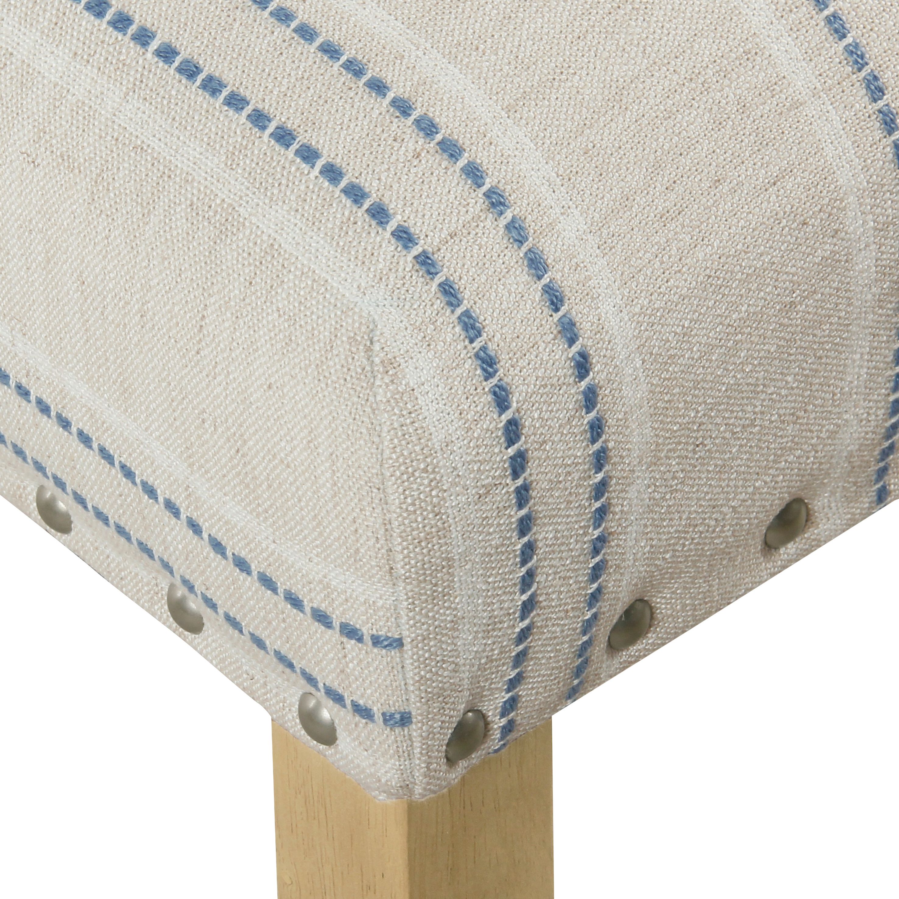 HomePop Dining Chair (Set of 2): 20.5 Inch Seat Height Nailhead Trim Wooden Legs with a Natural Finish White with Blue Stripes Sold as a set of 2