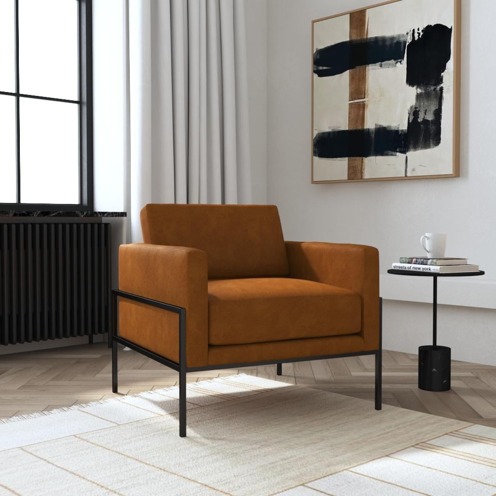 HomePop Modern Exposed Metal Frame Arm Accent Chair, Carmel Faux Leather