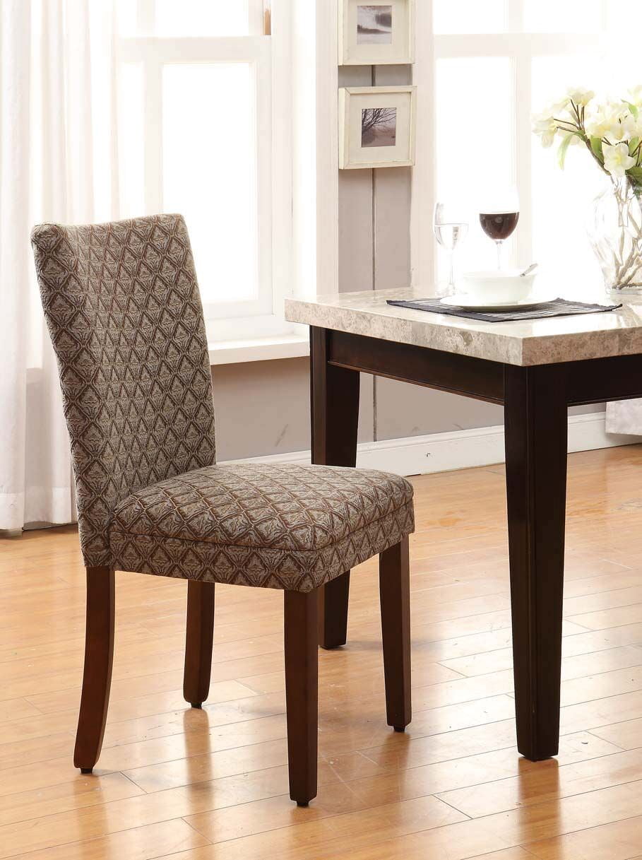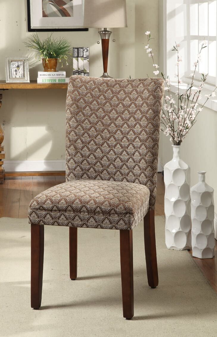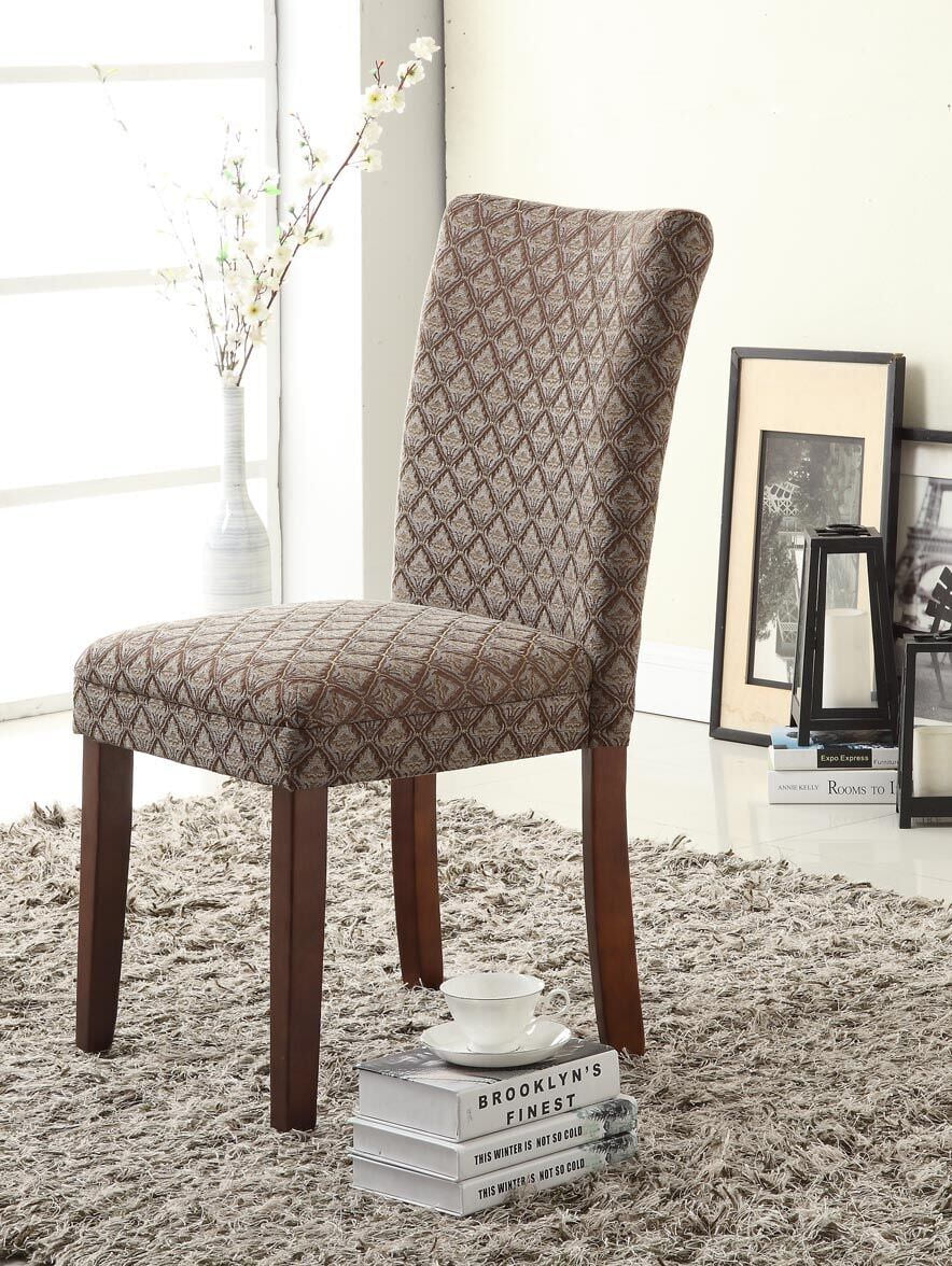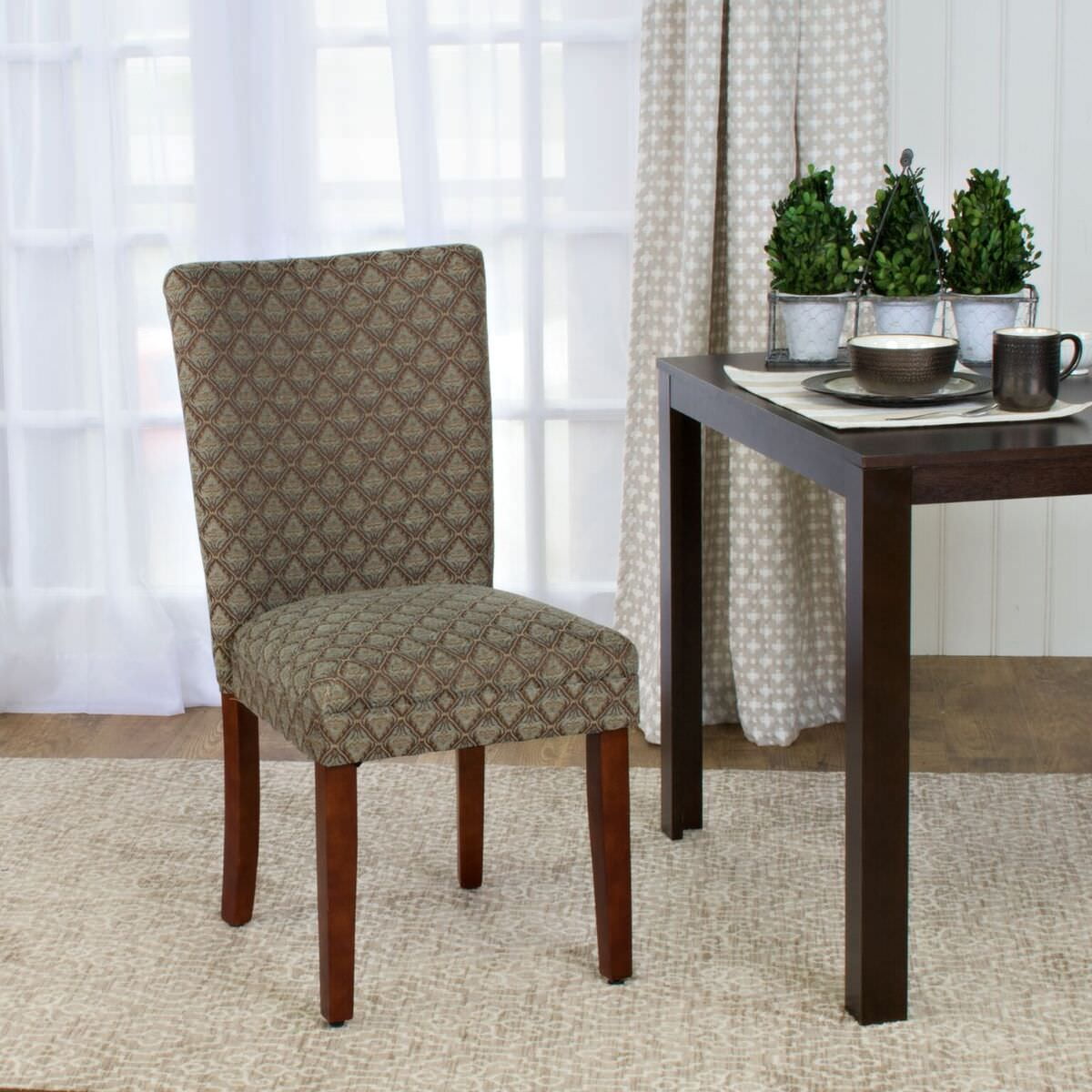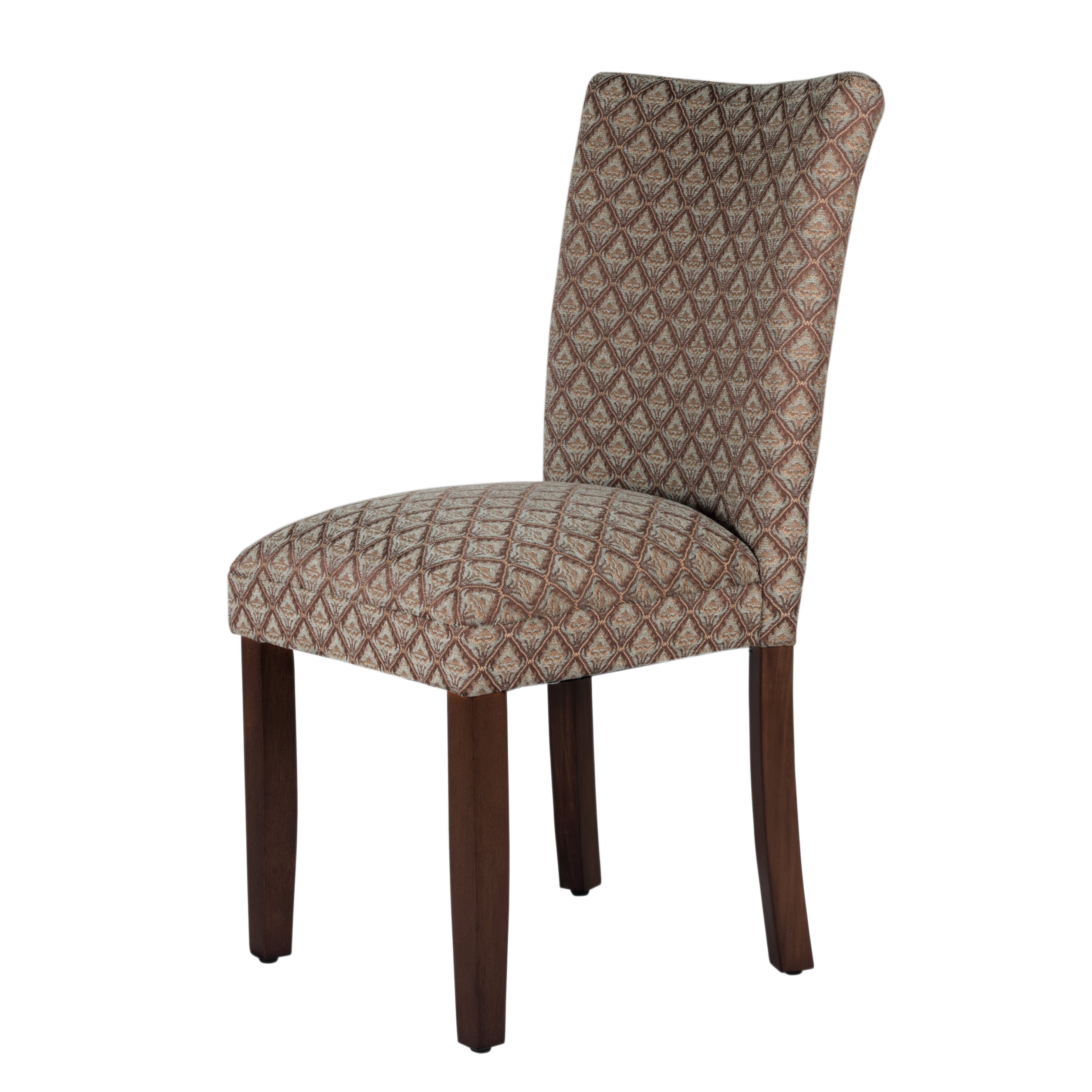 HomePop Parsons Dining Chair, Brown and Blue Fabric: 20.5 Inch Dining Chair Seat Height Medium Firm Cushion for Comfort and Durability 1 Piece Wood Legs Easy Assembly Required Maximum Weight: 250 lbs