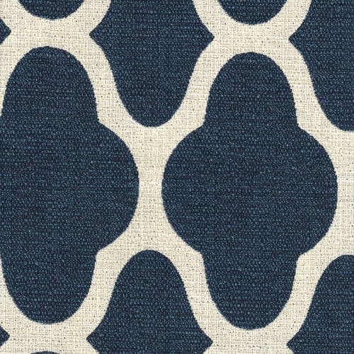 Transitional chair style that works in most homes. Geometric design in quatrefoil lattice pattern in cream white. Mid tone brown solid wood frame. Sold as a set of 2 chairs. Spot clean fabric. Easy assembly. Other items available in same fabric. Premium woven fabric with 78% polyester & 22% rayon construction. Other items available in the same fabric