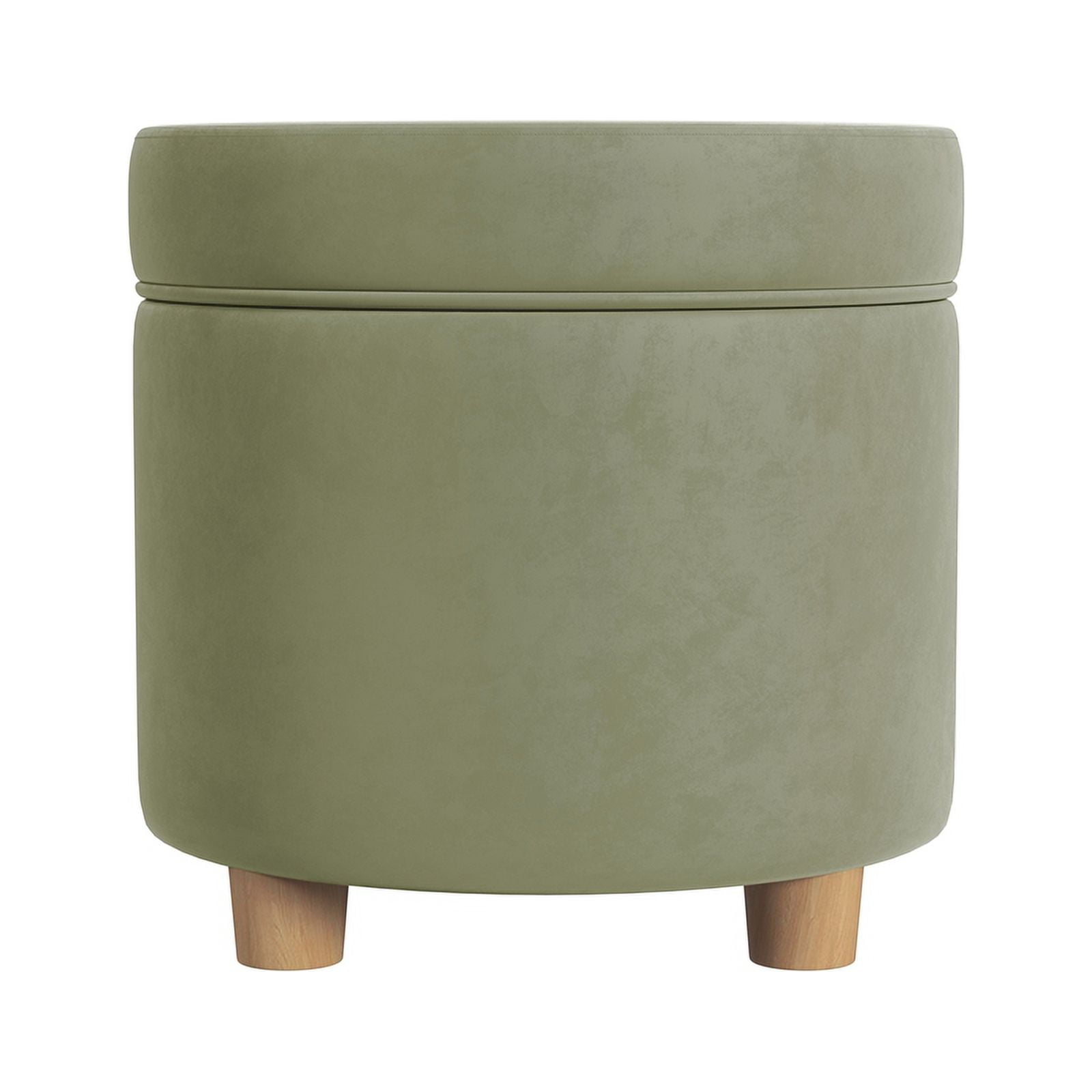 HomePop Round Storage Ottoman, Light Sage Green Velvet