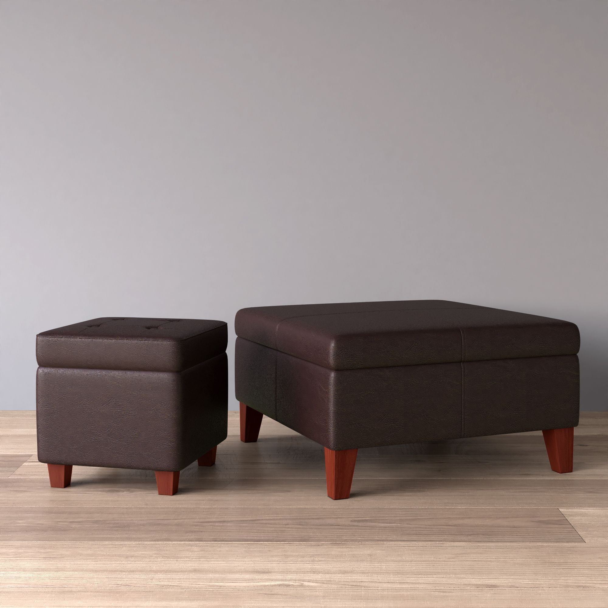 HomePop Transitional Faux Leather Storage Ottoman in Brown Finish