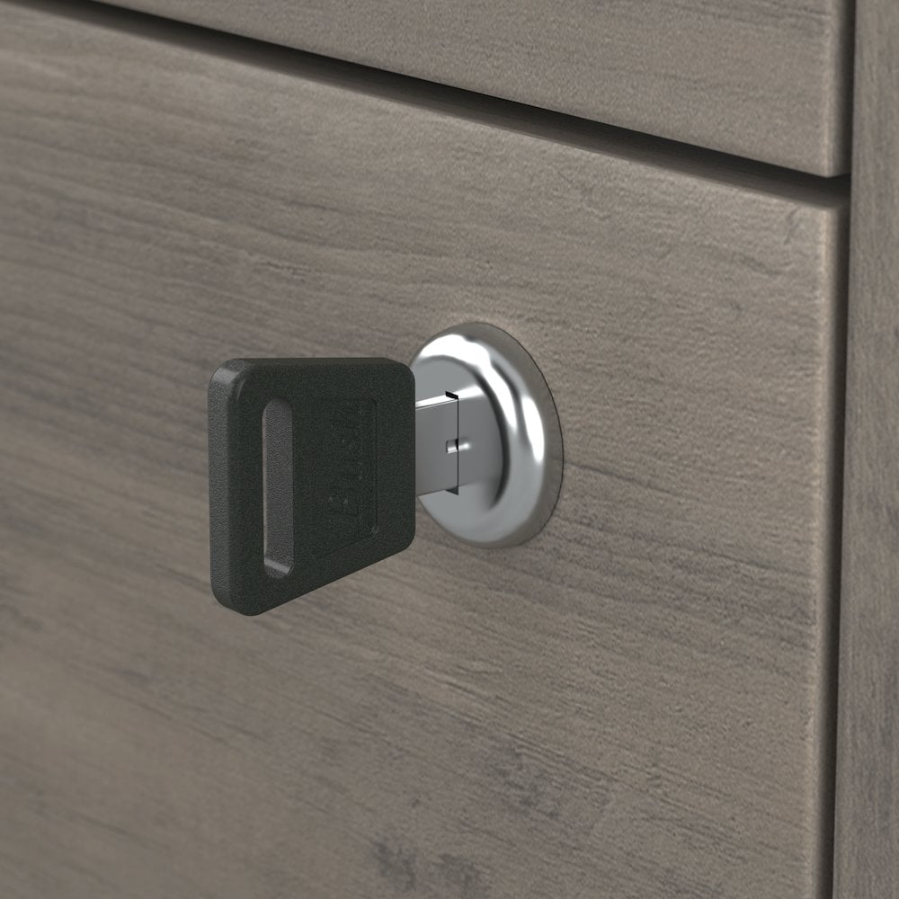 29W x 23D x 30H Accent Cabinet is perfect for organizing paperwork and office supplies in any home office or living space Tip Guard(TM) safety features include a stable design, a counterweighted back panel, wall attachment hardware, and Open-Safe Drawers Open-Safe Drawers are designed to pull out one at a time for improved stability; drawers support up to 50 pounds each Locking file cabinet’s drawers open on smooth full-extension ball bearing slides for an effortless reach to letter, legal, and A4-size paperwork Decorative trestle patterns, chamfered profile edges and Antique Silver hardware give this cabinet a casual farmhouse style Top surface is an ideal location for a printer or decorative items and supports up to 200 pounds of materials Finishes with a beautiful natural grain pattern create a relaxed feel in your home or office Bush Furniture’s commitment to safety includes rigorous testing that meets or exceeds ANSI/SOHO standards Backed by the Bush Furniture 1 Year Manufacturer’s Warranty See the complete Homestead Collection for coordinating items available