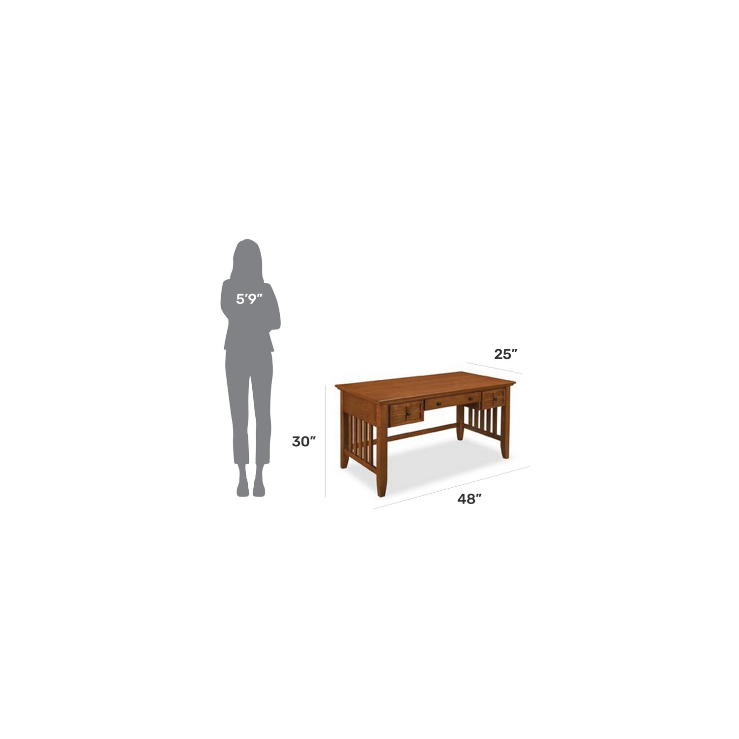 Chase writer’s block away by being inspired by this Homestyles Arts & Crafts Executive Desk. The classic styling is matched only by the durable performance of the solid hardwood construction that is built to last. Enjoy ample space for notepads and laptops, and keep your space tidy with a variety of storage options. Features: Oak is strong, hard, heavy and dense, making it highly resistant to wear and tear. Cottage oak finish for a warm and traditional feel. Veneer provides the beauty and feel of natural woodgrain. Two drawers provide convenient and easy-to-access storage. Keep space looking tidy by closing the drop-down center keyboard tray when not in use. Some assembly required using our easy-to-understand directions. Furniture conveniently delivers straight to your home. Specifications: Assembly Required: Yes Hardware: Hardware Included Weight Capacity: 150 Warranty: Yes Number of Drawers: 2