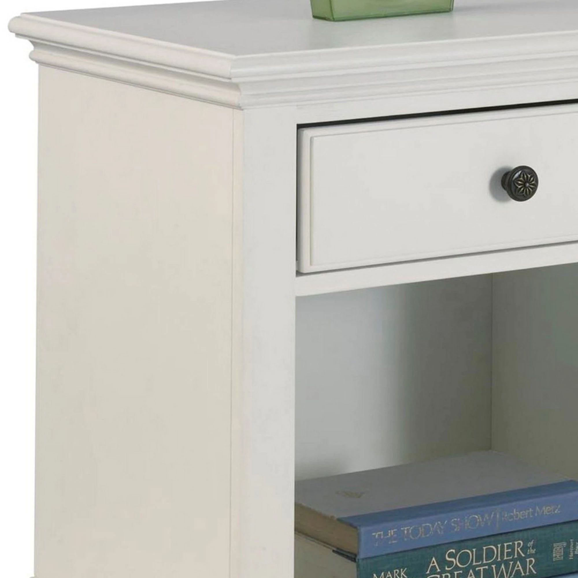 You can almost feel the cool island breeze sweep through your bedroom when you add this Homestyles Bermuda Nightstand. The combination of open and closed storage gives you more options for organization. The smaller size makes the most of smaller bedrooms, and the durable construction and finish bring low maintenance ownership. Features: Off White finish is refined and timeless. Engineered wood offers incredible structural strength and durability. Some assembly required using our easy-to-understand directions. Furniture conveniently delivers straight to your home. U.S.-based Homestyles has delivered exceptional online furniture experiences for more than 20 years Specifications: Assembly Required: Yes Hardware: Hardware Included Weight Capacity: 60 Warranty: Yes Number of Drawers: 1