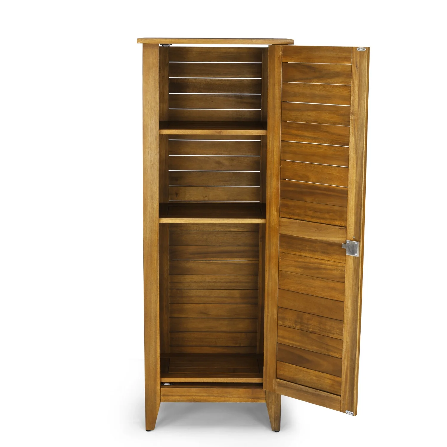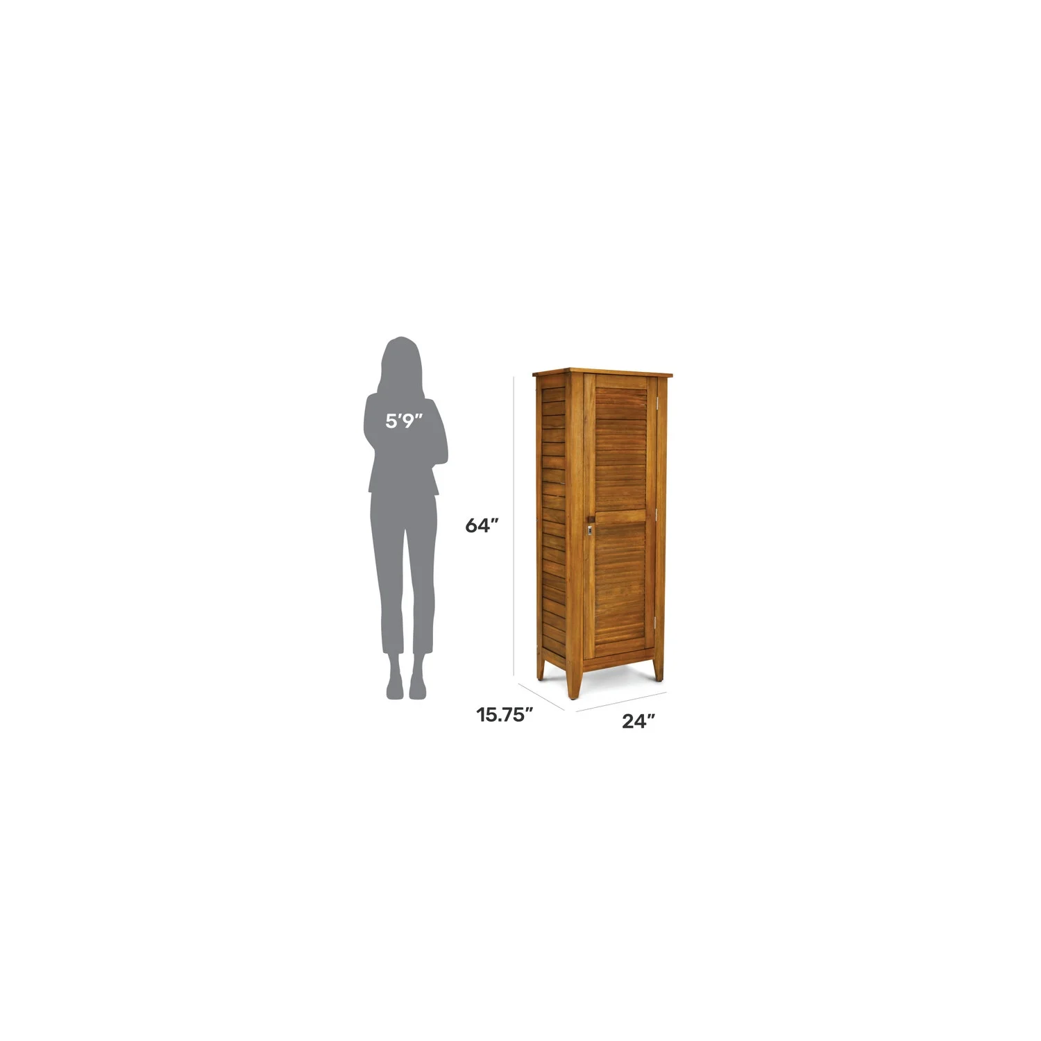 Acacia wood is highly durable, water-resistant and easy to maintain for long-term enjoyment. Finished in a golden teak stain and sealed with linseed oil to bring out the wood’s natural beauty. Locking mechanism on door to keep items safe and secure. Three adjustable and removable shelves to accommodate a variety of items. It’s a great choice for both indoor and outdoor use. Some assembly required using our easy-to-understand directions. Furniture conveniently delivers straight to your home.