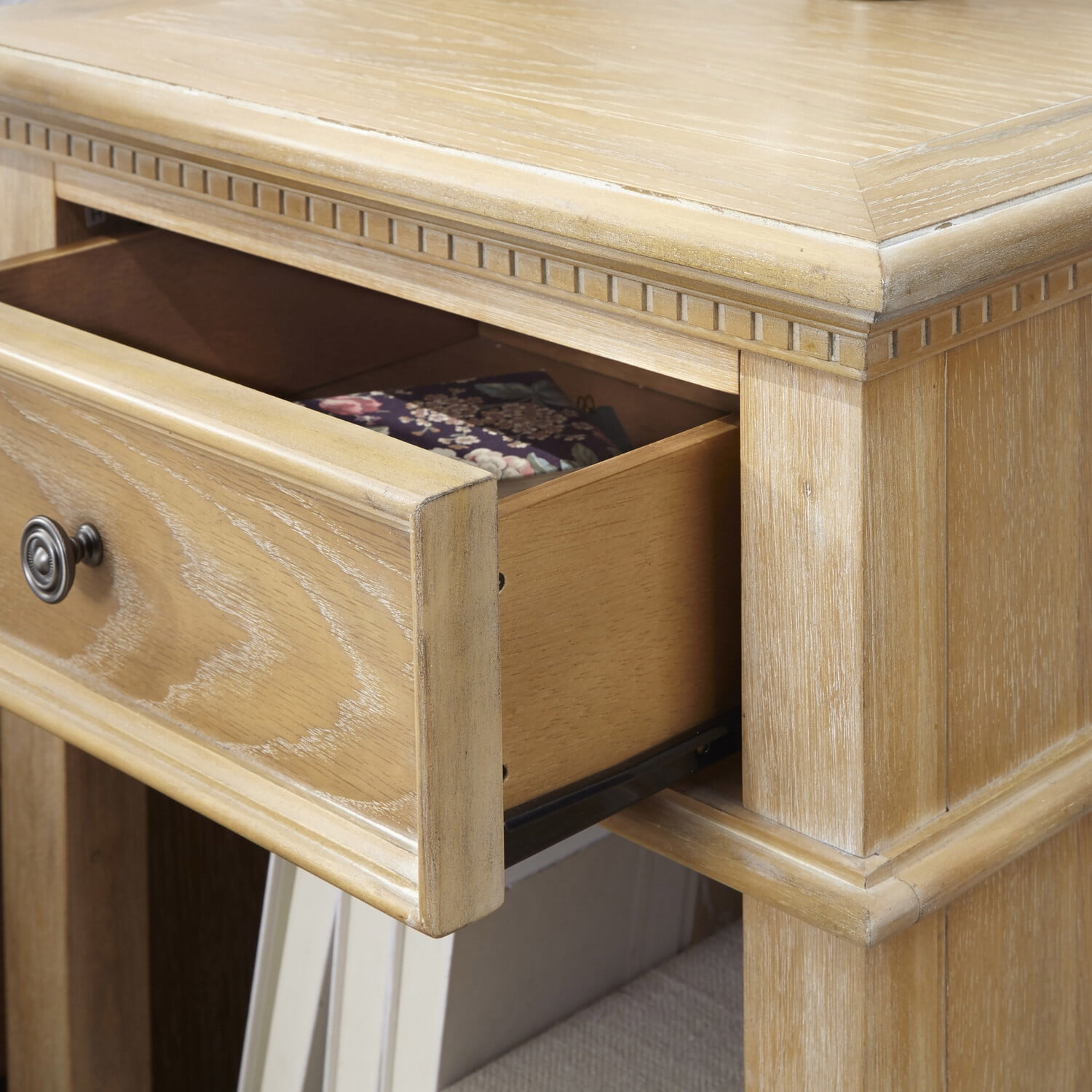 Traditional design gets a contemporary twist with this Homestyles Manor House Nightstand. The drawer offers a convenient place for glasses and personal items, and the open space is perfect for stacking up late night reading material. The solid construction provides years of worry-free enjoyment. Features: Combination of hardwood and engineered wood adds beauty, strength and durability. Aged waxed finish highlights the grain of the wood. Drawer offers quick and easy access to your essentials. Some assembly required using our easy-to-understand directions. Furniture conveniently delivers straight to your home. U.S.-based Homestyles has delivered exceptional online furniture experiences for more than 20 years. Specifications: Assembly Required: Yes Hardware: Hardware included Frame Material: Wood Number of Shelves: 1 Number of Drawers: 1