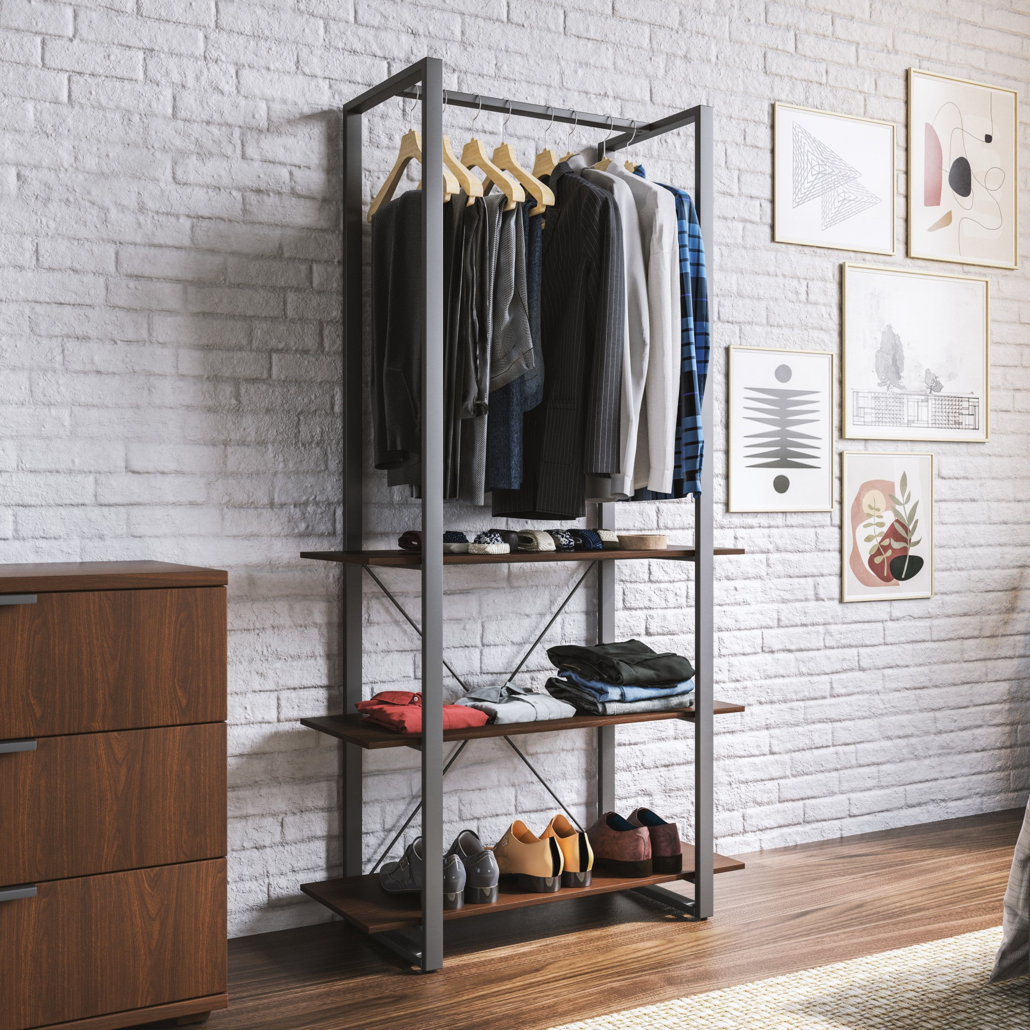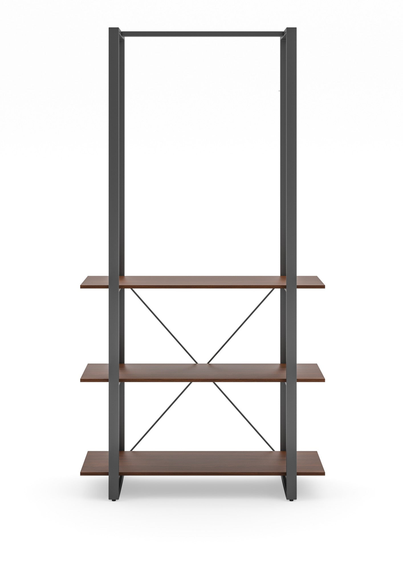 Organize books or showcase valuables with this Homestyles Merge Personal Organizer. Whether used in an office setting, living room or bedroom, this vertical storage solution is ideal for smaller spaces. The light scale frame gives it a minimalist appeal, which accentuates the warm walnut veneer. The lacquer top coat protects the finish and creates totally worry-free ownership. Features: Finish: Walnut Brown Stain Material: Solid Mahogany combines with Walnut Veneer and Engineered Wood, Metal Multi-functional piece that can be used in a variety of spaces Some assembly required using our easy-to-understand directions Engineered wood offers incredible structural strength and durability Compact size is a comfortable solution for small spaces Specifications: Assembly Required: Yes Hardware: Hardware Included Product Dimensions: 69″H x 36″W x 15″D Product Weight: 48.6 lbs Number of Shelves: 3
