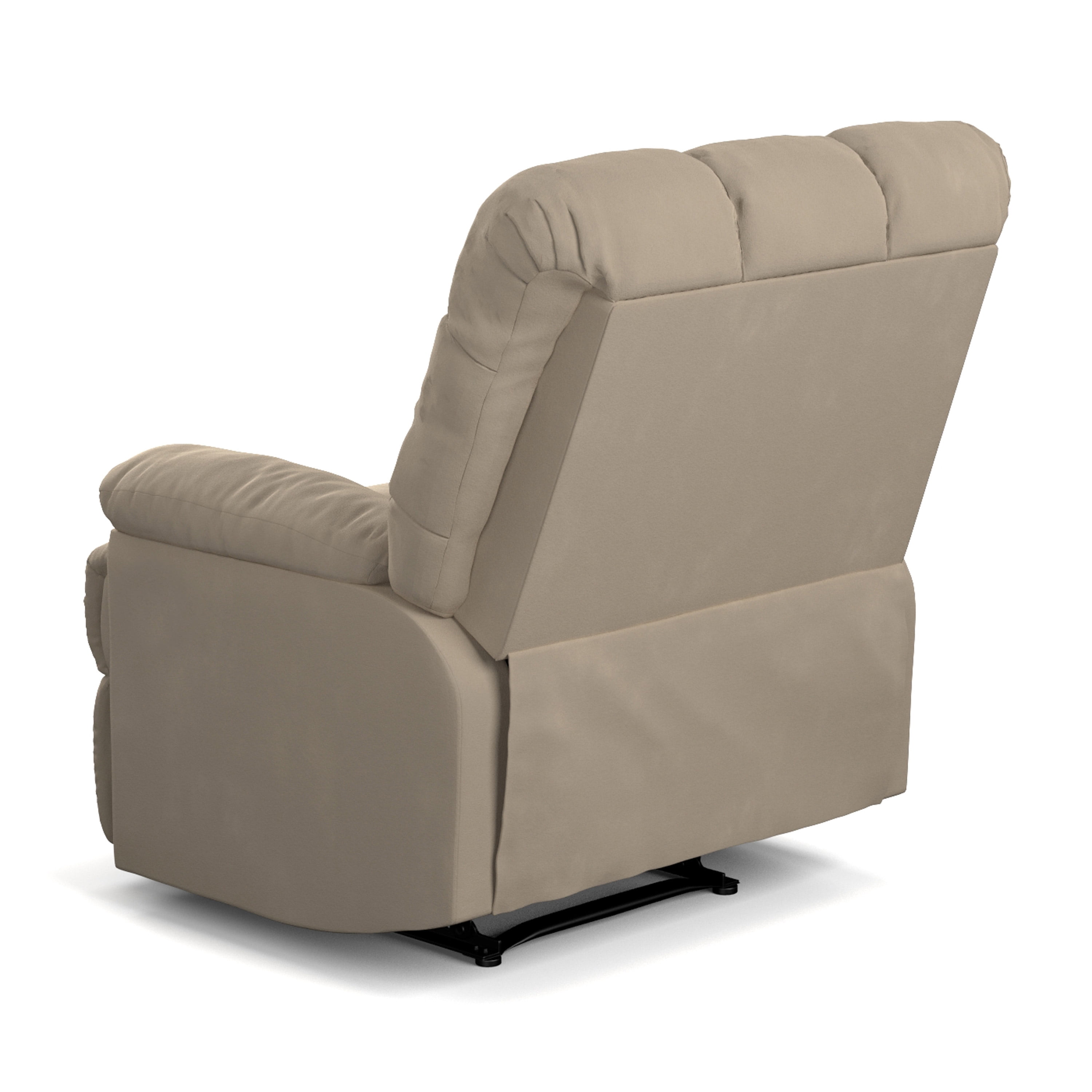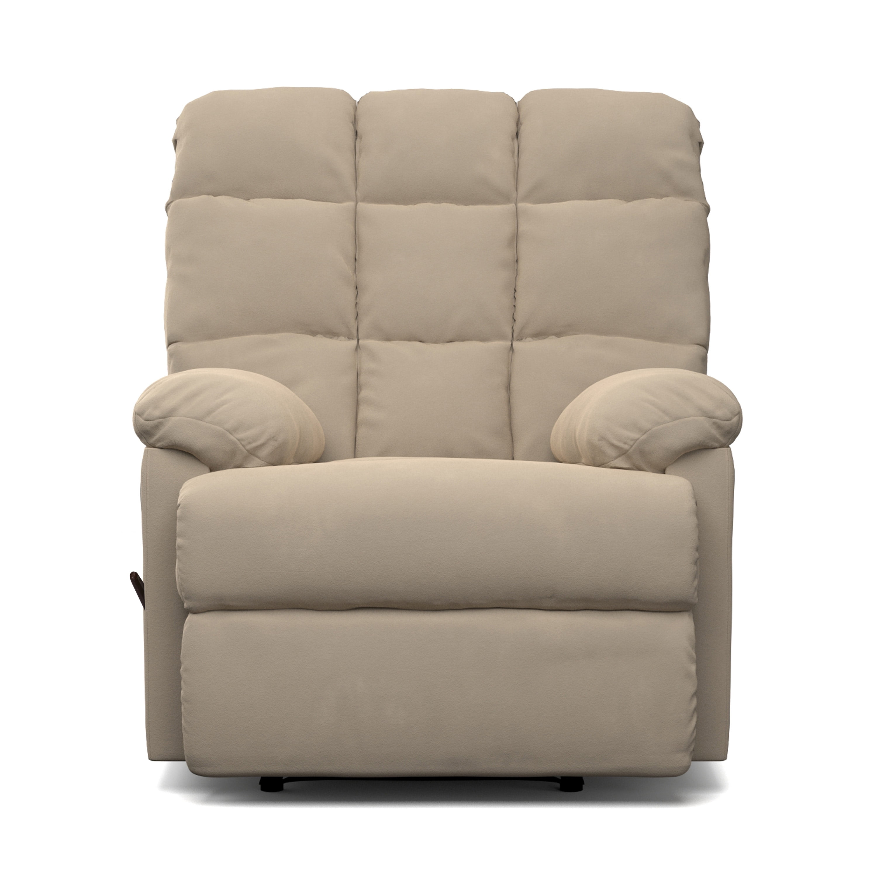 Homesvale Wall Hugger Microfiber Biscuit Back Recliner Chair Covered in a khaki microfiber100% polyester microfiber Wall hugger-designed recliner only needs 4″ of clearance from the wall to recline and uses less floor space when in the recline position Designed for small space living Full chaise pad between the chair and the leg rest supports the legs for a truly comfortable recliner Cushions are filled with high density foam, polyester fiber and independently wrapped pocket coil spring system Constructed with a hardwood frame Sturdy sinuous spring seating Steel reclining mechanism Insulated spring clips Dimensions: 37.75″L x 34.75″W x 39.50″H Seats Up to 300lbs. Each piece ships in one (1) box Takes less than 15 minutes to assemble 1-year warranty