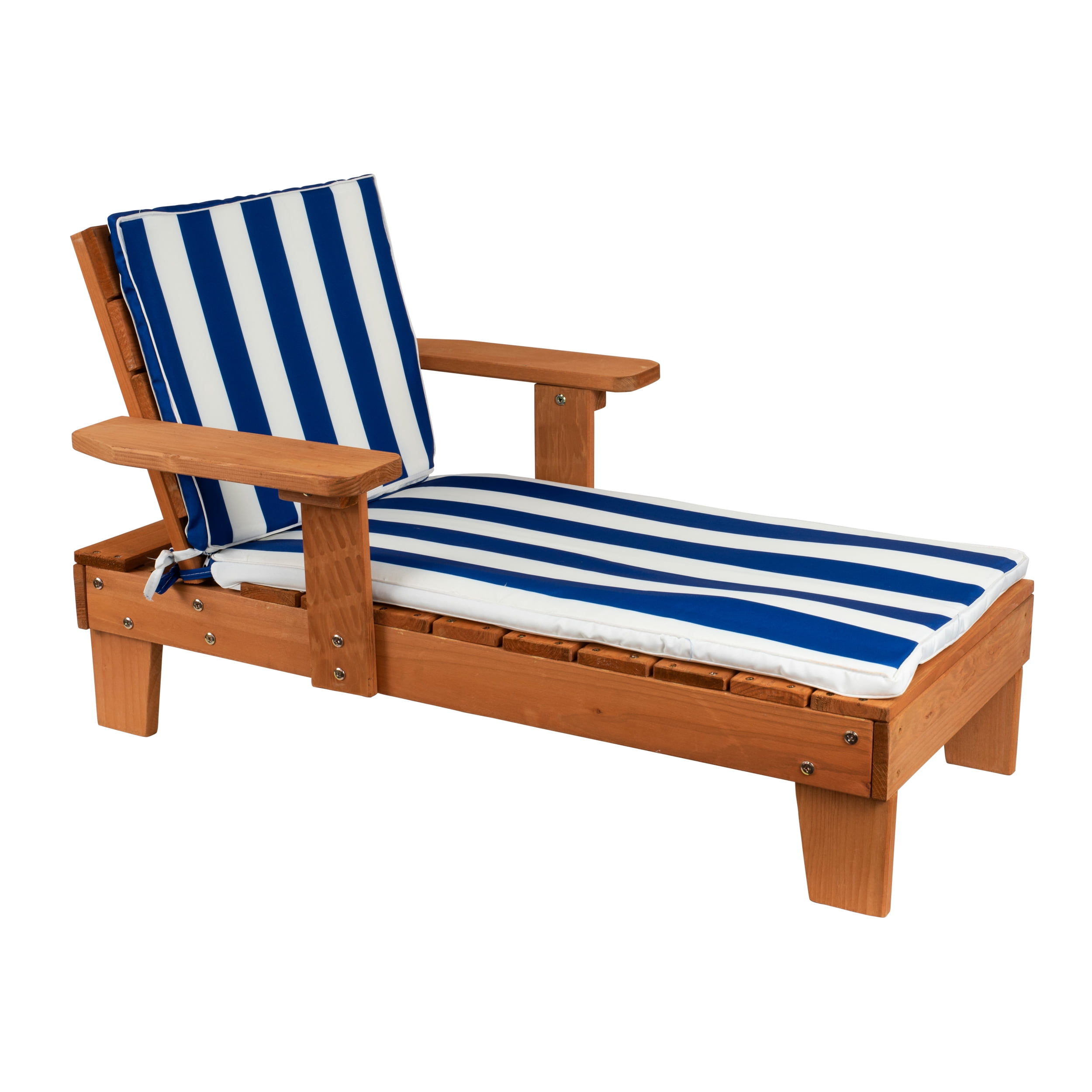 Age range: 3 to 6 years Solid wood Easy to assemble Includes Brown Wood chaise lounge chair and With Blue/White Striped cushion Perfect addition to your Outdoor Patio