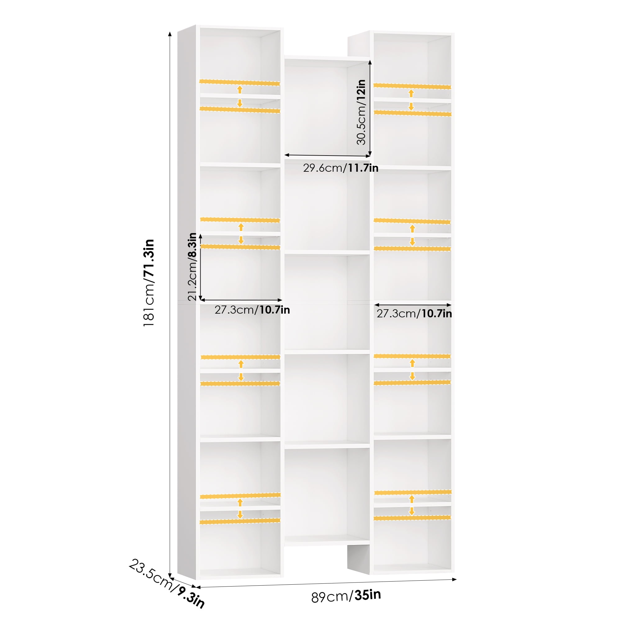Homfa 21-Cube Bookcase, 71’’ Tall Wooden Bookshelves with Adjustable Shelves, Triple Wide CD Display Storage Organizer Shelf for Home Office, White