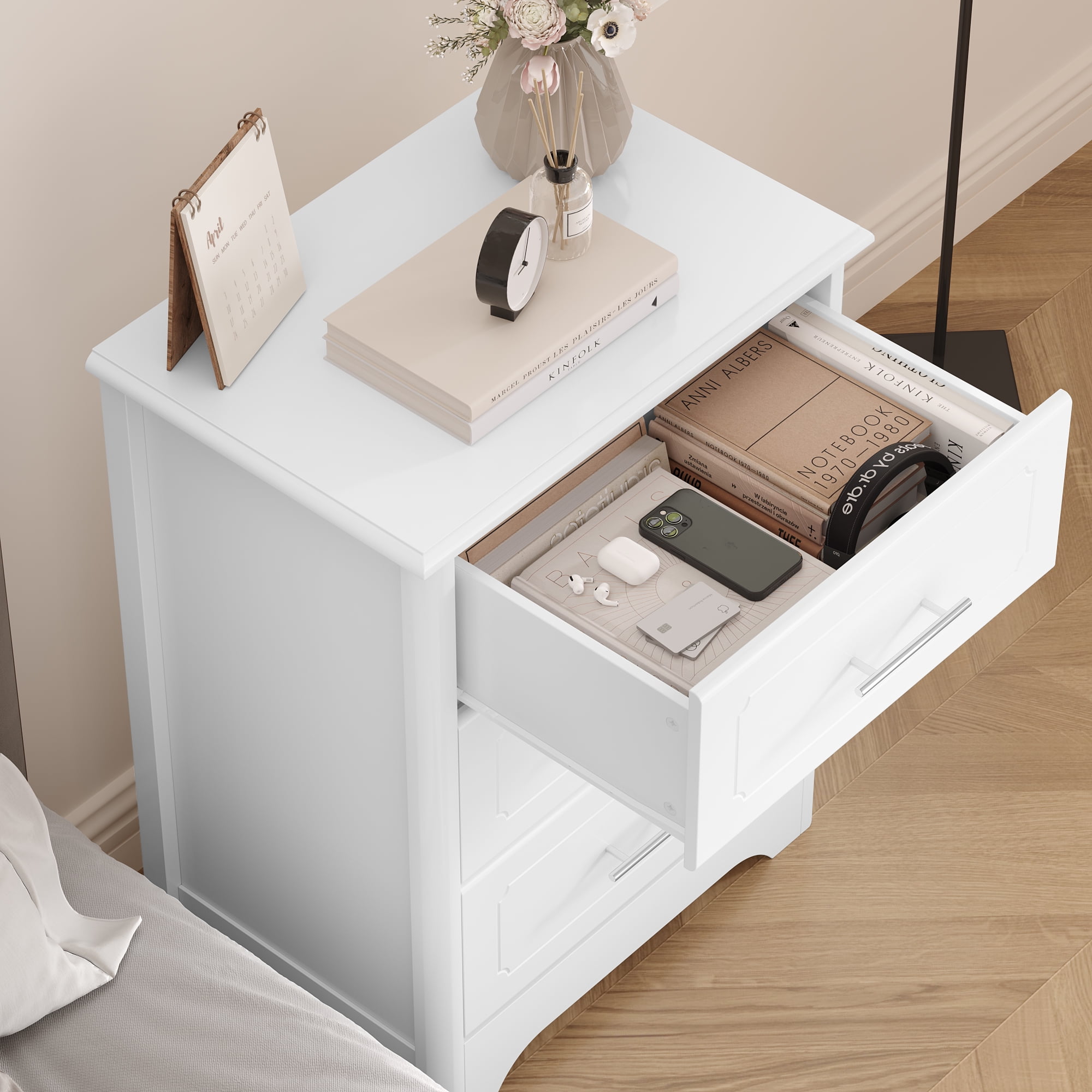 Homfa 3 Drawers Bedroom Nightstand, Small Space Sofa Table Storage Cabinet for Living Room, White