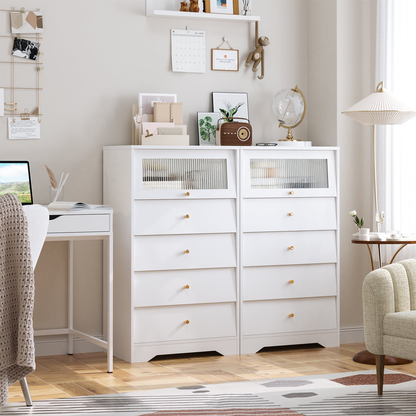 Homfa – Create a comfortable life! Homfa white dresser cabinet will become your excellent storage assistant, keeping your various items neatly and organized. Equipped with 4 large storage drawers and 1 shelf space with glass flip up door, this bedroom dresser furniture can provide you plenty of space and offer you perfect storage sorting solution, whether you want to store your belongings in a closed area or display your collection of ornaments perfectly. Modern elegant white style makes this white dresser easily match your decoration, as a white dresser night stand for bedroom, or as a chest of drawers storage unit in your bathroom, living room, foyer or dining room. With drawer system of high quality equipped, , the drawers are easy to pull out and push in. Smooth dresser finish also get much convenience to daily clean.
