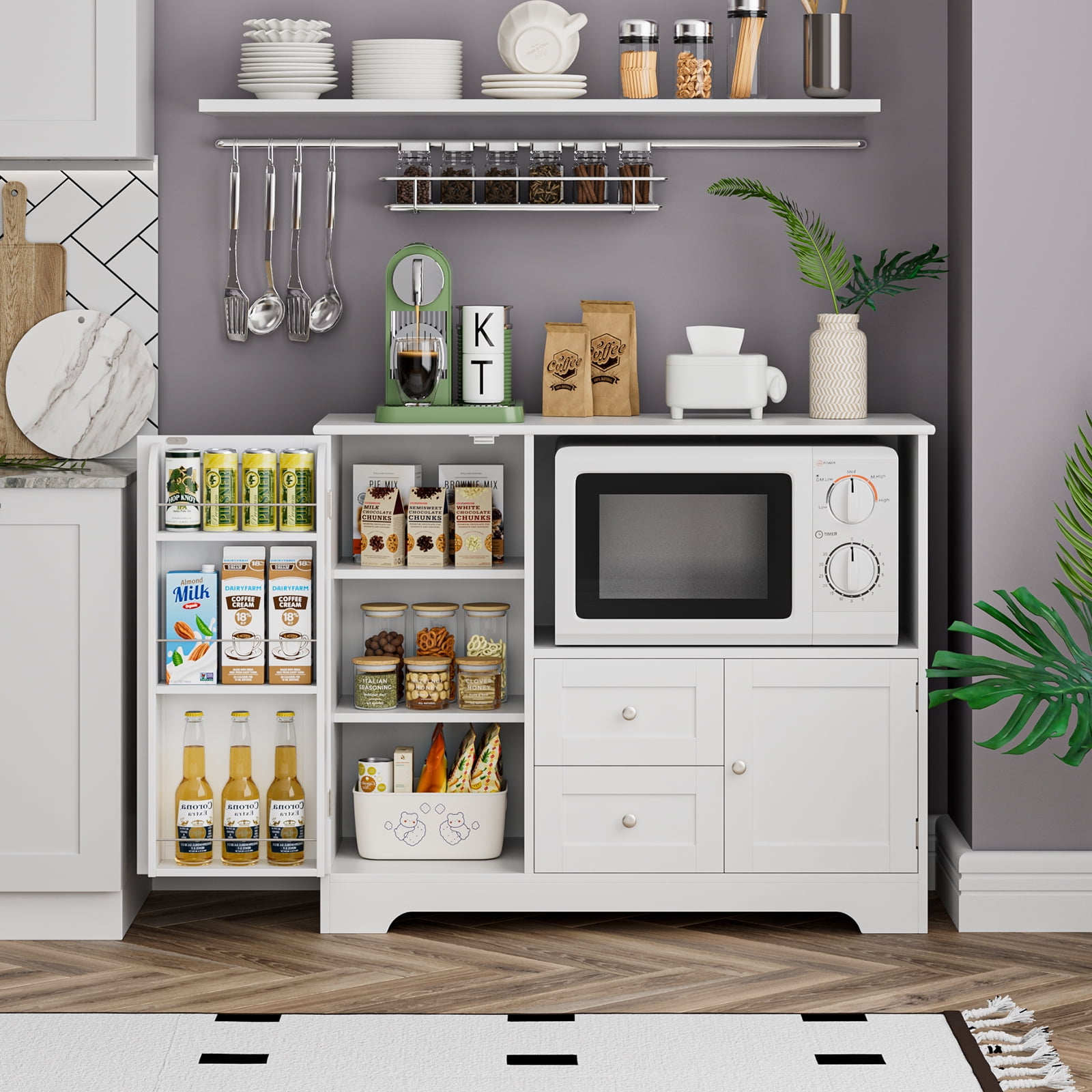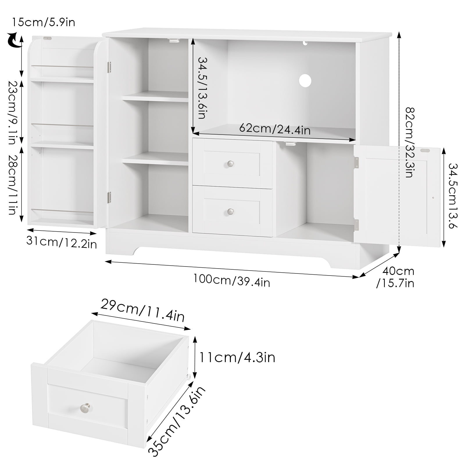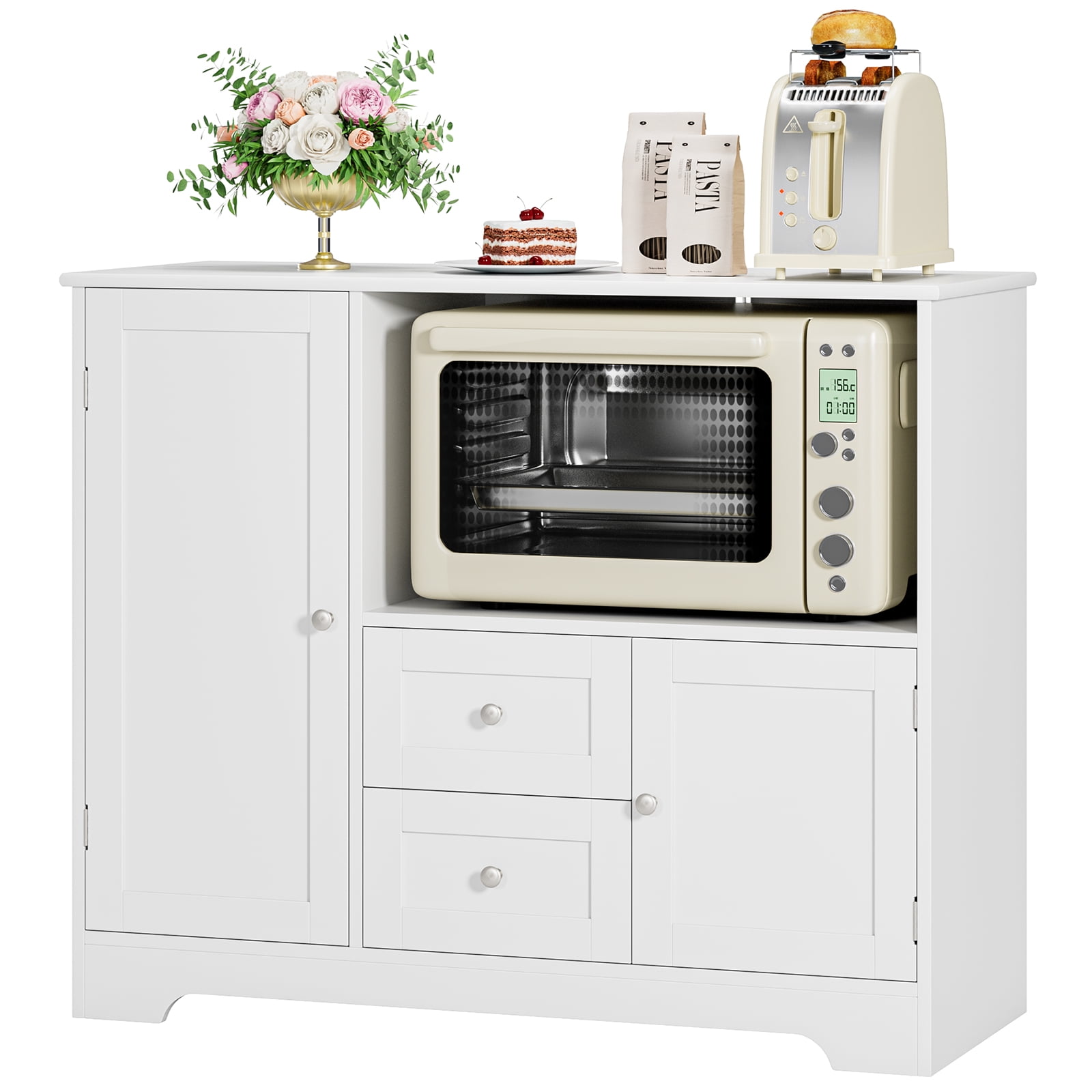 Homfa 40” Kitchen Storage Cabinet, Buffet Cabinet Sideboard with Drawers and Adjustable Shelves, Microwave Cabinet for Dining Room, White