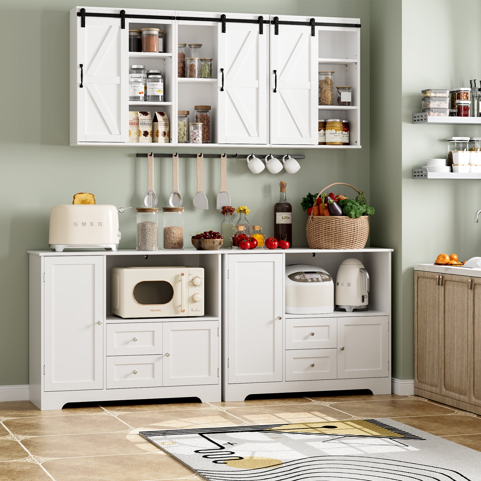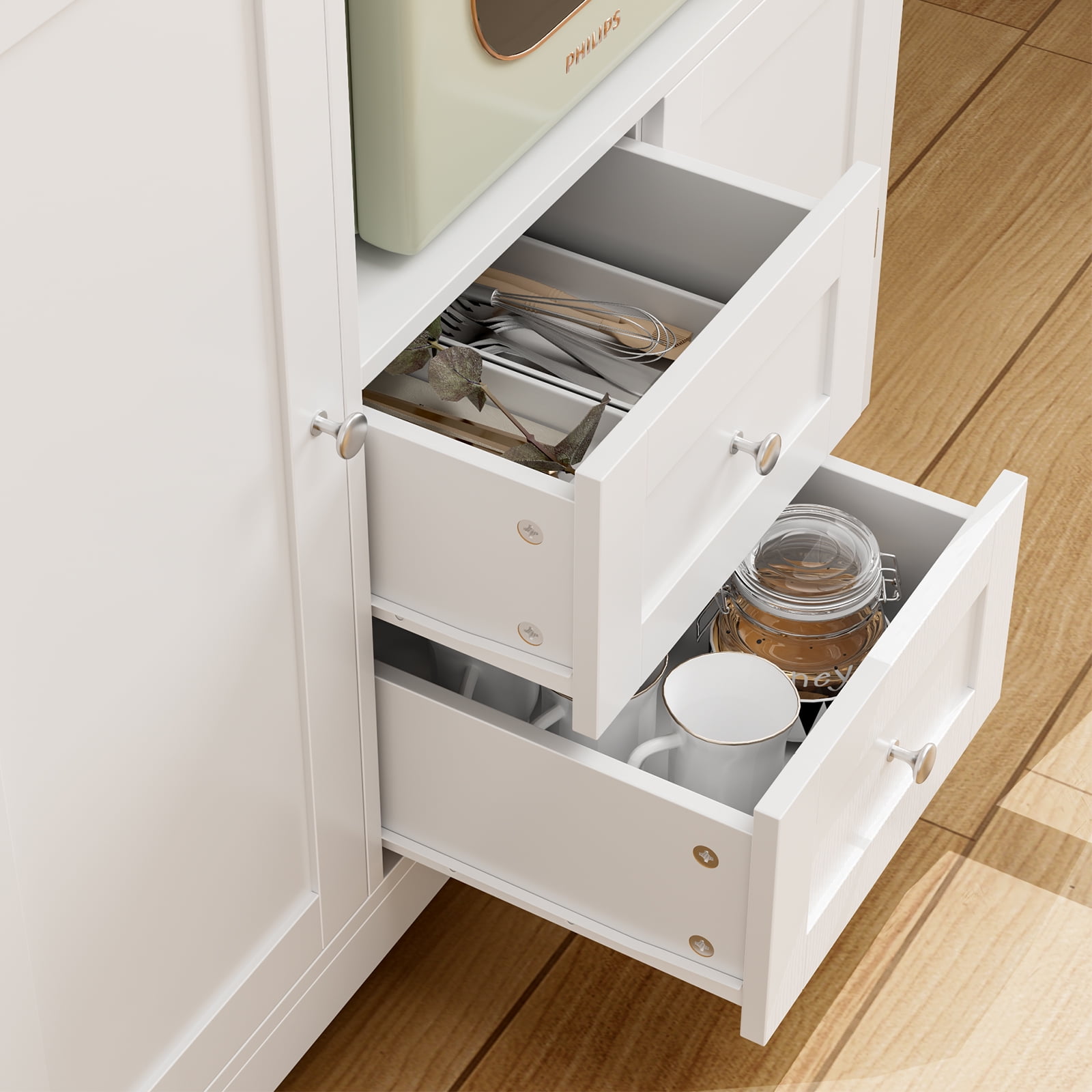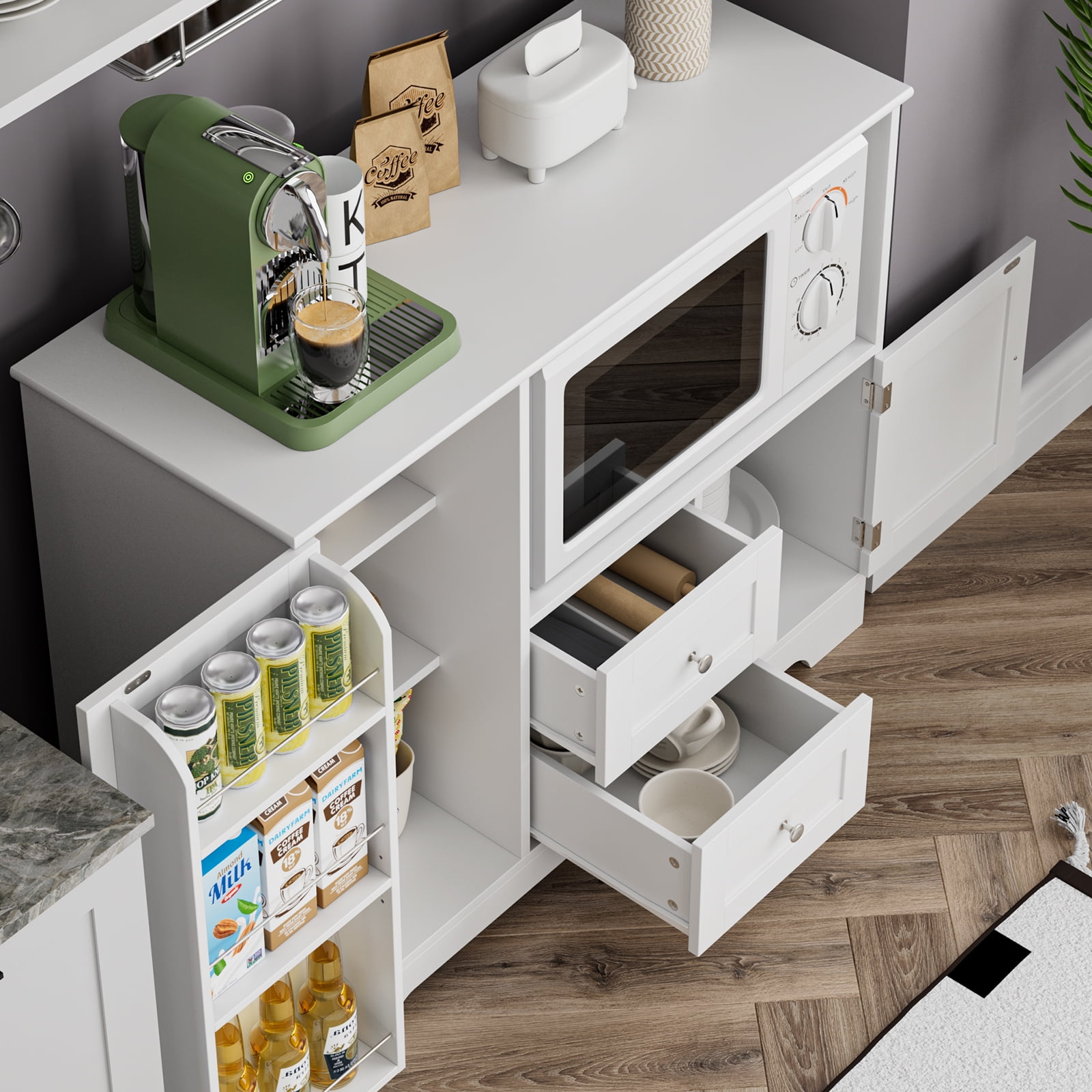Homfa 40” Kitchen Storage Cabinet, Buffet Cabinet Sideboard with Drawers and Adjustable Shelves, Microwave Cabinet for Dining Room, White