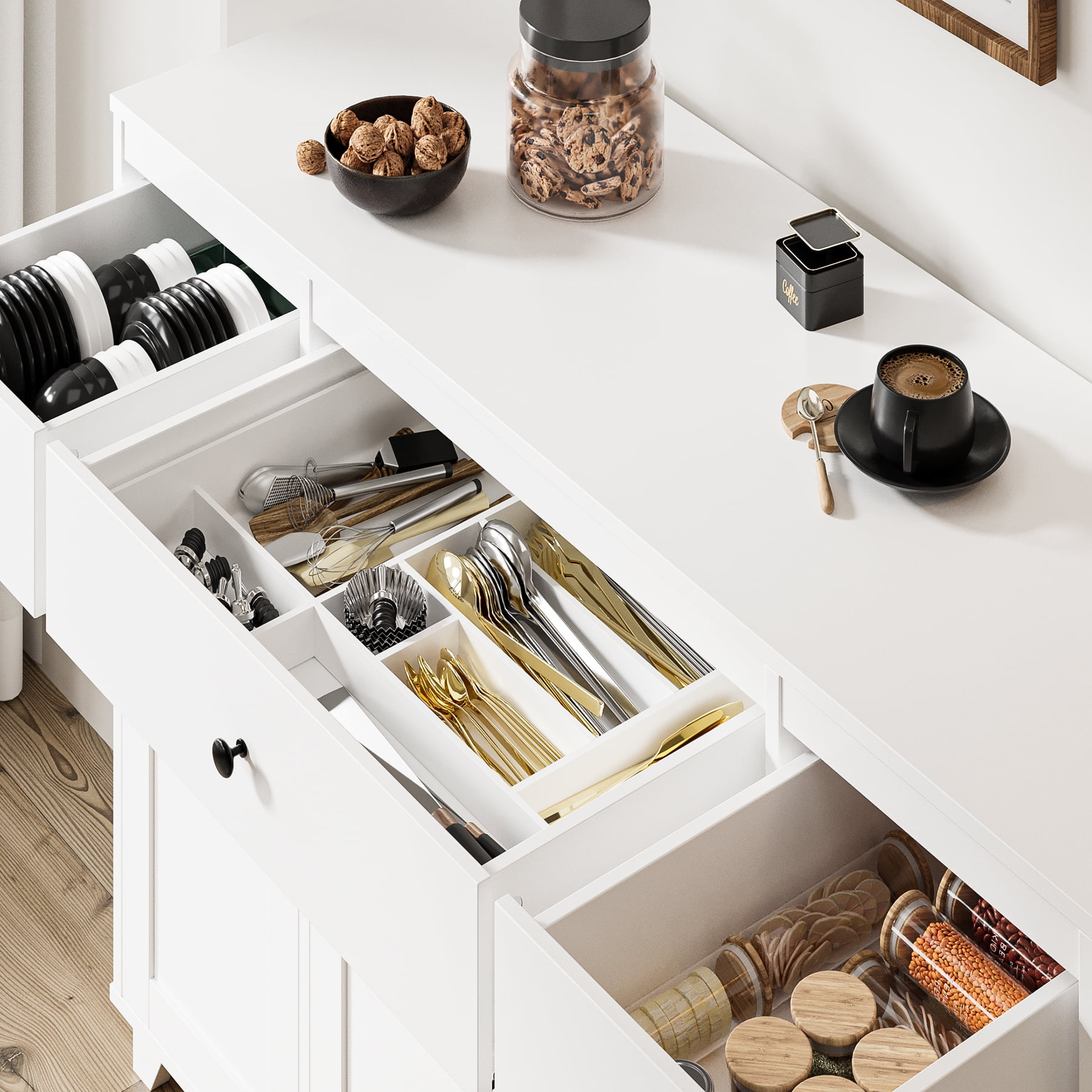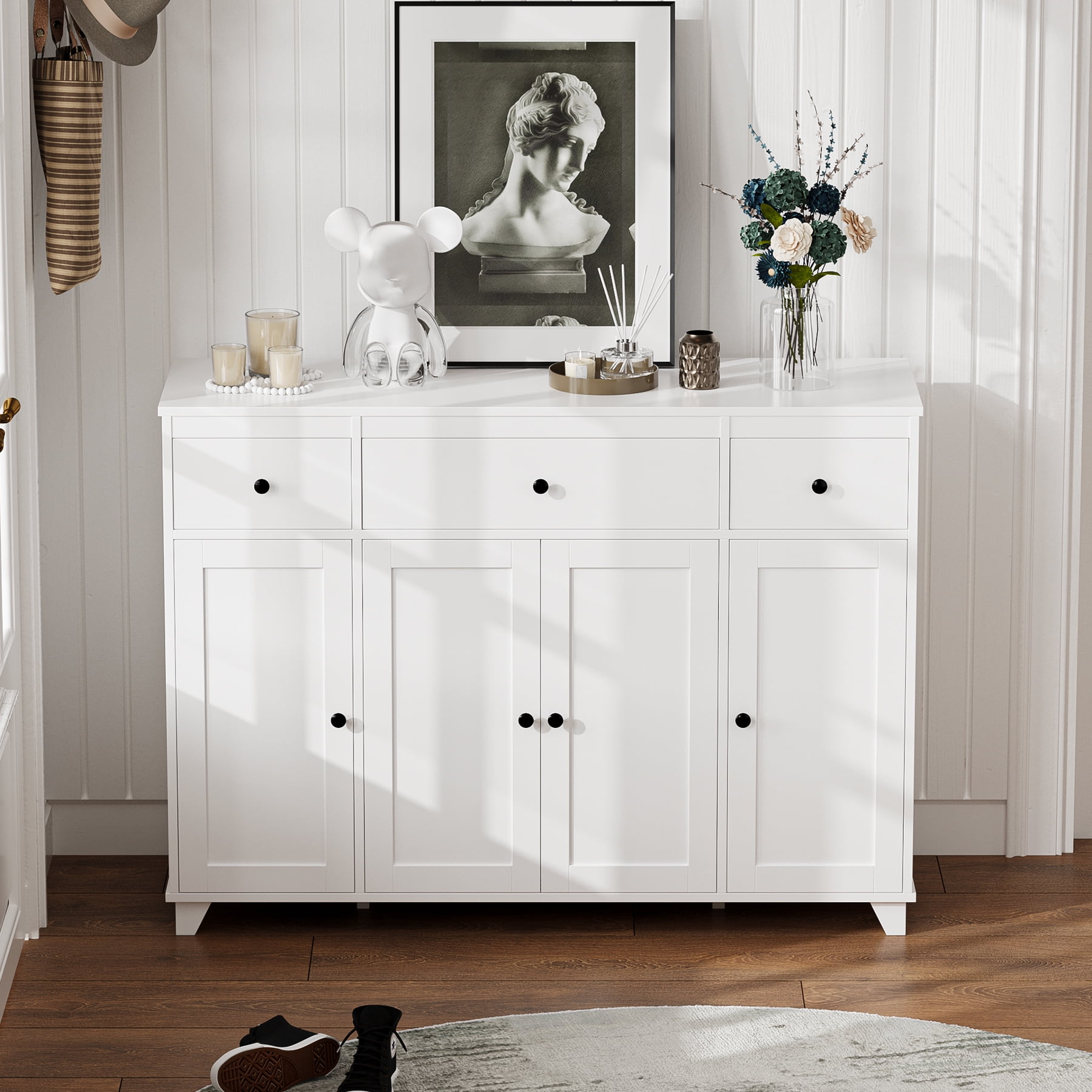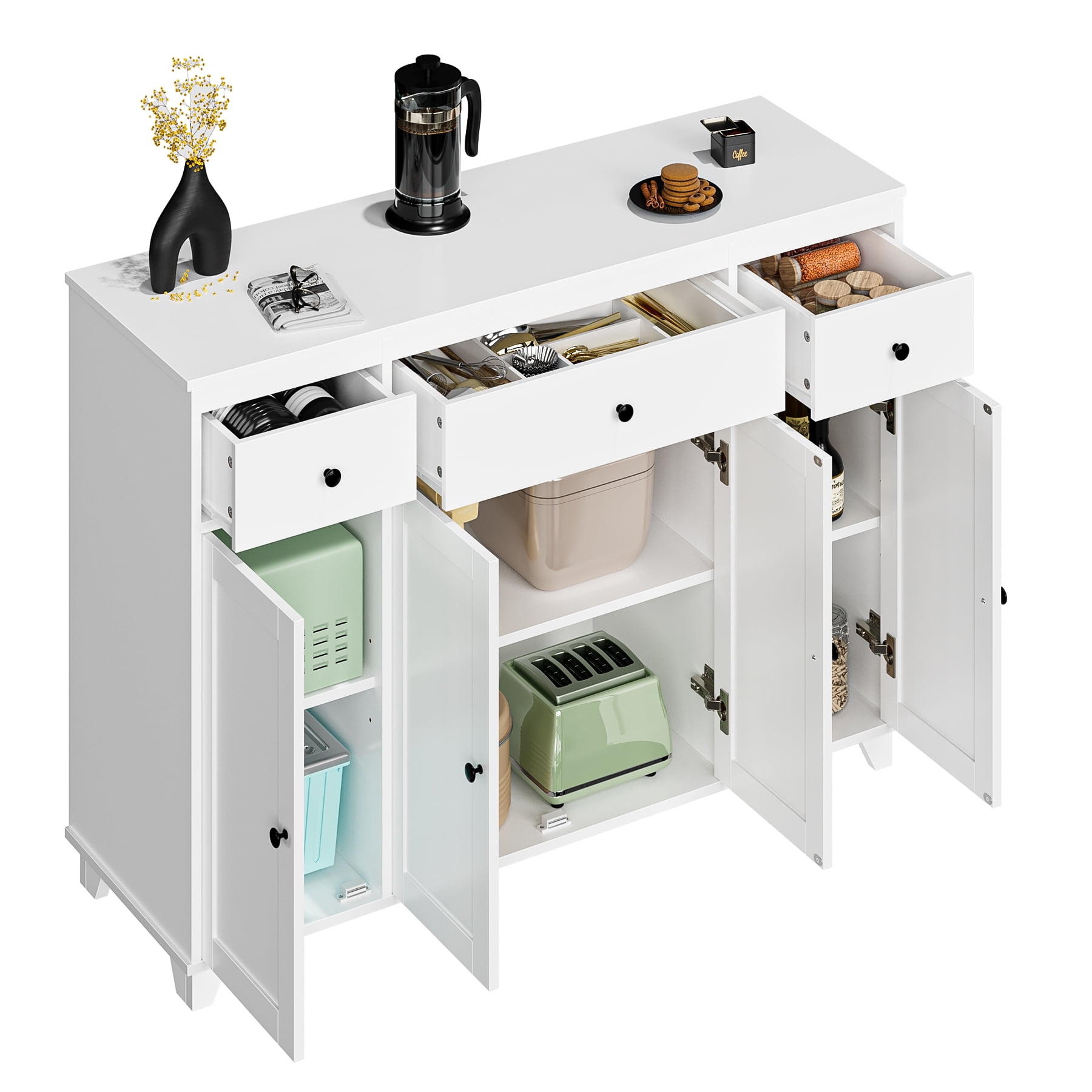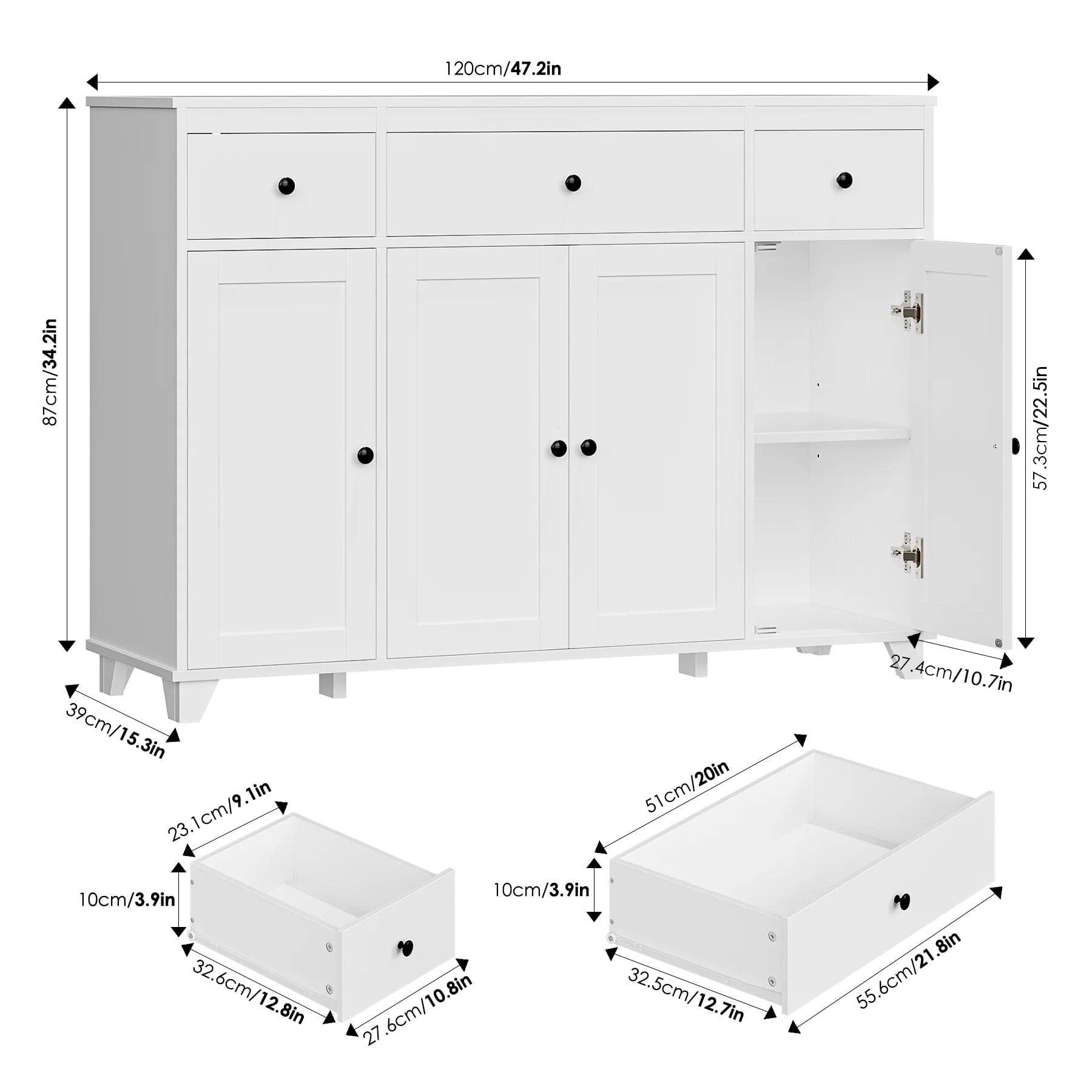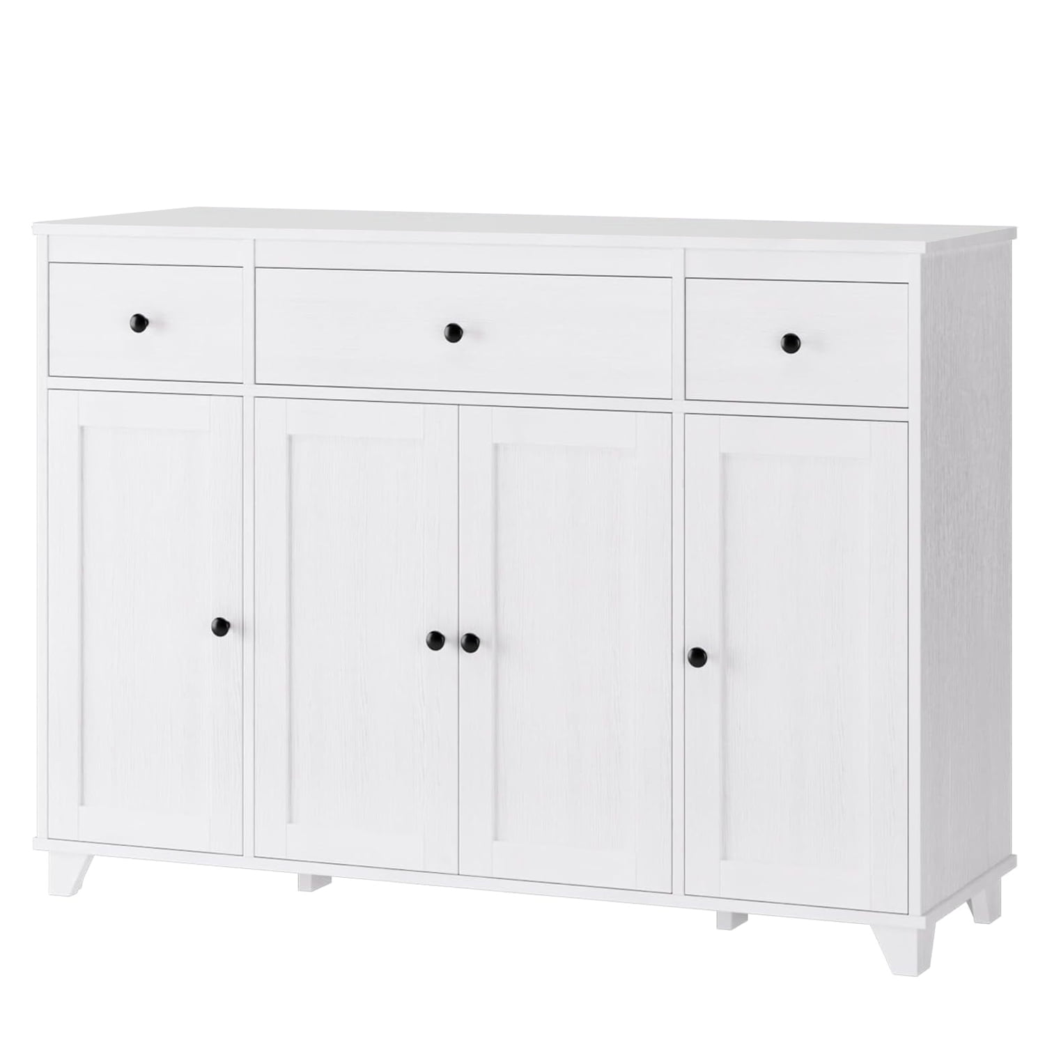 Homfa – Create a comfortable life! This Homfa sideboard buffet cabinet with 3 drawers and 4 doors keep your room organized and tidy.47″L*15.6″W*34″H overall size provides large storage space. Sideboard cabinet with adjustable shelves to fit the height according to your needs. Three drawers provide hidden storage space convenient for you to classify tableware or store your private items. Classic white sideboard buffet without taking up much floor space, which allows you to use it in many places in your home.