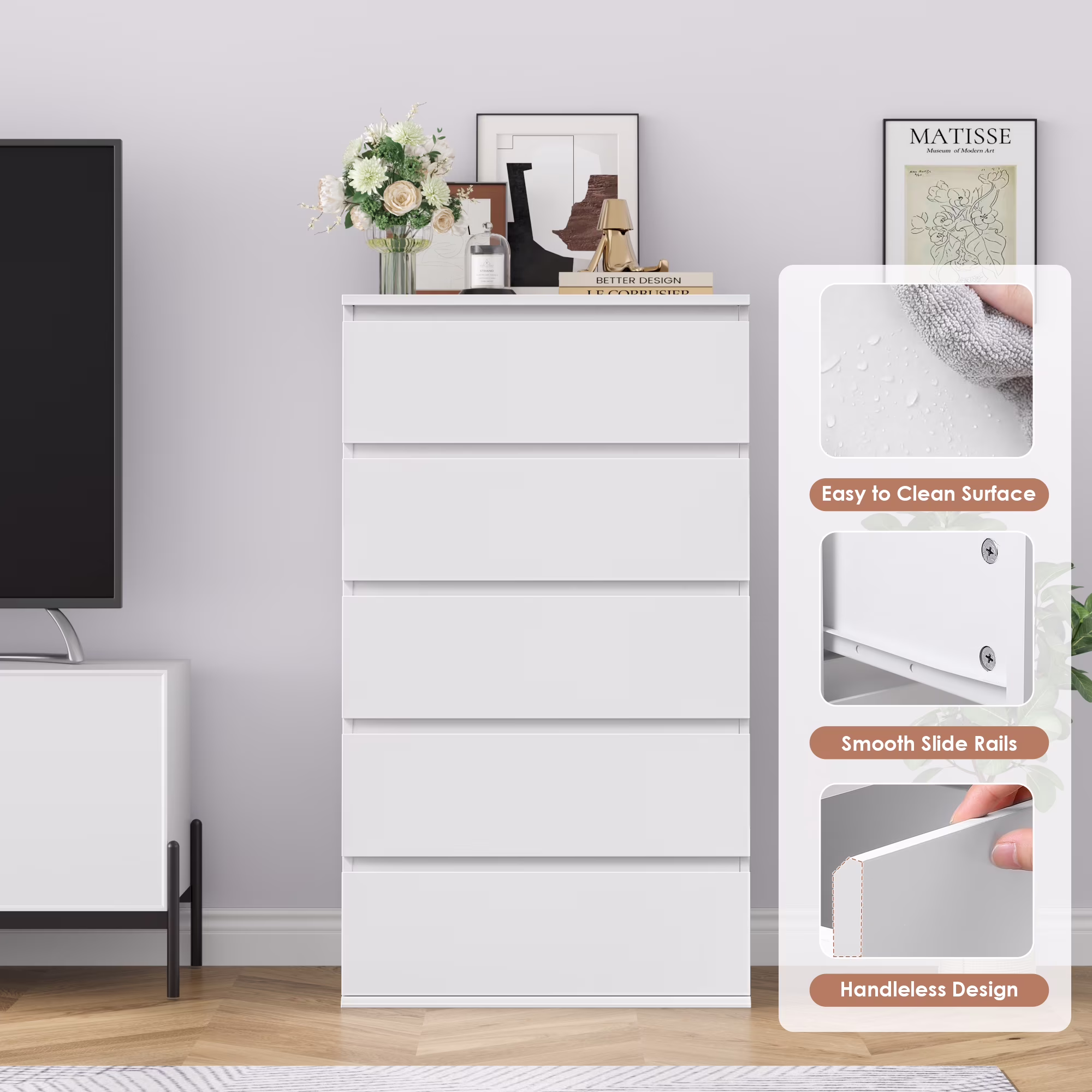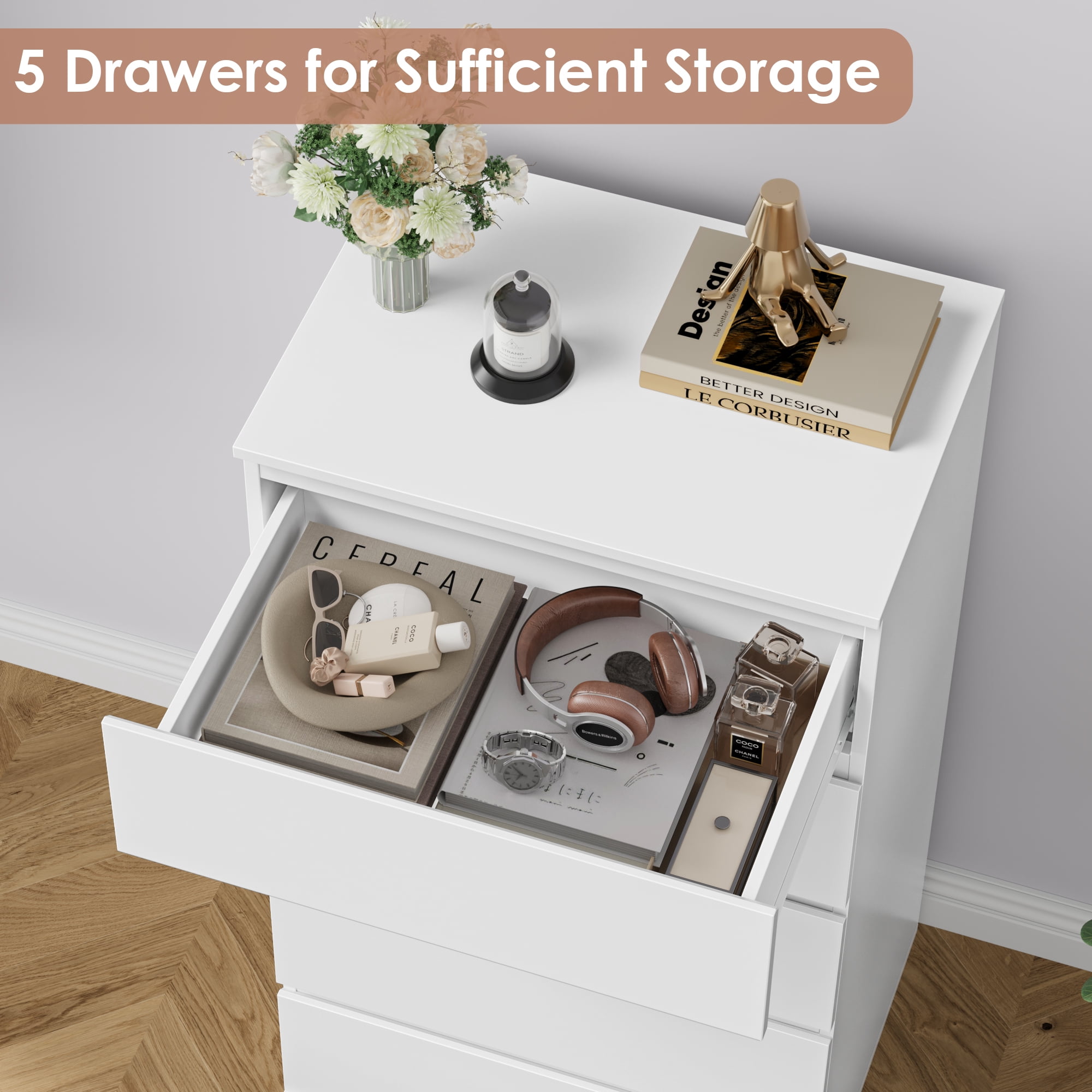 Homfa 5 Drawer White Dresser, Modern Storage Cabinet for Bedroom,Tall Chest of Drawers for Living Room