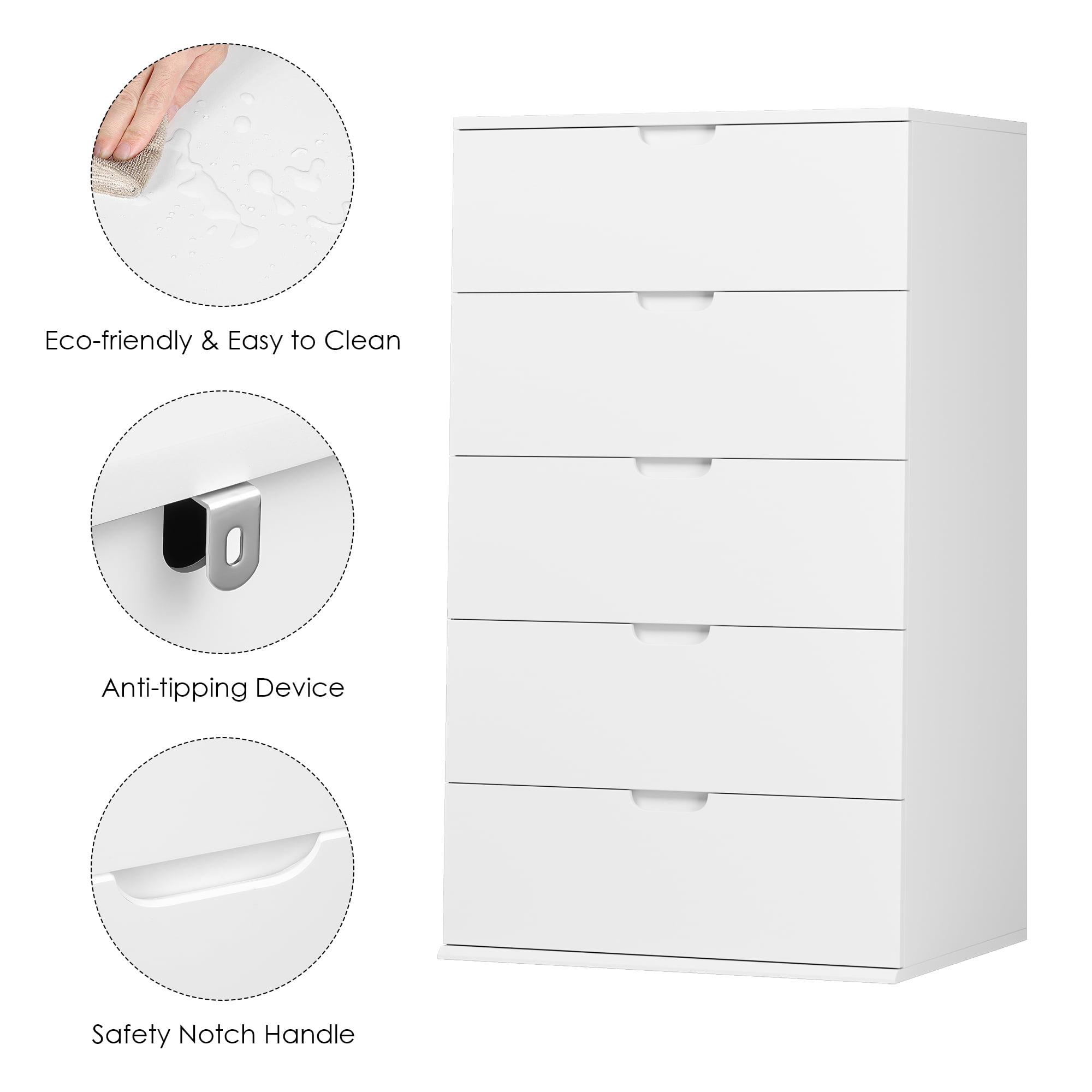 Homfa 5 Drawers Dresser, 23.6″W White Dresser, Modern Chest with Drawer for Bedroom