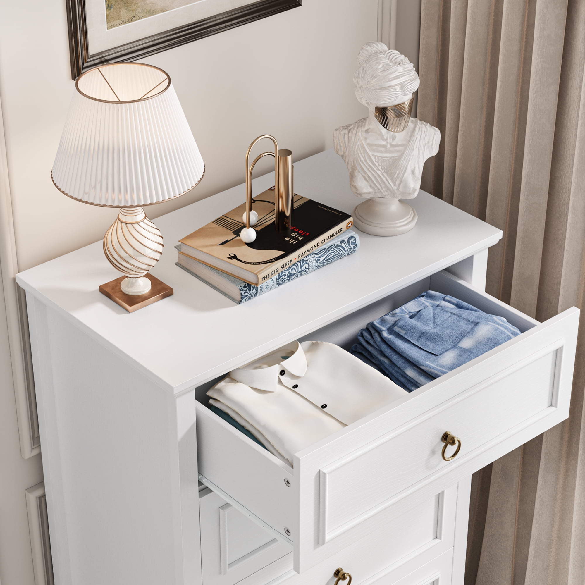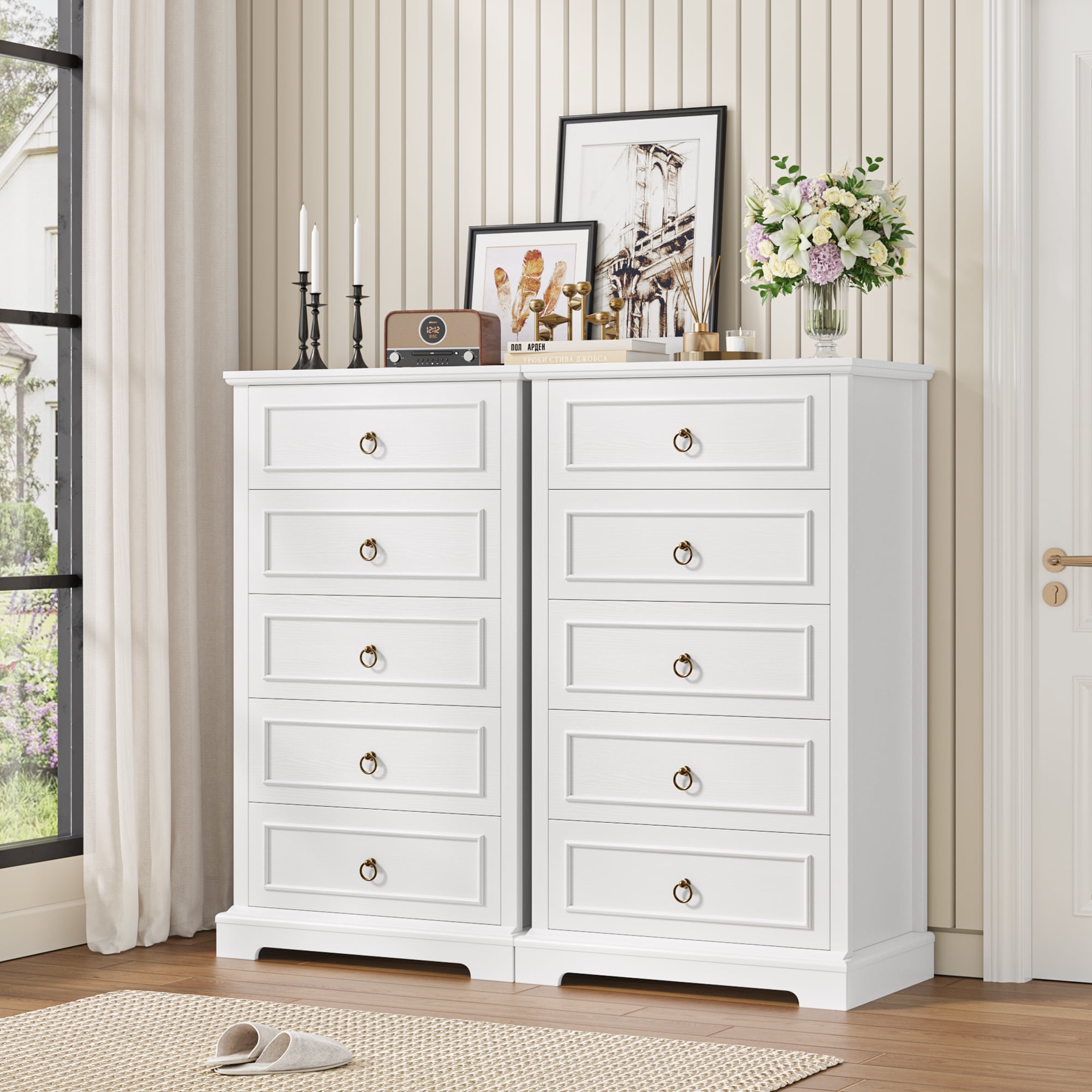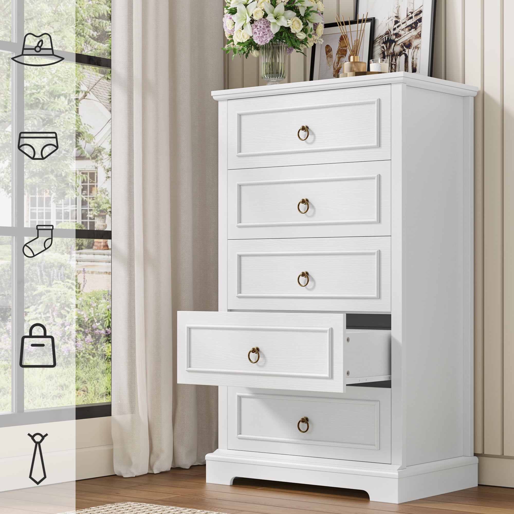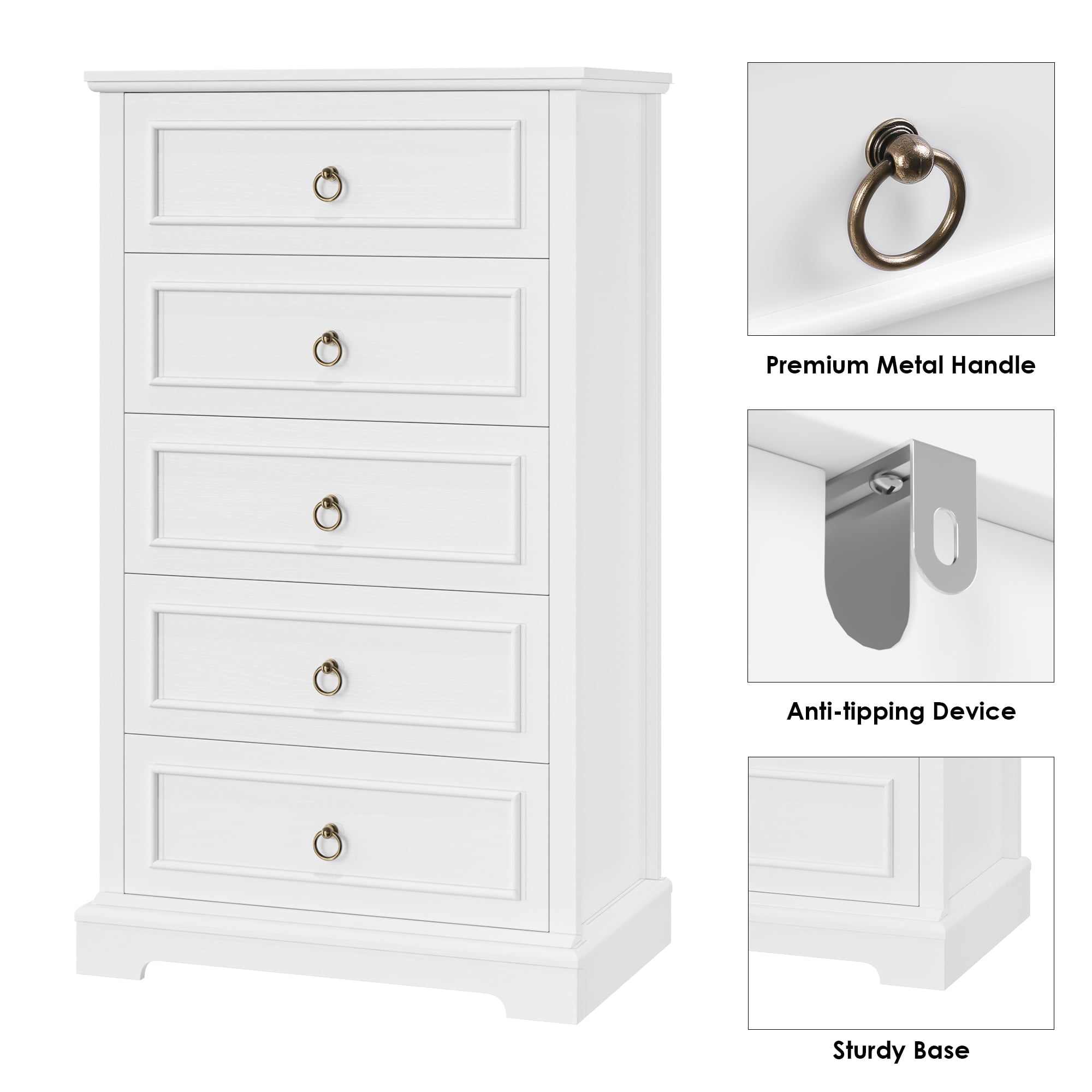 Homfa 5 Drawers Tall Dresser, Chest of Drawers Storage Bedroom Dresser Cabinet for Closet Living Room, White