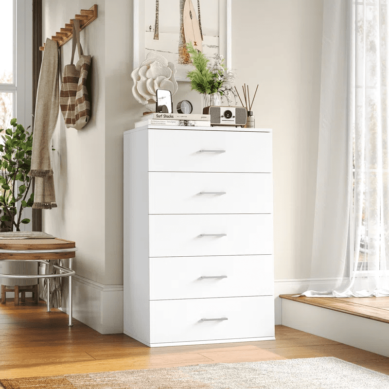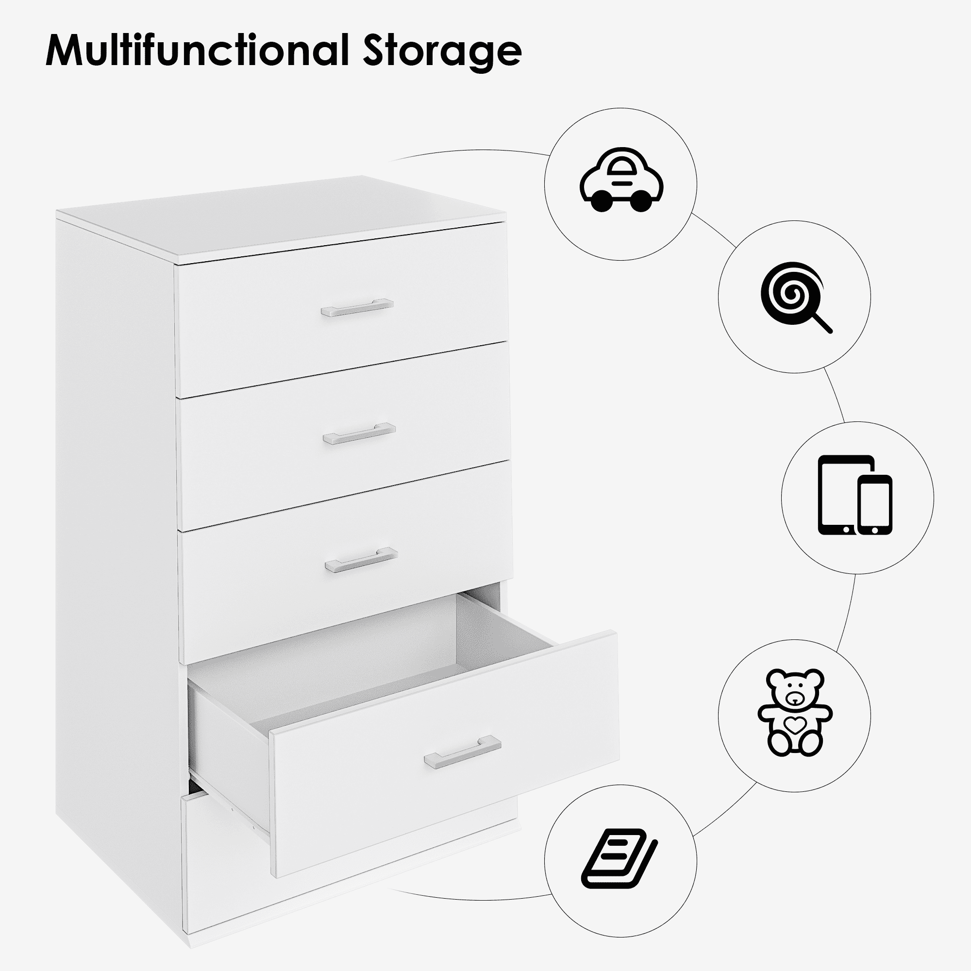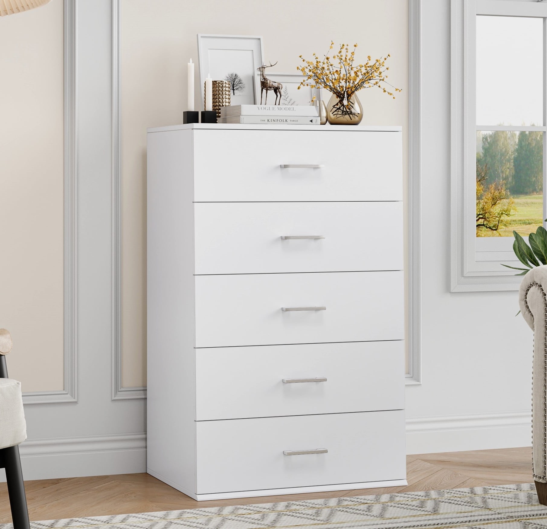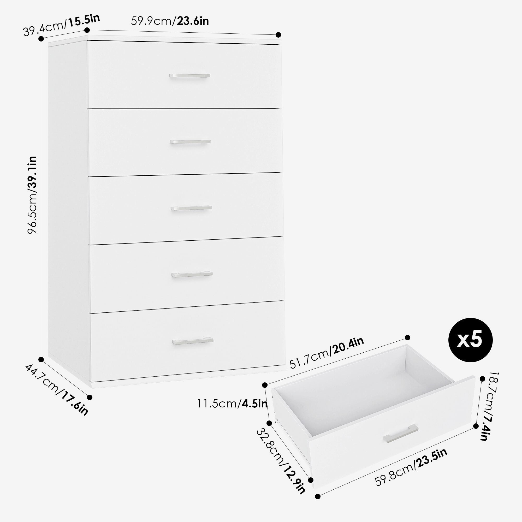 Homfa 5 Drawers White Dresser, Vertical Dresser with Metal Handles for Bedroom Living Room