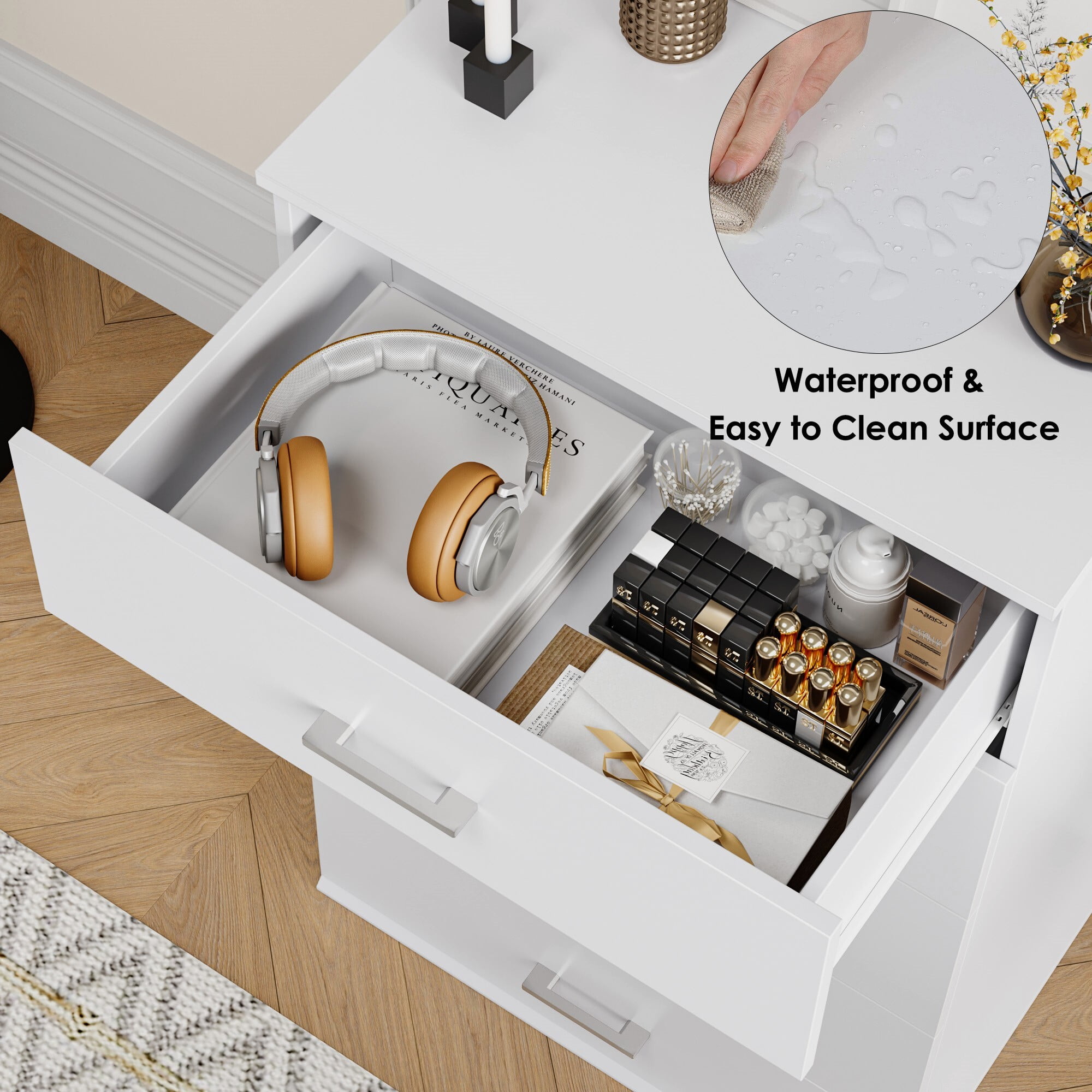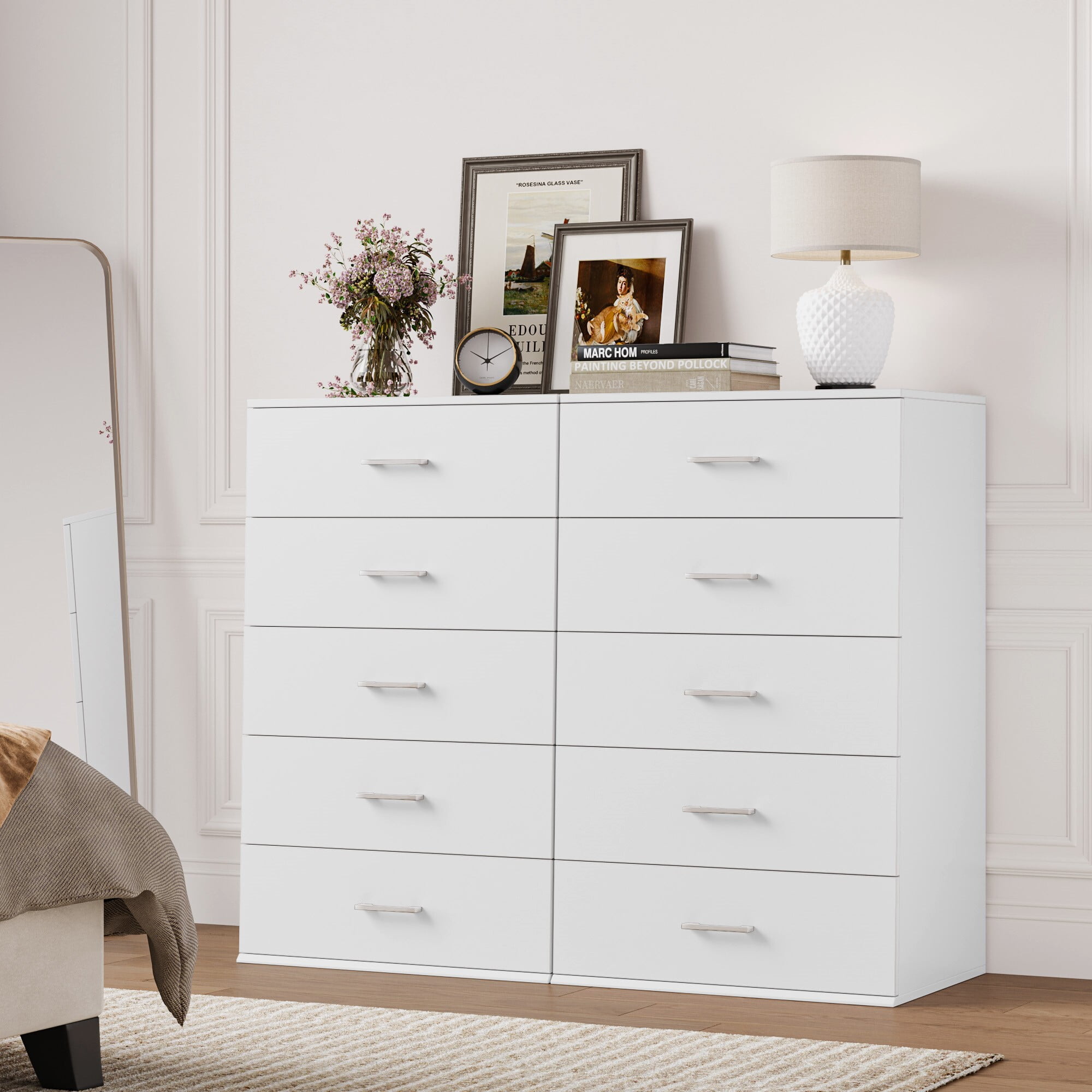 Features: 【5 Large Drawers】5 wide drawers provide plenty of space for sorting and organizing toys, books, documents and other daily necessities. 【Sturdy & Durable】Our storage cabinet is designed with sturdy wooden frame and the back crossbar makes the drawer nightstand stable and durable. The drawer surface is smooth enough and, it is easy to clean. 【Modern Appearance】Clean line design, pure white appearance with brass-colored knobs, this tall dresser is the perfect decoration for your bedroom and living room space. 【Round Ring Pulls】The 5 drawer dresser beautifully round ring pulls make the 5 drawers easy to open, and the pulls can be changed at will. 【Anti-tipping Device】The dresser with drawers comes with an anti-tip device on the back, so you don’t have to worry about the dresser falling and hitting your families anymore! 【4 High Feet】Not only look unique, but also easy to clean the bottom of the cabinet. 【Easy to Assemble】Detailed assembly instructions and labels allow you to have a beautiful wooden decorative cabinet in less than 1 hour. 【24/7 Customer Service】We provide excellent customer service, if you have any questions, please email us and we will reply within 24 hours. Specifications: Material: Manufactured wood;metal Drawer Glide Material: Metal Handle Material: Metal Color: White Overall Size:26.8*15.6*44.1inches Drawer Inner Size: 20.5*13*5.8inches Overall Product Weight: 91.07 lb Number of Drawers: 5 Drawer Glide Mechanism: Roller glides Package Contents: 1 x 5 Drawer Dresser 1 x Accessory 1 x Instruction