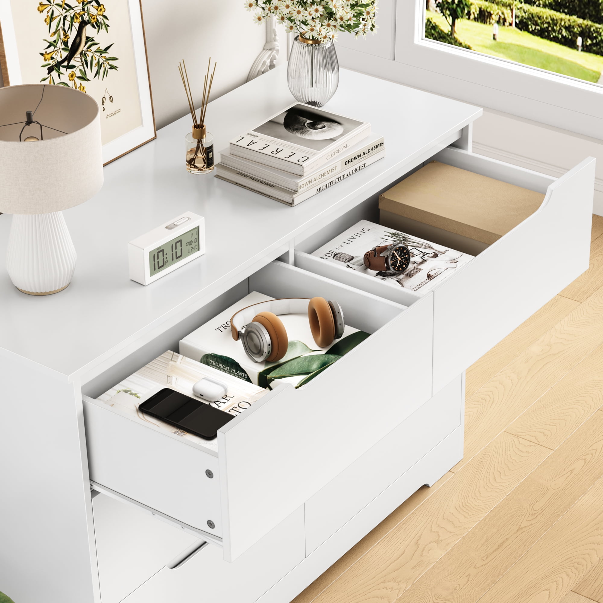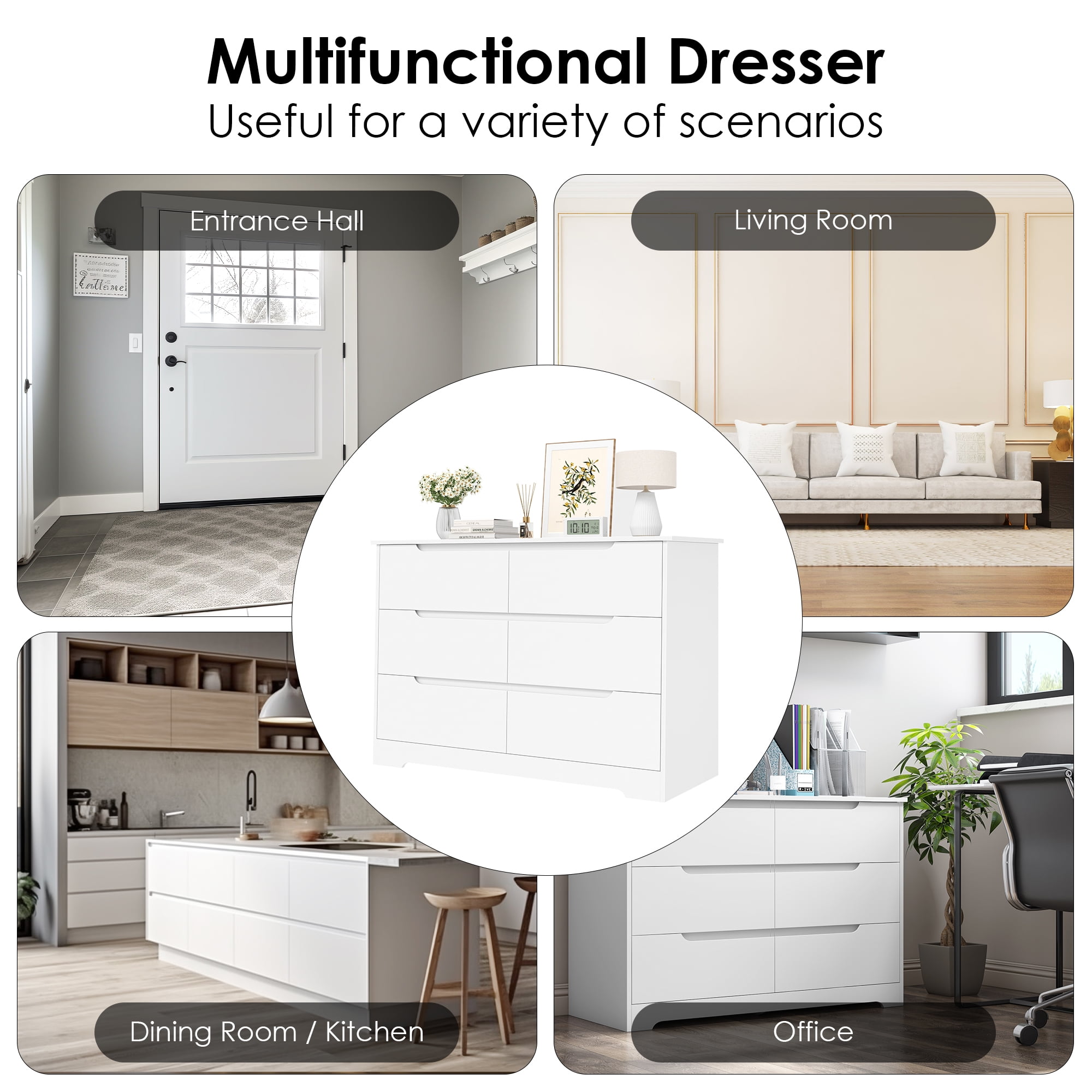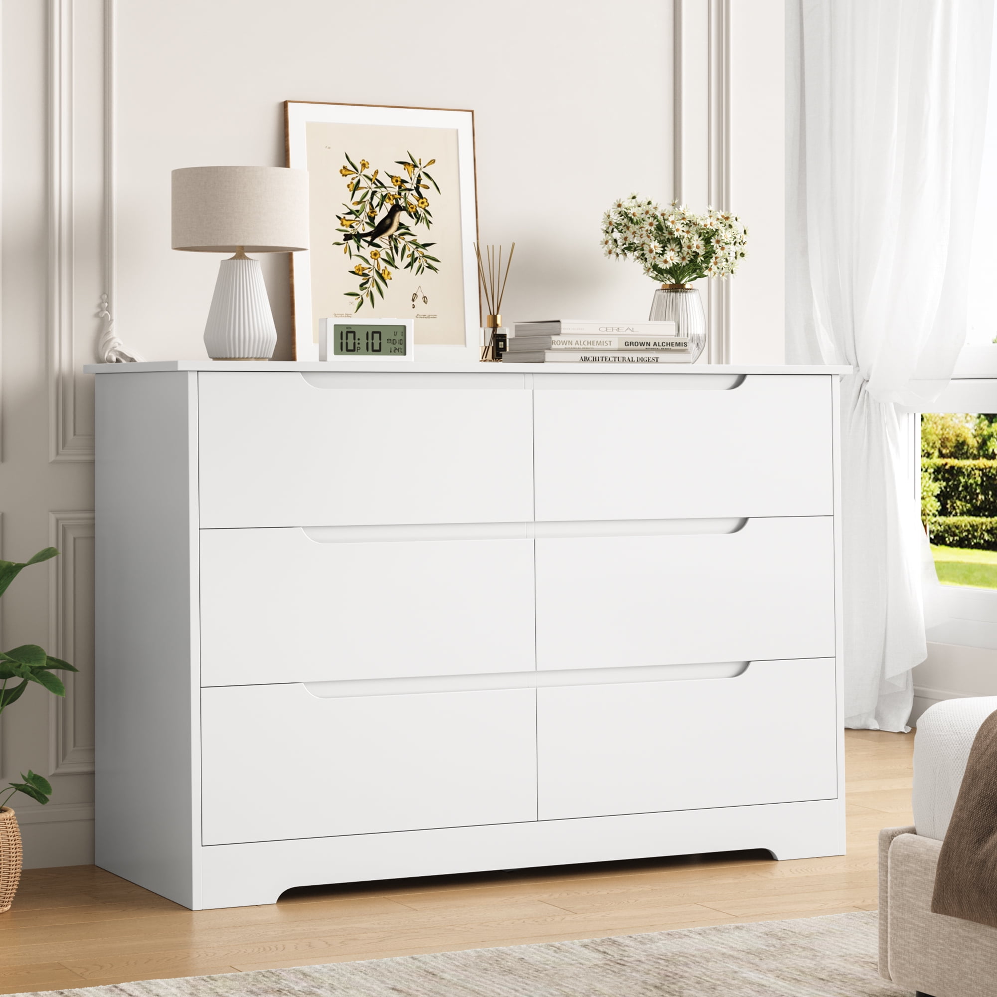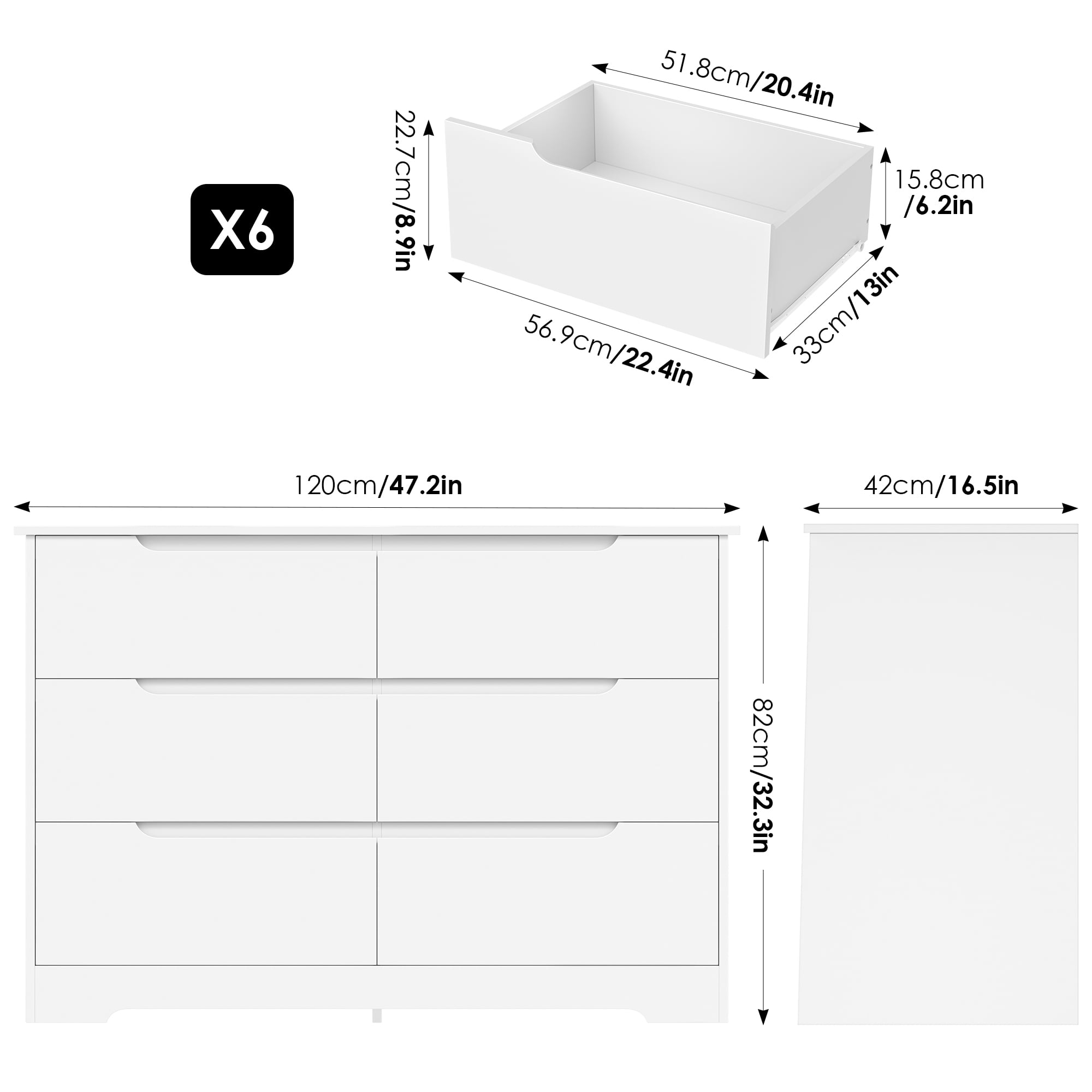 Homfa 6 Drawer White Dresser for Bedroom, Modern Chest of Drawers Wood Storage Cabinet for Living Room Kitchen Office