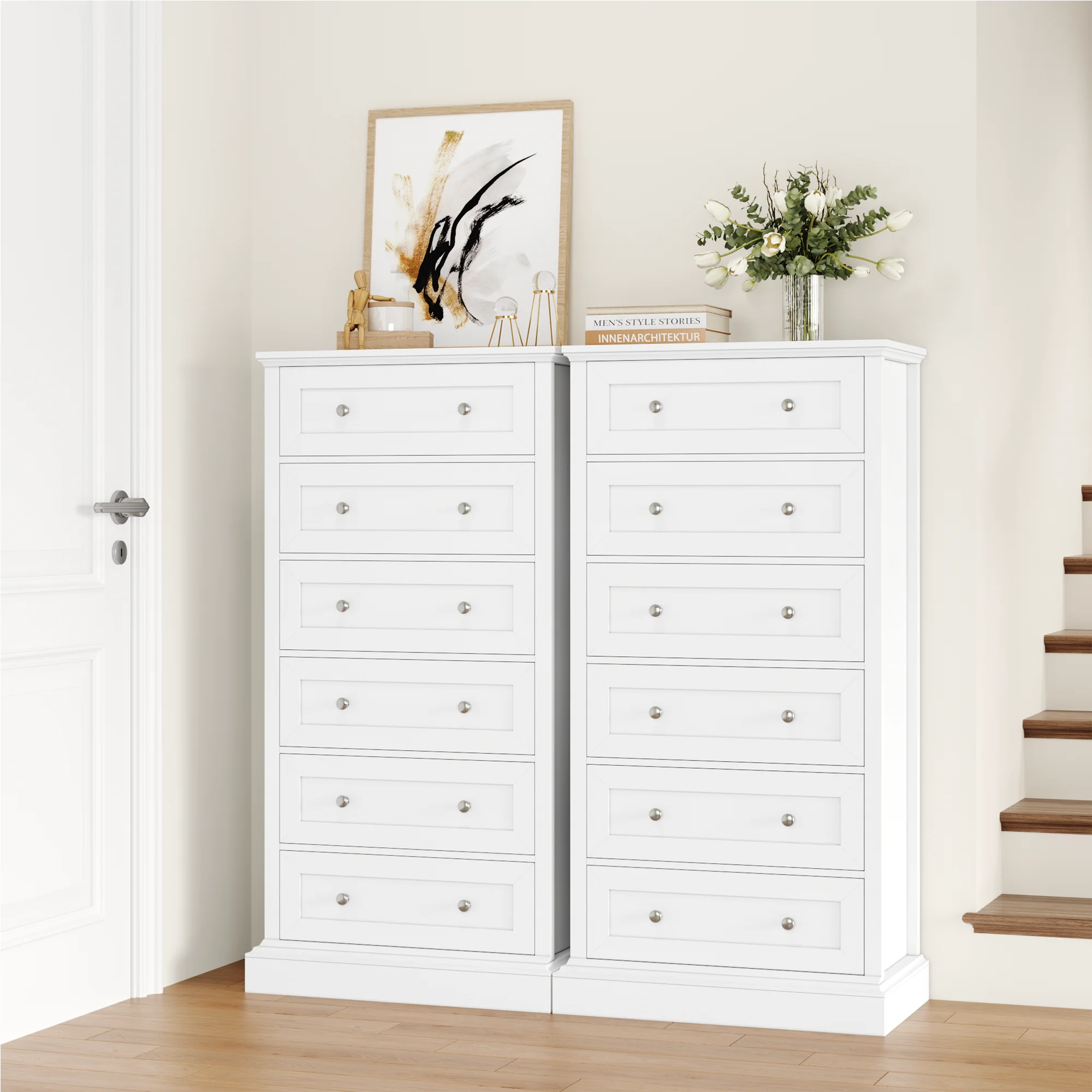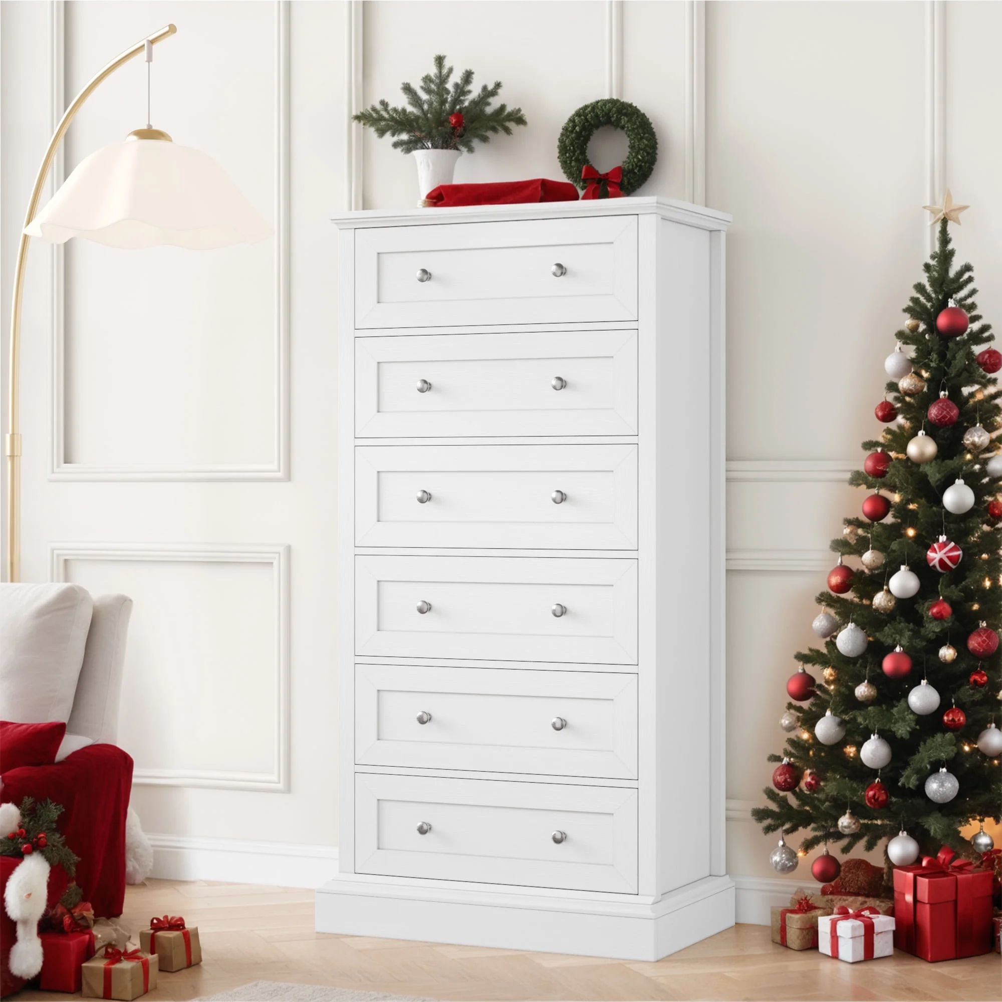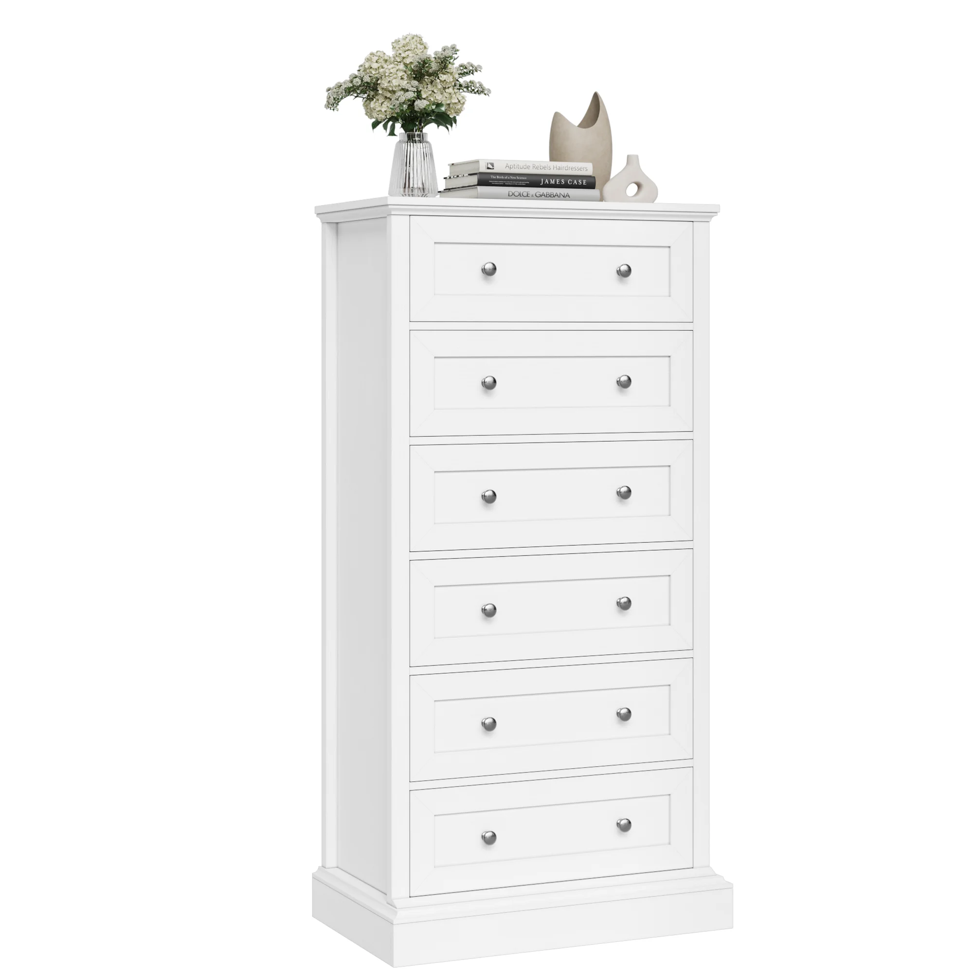 Homfa – Create a comfortable life! This vertical white dresser has a pure white finish and is complemented by matte silver handles for a stylish look. The dresser for bedroom has a 45°diagonal and the surface of the tall dresser has a combination of white wood grain, lines and textures. Matches perfectly with all your furniture. This storage cabinet’s 6 large-capacity drawers can store a large number of daily items and books, and each drawer can be opened up to 4/5, making it easy to open and organize items. Drawer size: 20.6*12.4*5.1 inches. The thick, raised base provides extra support to the chest of drawers. The thickened drawer back and anti-tip design on the back make this drawer dresser not only useful for organizing daily necessities in the bedroom, but also for books and decorations in the living room, as well as documents, magazines and other work items in the office. Placing some decorations on top of the tall white dresser will become a beautiful addition to your home.