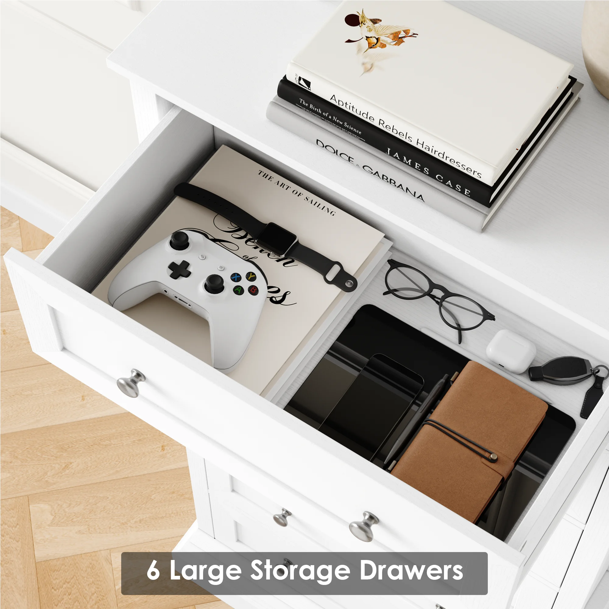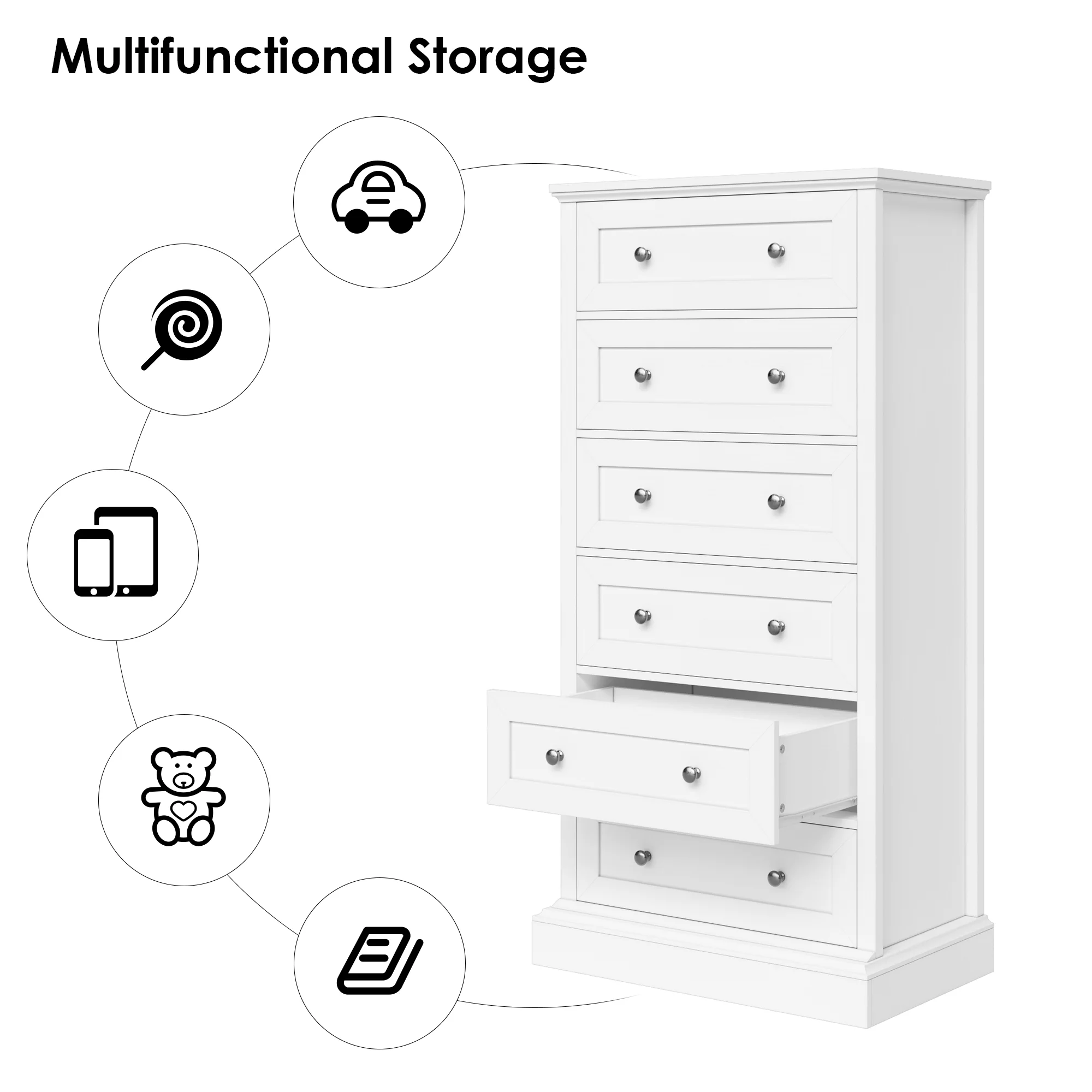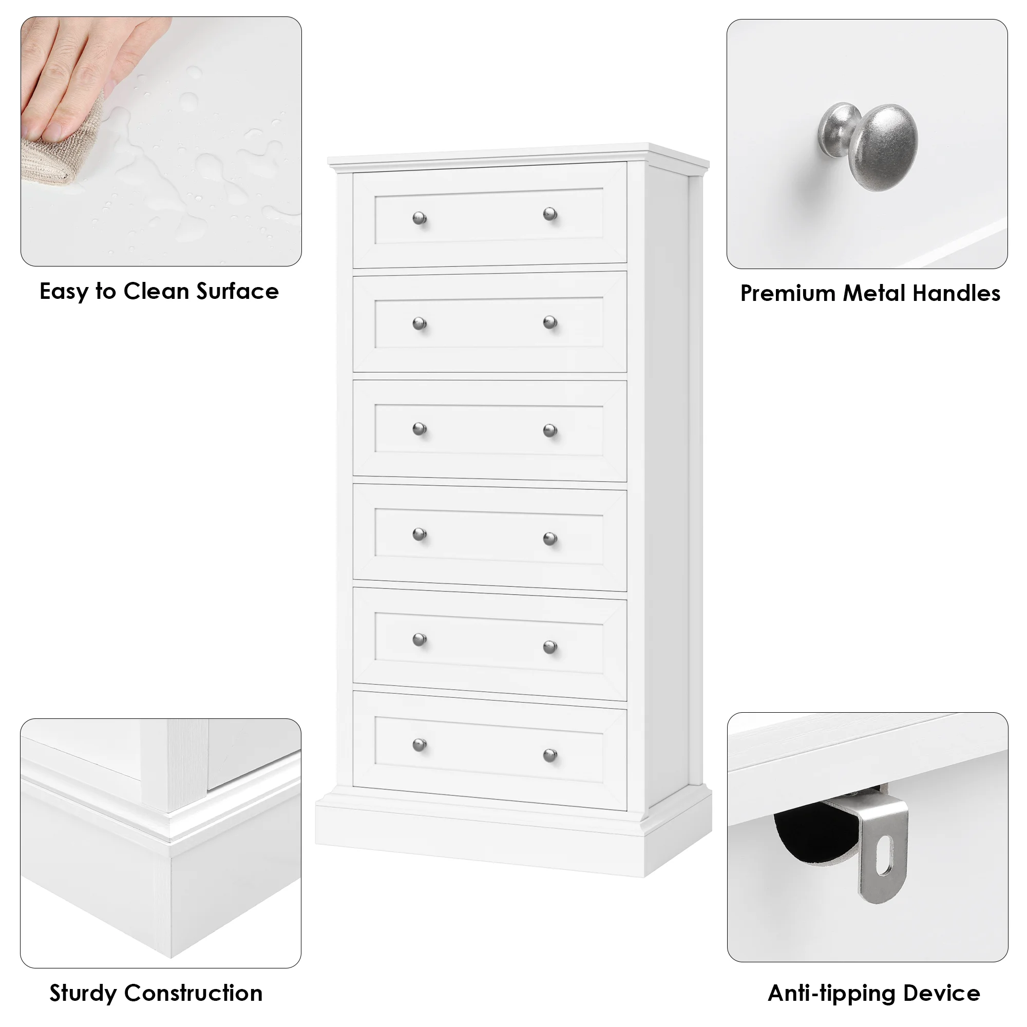 Homfa 6 Drawer White Dresser, Tall Chest of Drawers Storage Cabinet for Bedroom Office Living Room