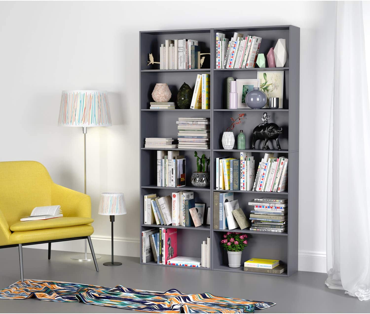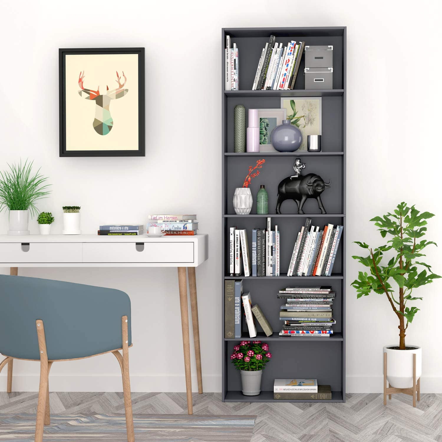 Homfa – Create a comfortable life! The elegant design makes the free standing gray bookshelf ideal for almost any space. You can place all you want to show. Such as your favorite books, decoration, even some exquisite antiques, etc. This standard 6 tiers bookshelf provides storage space for books, photographs, or decorative boxes. The maximum degree of rational use of space achieves the effect of stratified storage. We Adopt the quality E1 grade environmental protection building materials, solidly constructed. Explore more Homfa items