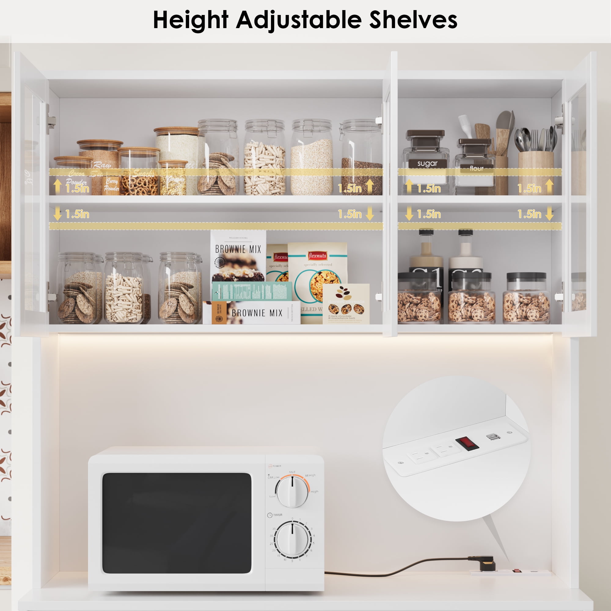 Homfa 70.9” Kitchen Pantry Cabinet with Charging Station and LED Light, 3 Drawers Buffet Storage Cabinet with Glass Doors and Adjustable Shelves, White